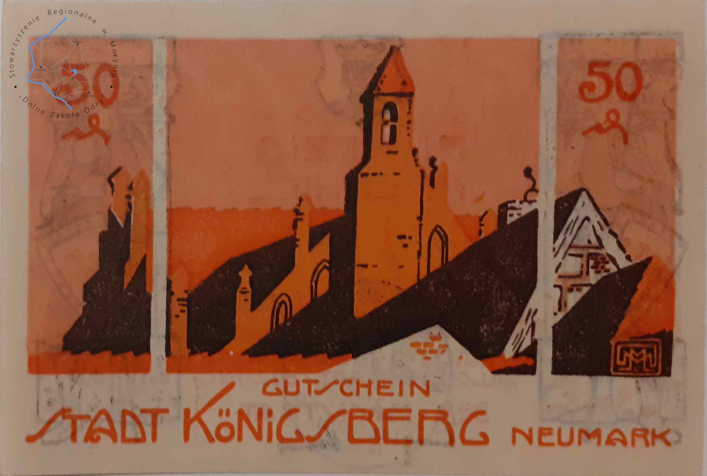 Banknot zastępczy, 50 fenigów z pieczątką Urzędu Miasta Chojna 15. 12. 1921 r.