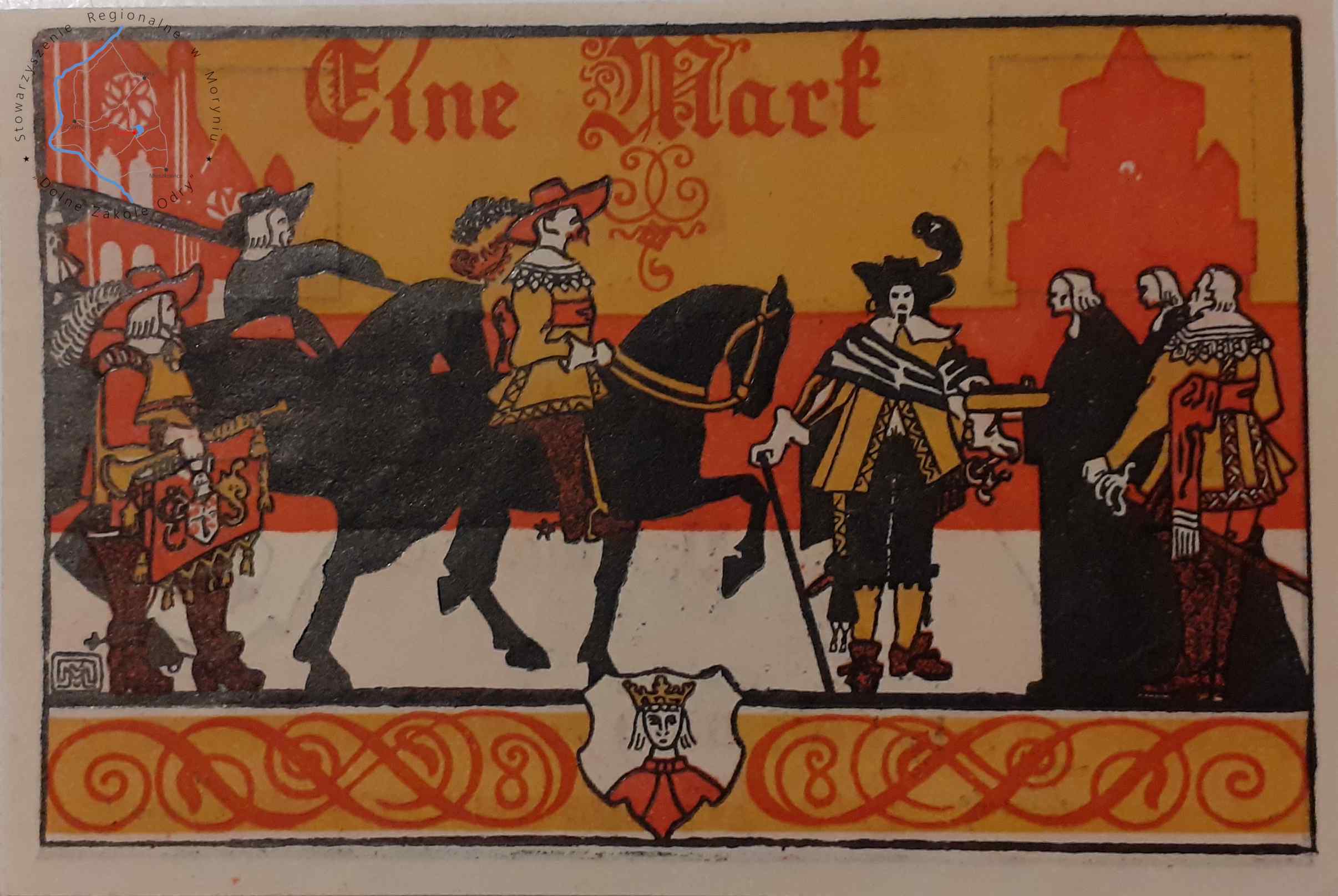 Banknot zastępczy, 1 marka z pieczątką Urzędu Miasta Chojna 15. 12. 1921 r.