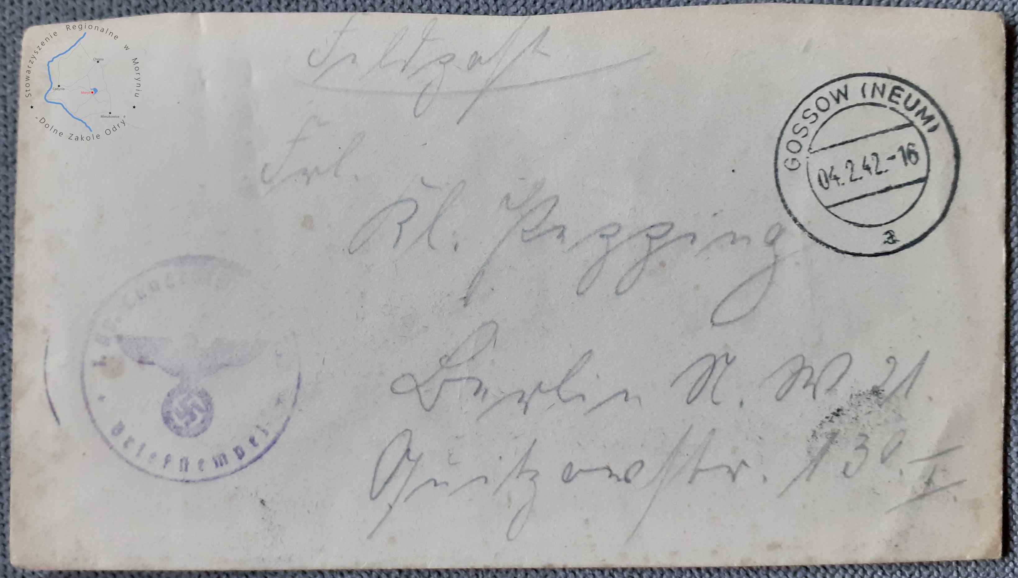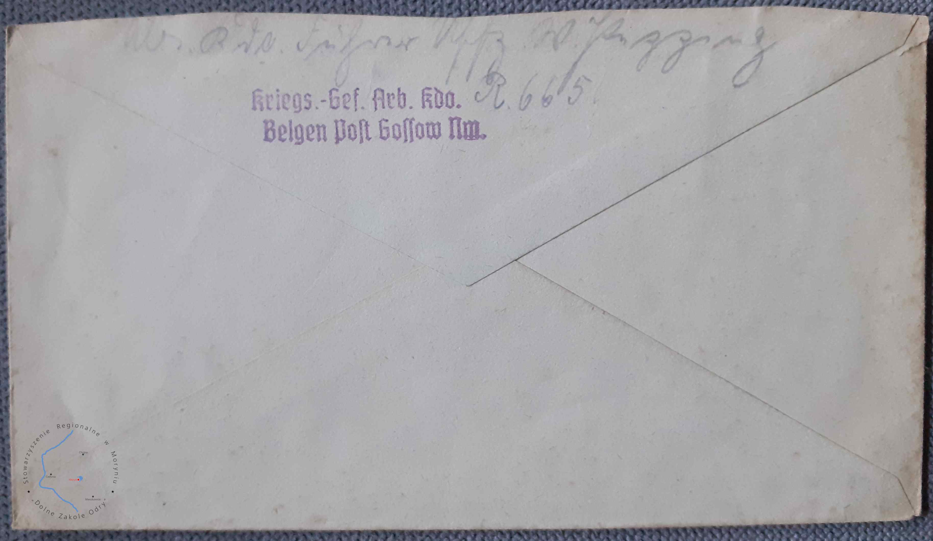 Pieczątka Obozu Jenieckiego - Komando Pracy w Białęgach, na kopercie wysłanej pocztą polową 04. 02. 1942 roku w Goszkowie.