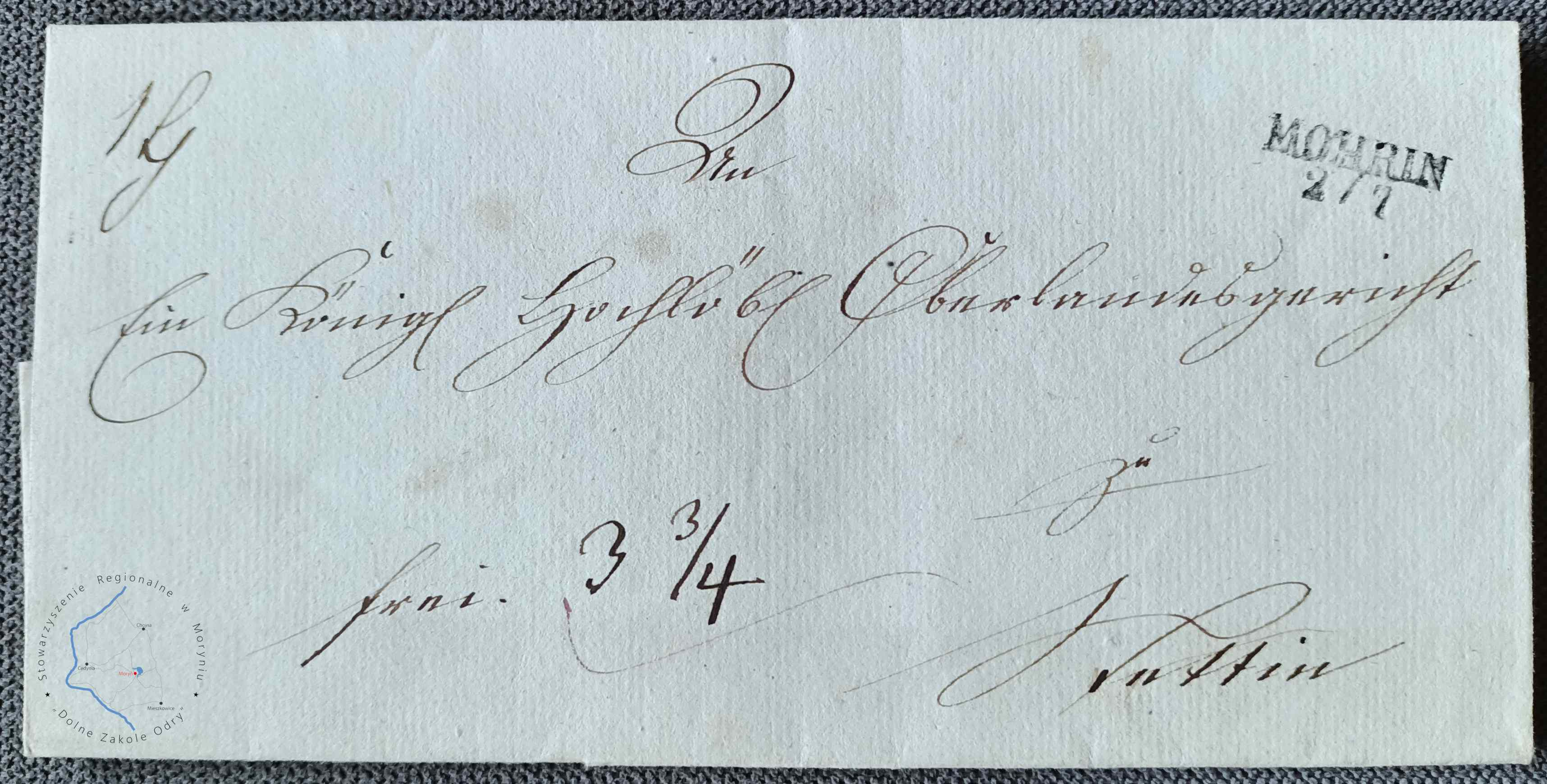 List nadany z Morynia do Szczecina. Skasowany stemplem nadawczym poczty w Moryniu typ IX wg KSZPZP. Stempel użyty 2 lipca. Stempel stosowany w okresie od 1847-1877.