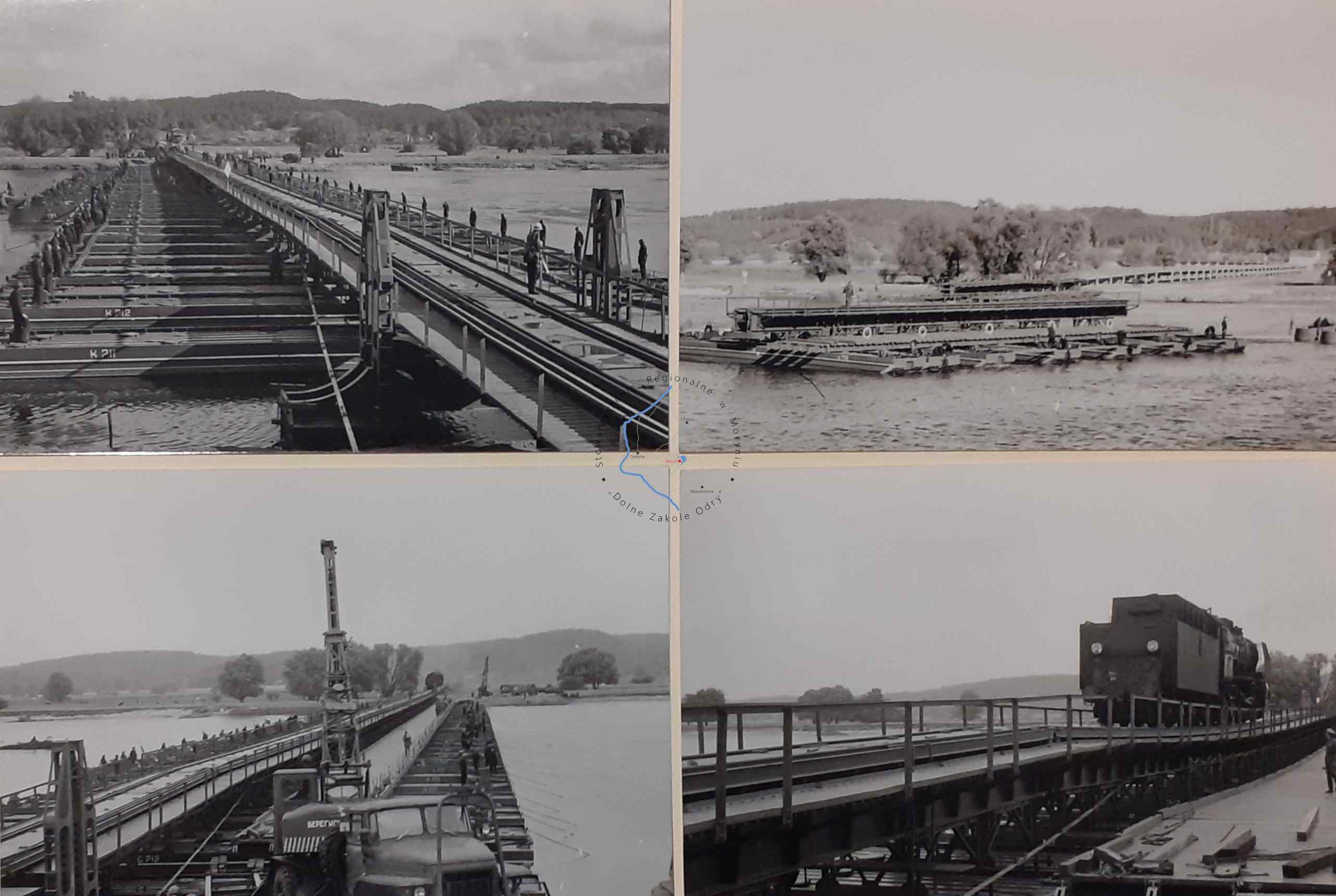 31 zdjęć z 1979 roku, na zdjęciach budowa mostów pontonowych, drogowego i kolejowego w okolicy Siekierek w ramach akcji wojskowej BARIERA - 79.