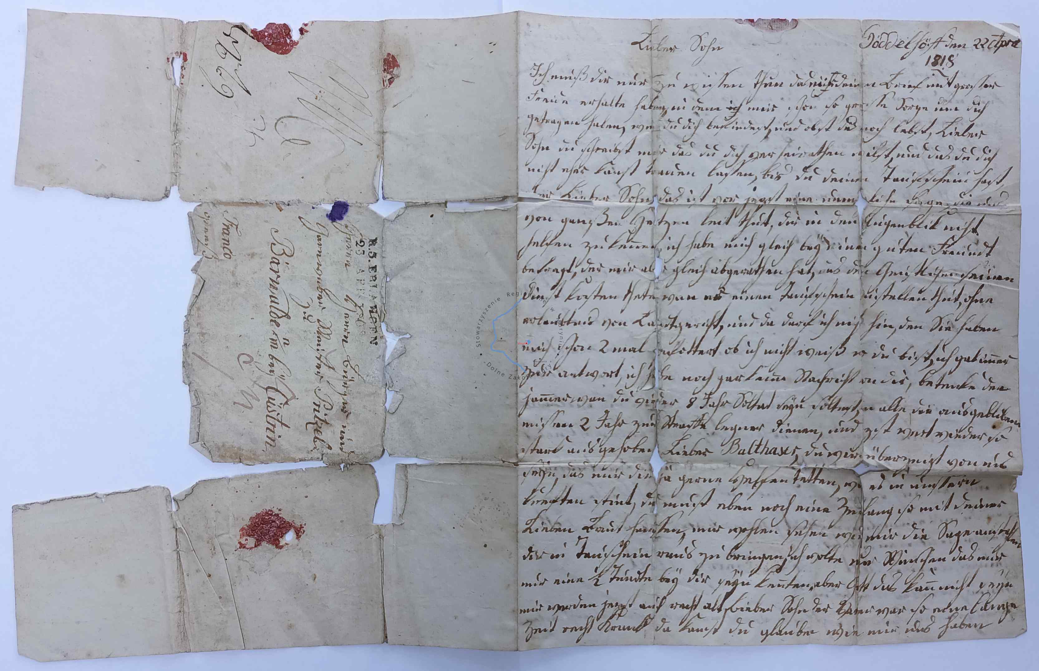 List wysłany do Mieszkowic w 1818 roku.