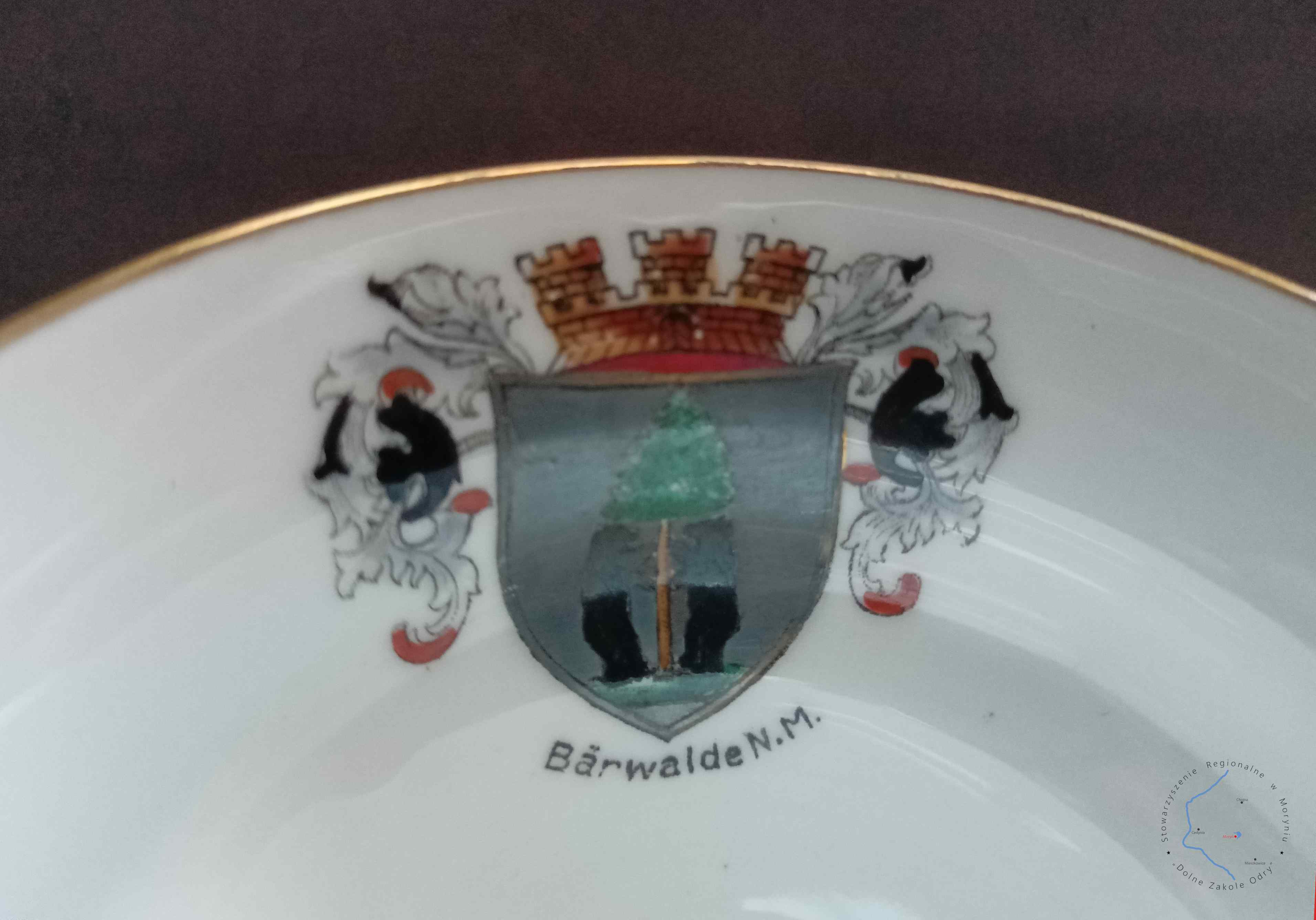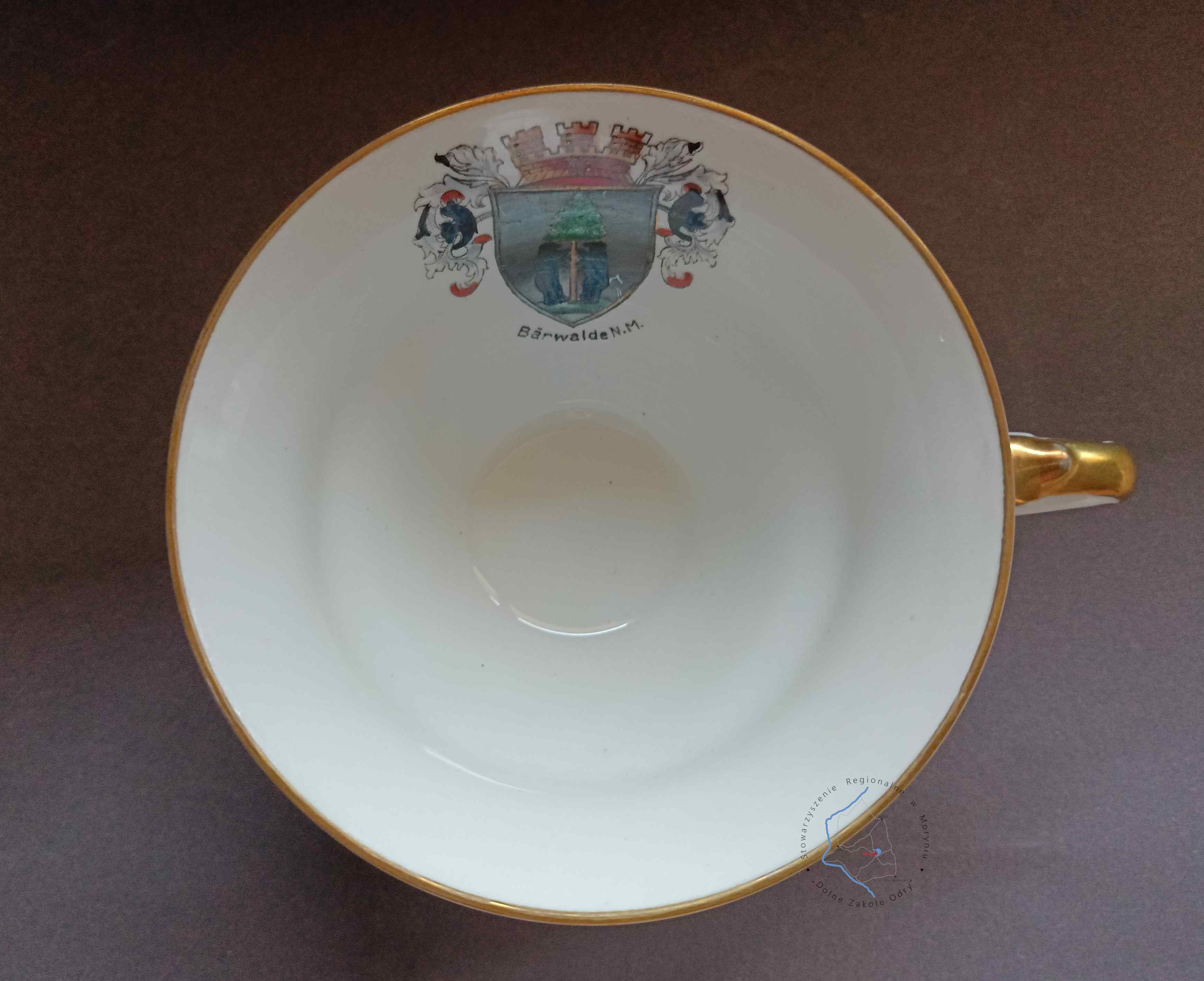 Porcelanowa filiżanka kolekcjonerska z herbem Mieszkowic (przed 1945)
