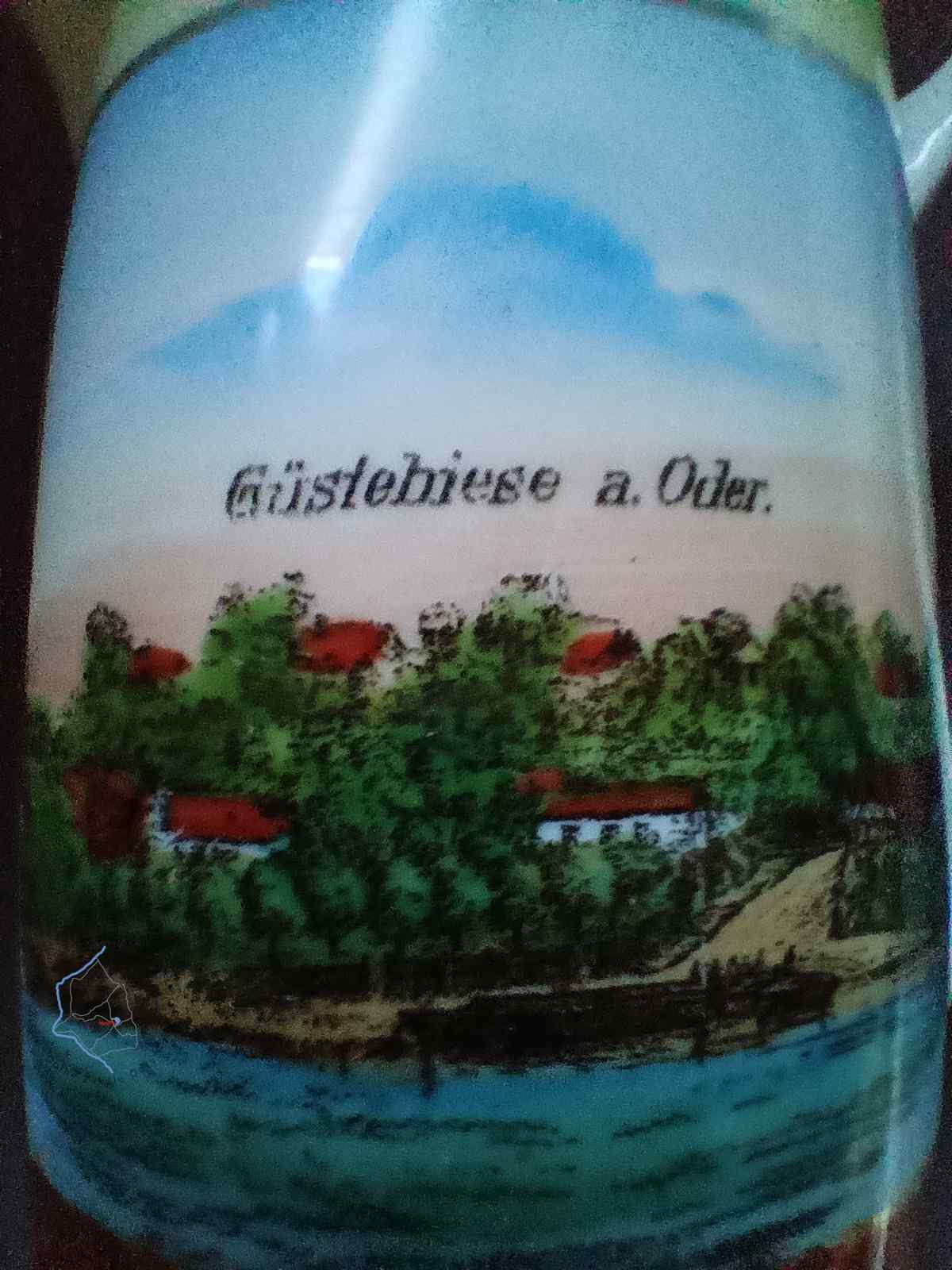 Porcelanowy dzbanuszek kolekcjonerski z widokiem na Gozdowice (przed 1945)