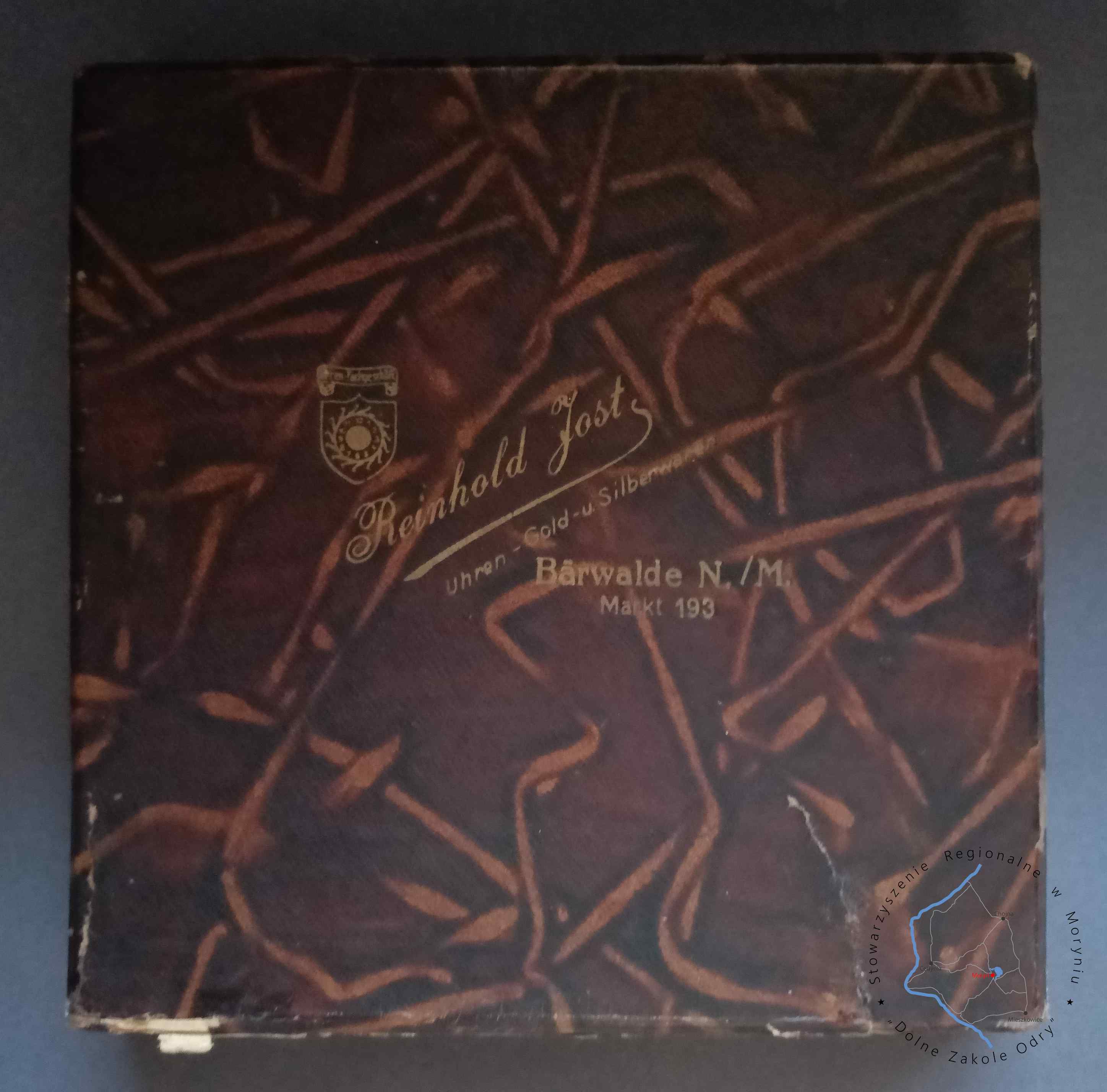 Łyżeczki w etui z reklamą jubilera Reinholda Josta, który przed 1945 rokiem prowadził swoją działalność w Mieszkowicach przy rynku 193.