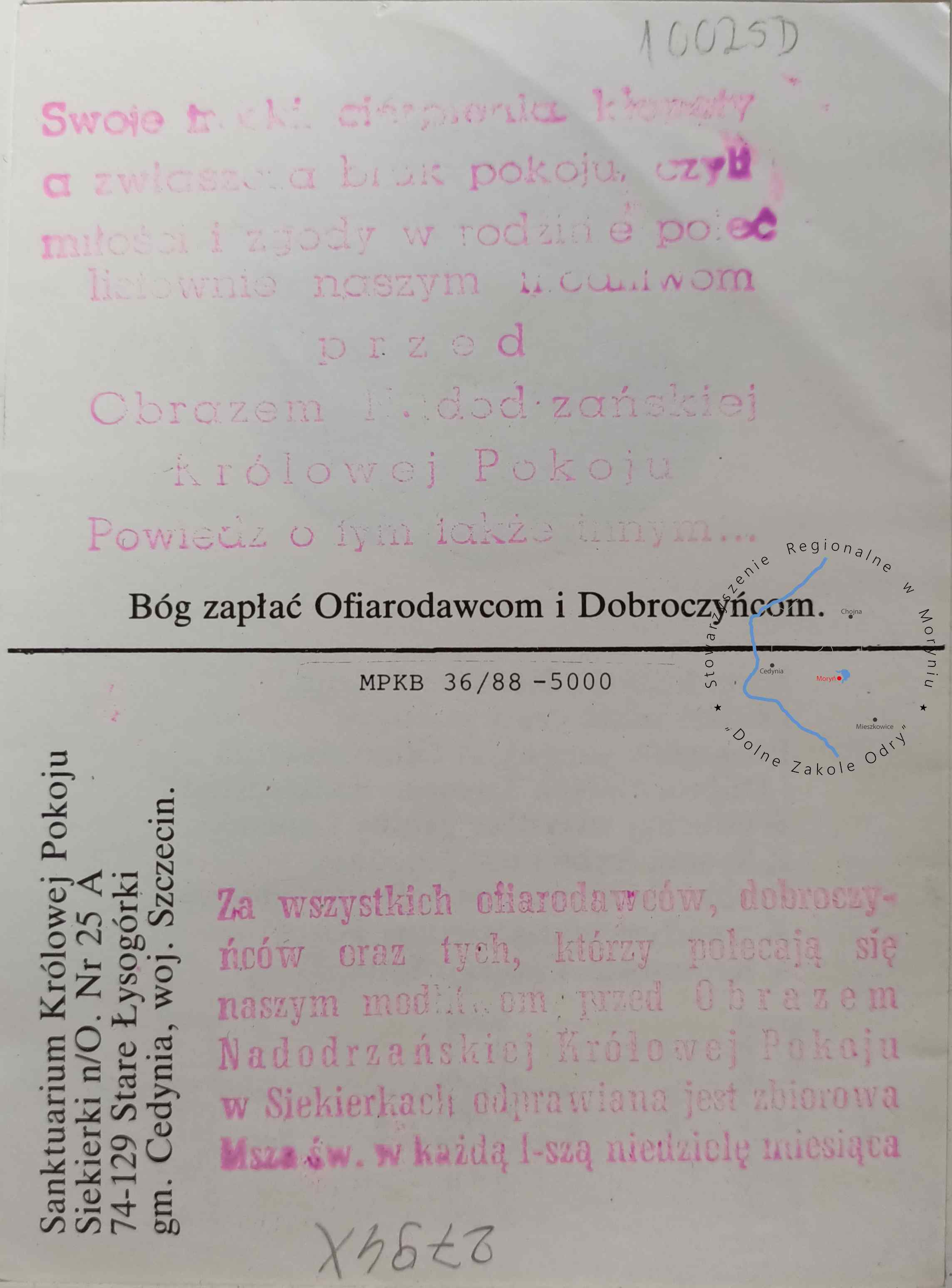 Obrazek, Nadodrzańskiej Królowej Pokoju w Siekierkach