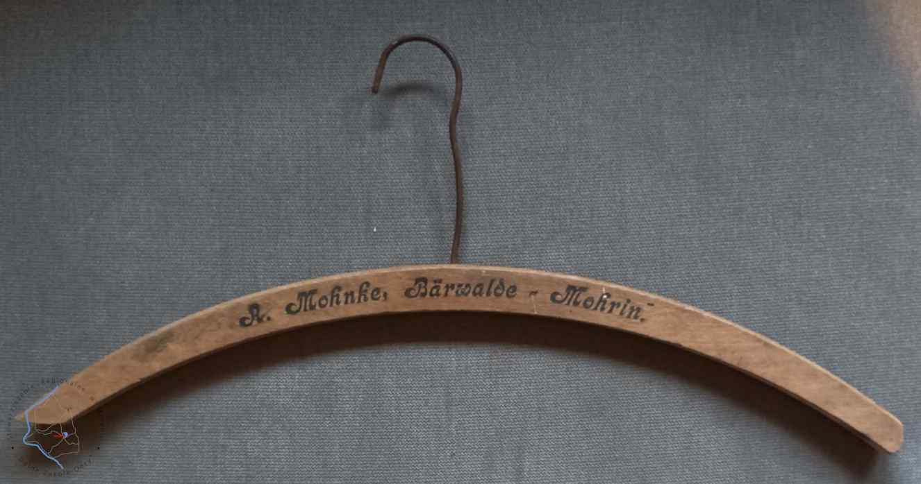 Wieszak z reklamą firmy konfekcyjnej A. Mohnke, Mieszkowice Moryń