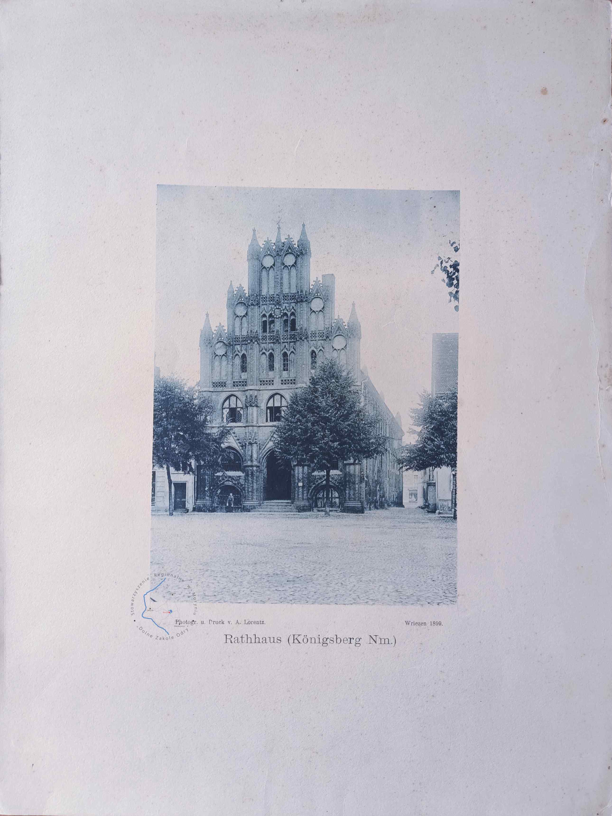 Druk fotograficzny ( Ratusz w Chojnie ) Fotograf i drukarz : A. Lorentz ( Wriezen )Rok : 1899 Papier : 41,5 cm x 31,5 cmobraz : 21,5 cm x 15...