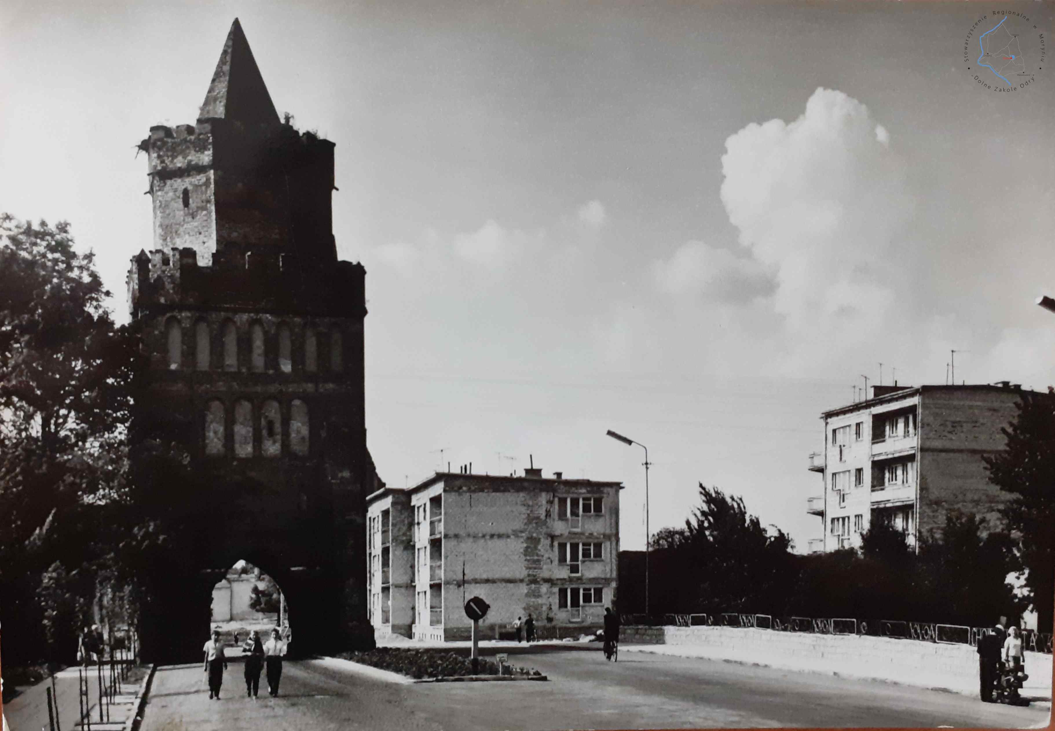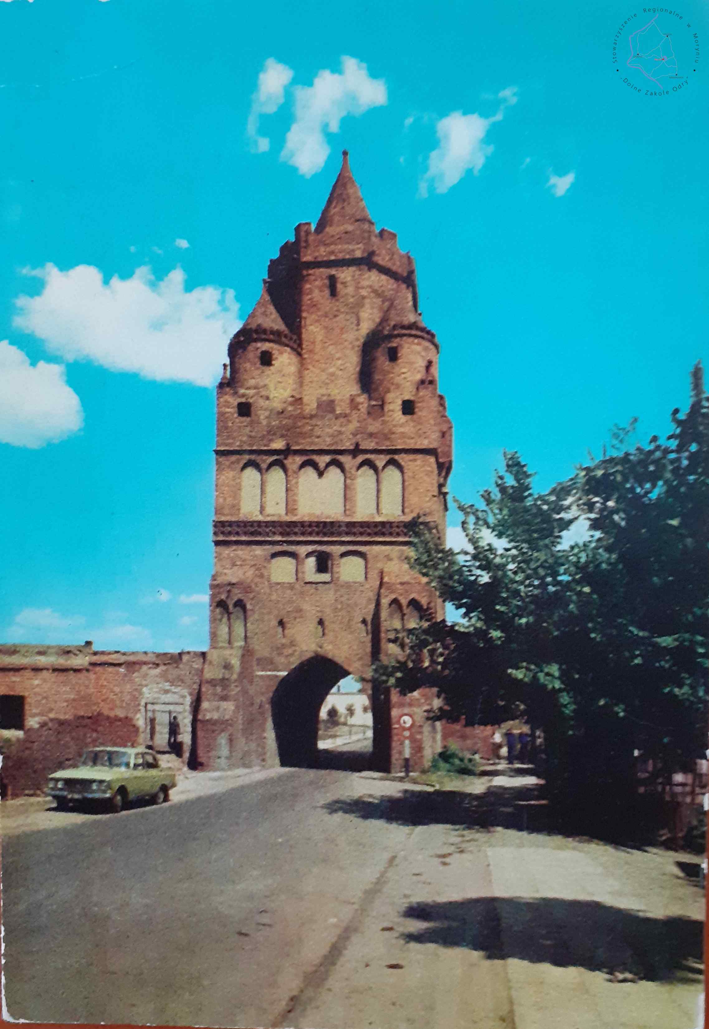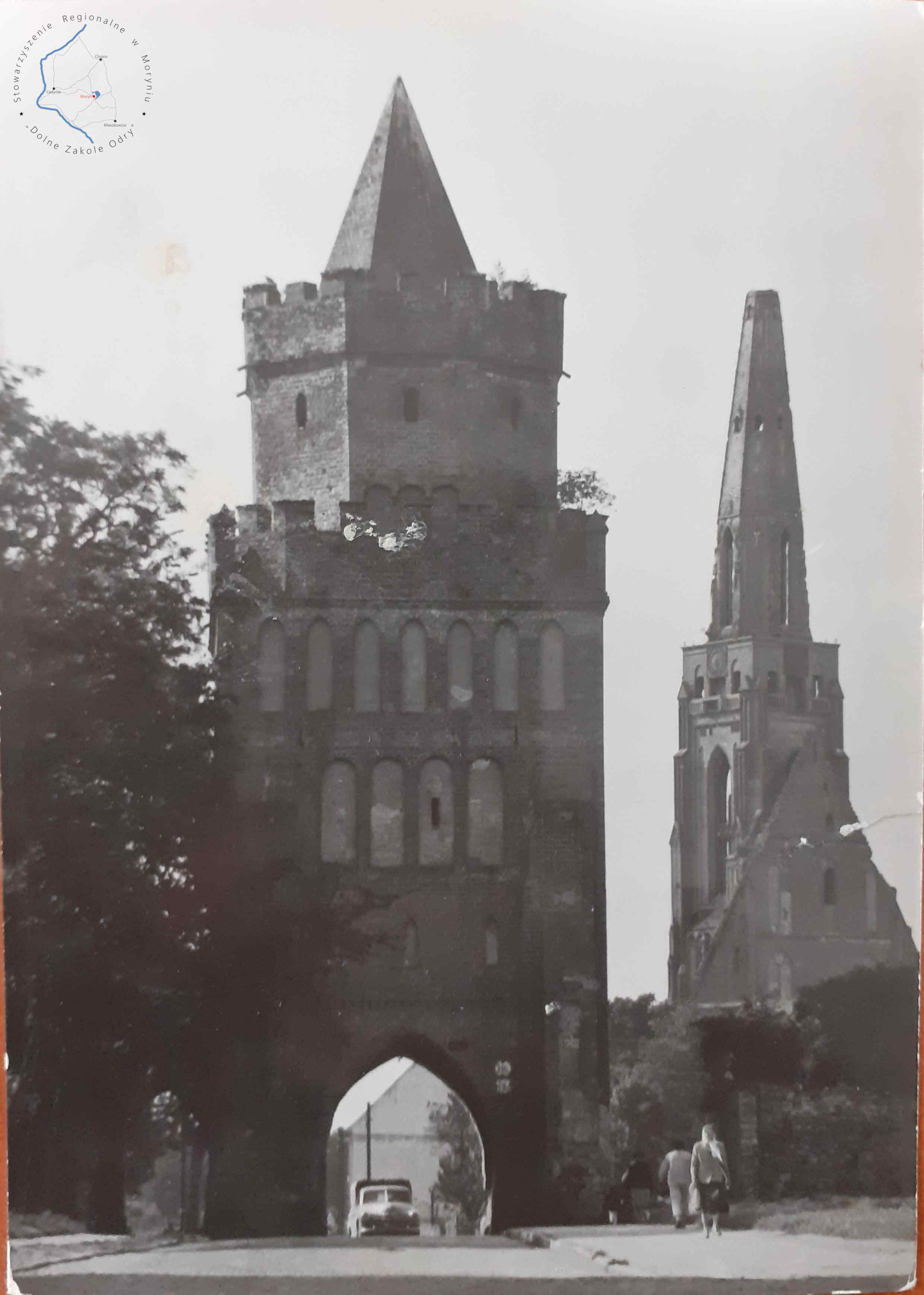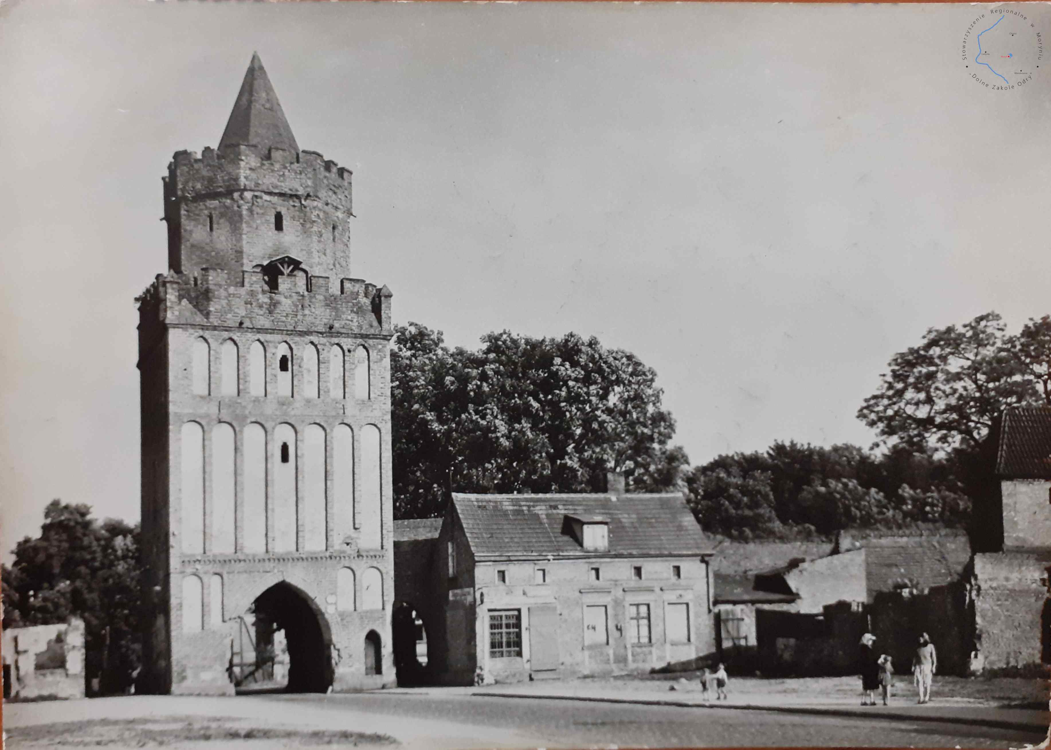 Pocztówka fotograficznaBIURO WYDWNICZE “RUCH”Fotografie L. SzymańskiPocztówka bez obieguCHOJNA gotycka Brama Barnkowska (XIV / XV w.)...