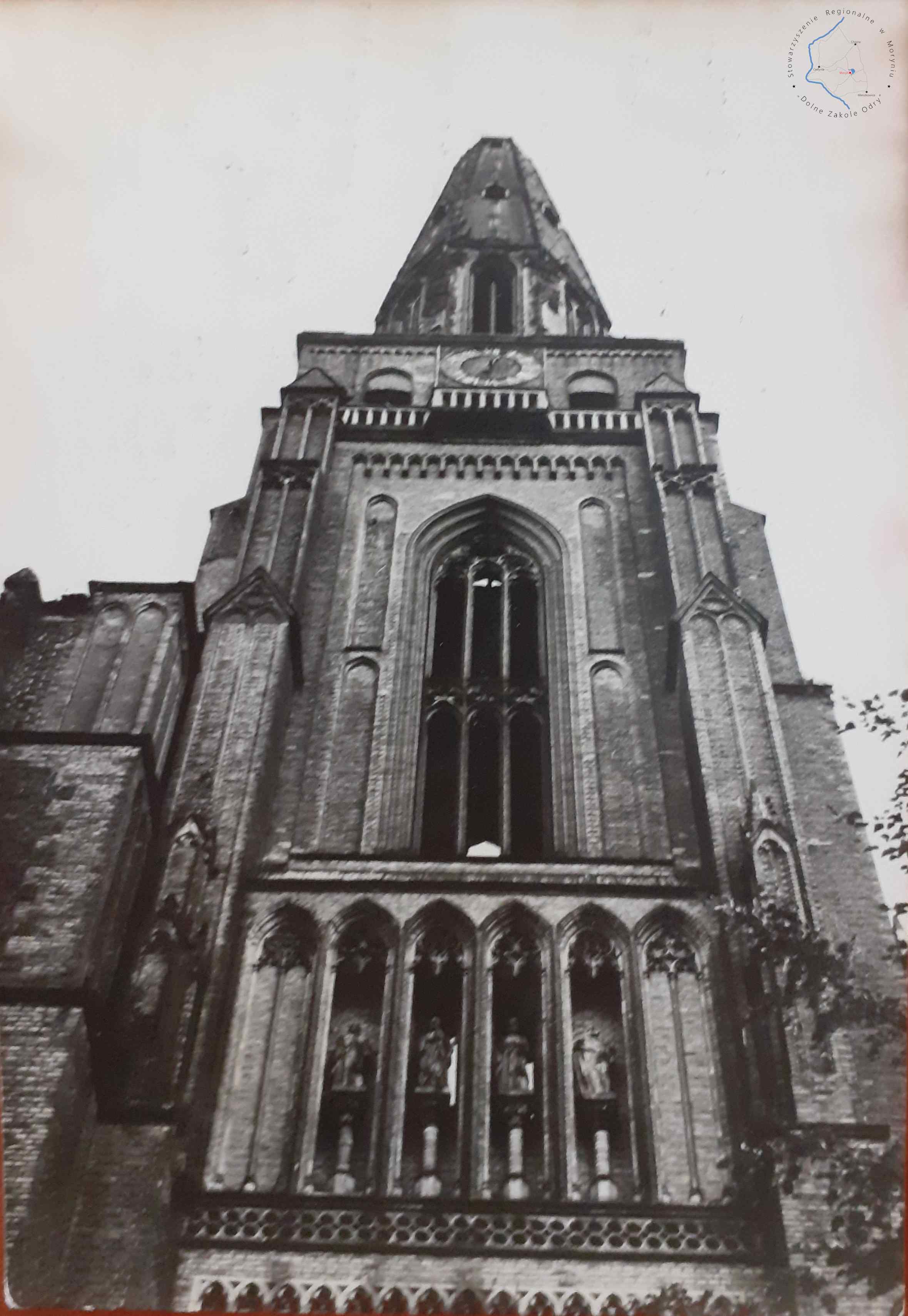 Pocztówka fotograficznaBIURO WYDWNICZE “RUCH”Fotografie L. SzymańskiPocztówka bez obieguCHOJNA gotycki kościół Mariacki, dzieło wybitnego architekta H...