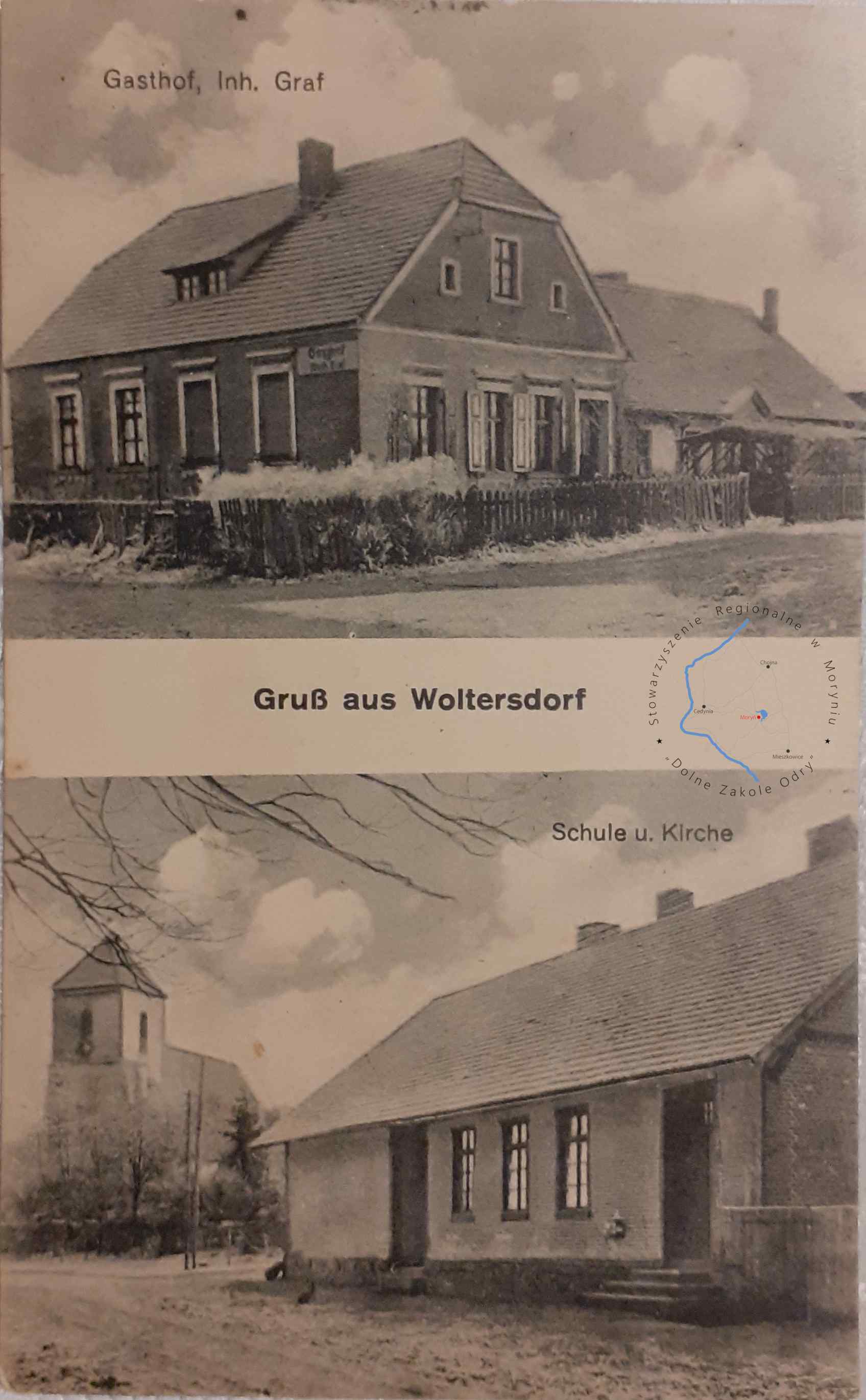 Pocztówka z obiegu, poczta Godków 29. 7. 1928Wydawca: W Quardon, Photogr. Anstalt , Copenick MIROWO Dom gościnny Graf / S...