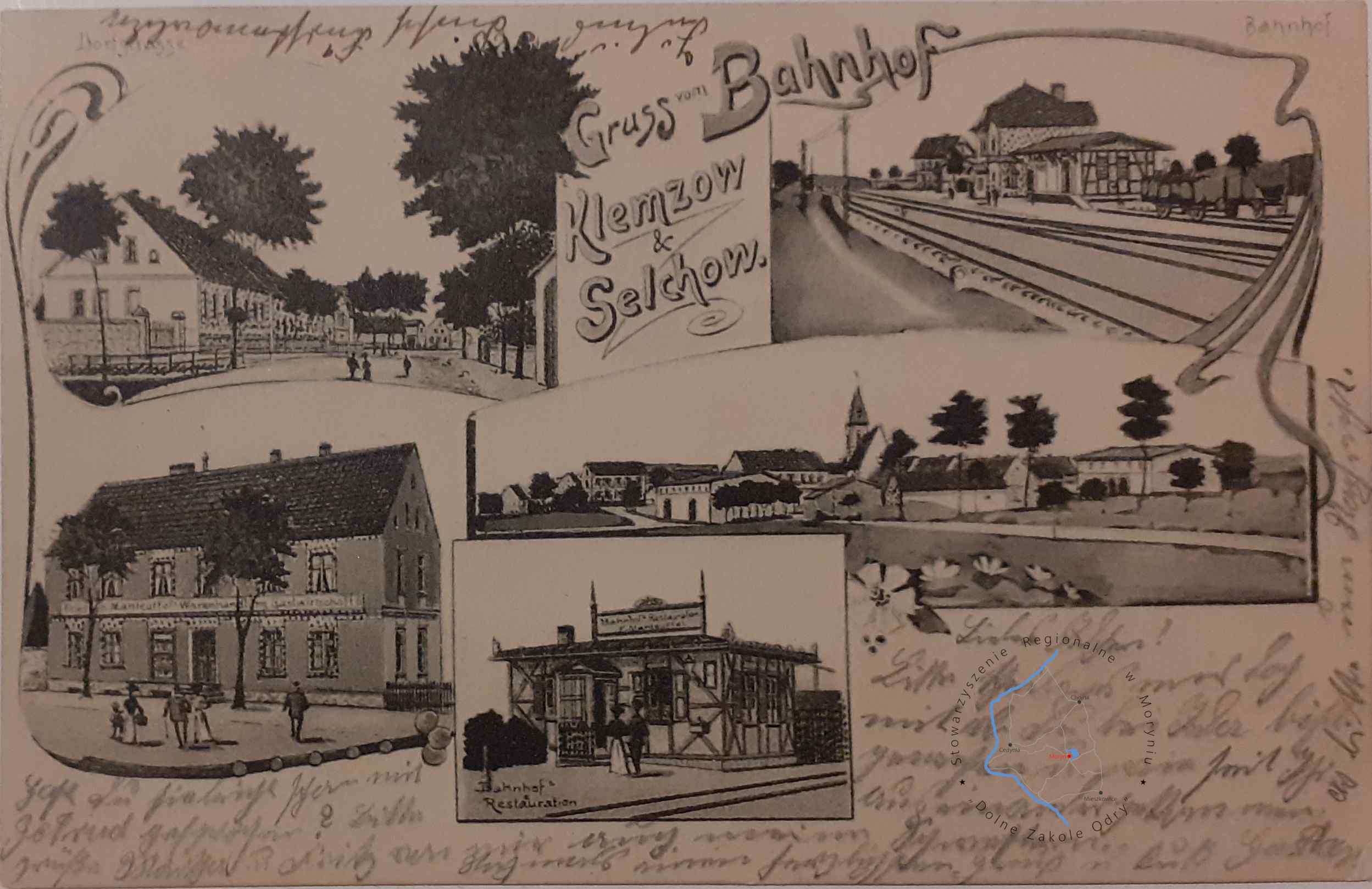 Pocztówka z obiegu, poczta ambulansowa (kolejowa) Berlin - Godków Wydawca: E. Rammin Photograph Zehden ( Cedynia )ŻELICHÓW / KLĘPIC...