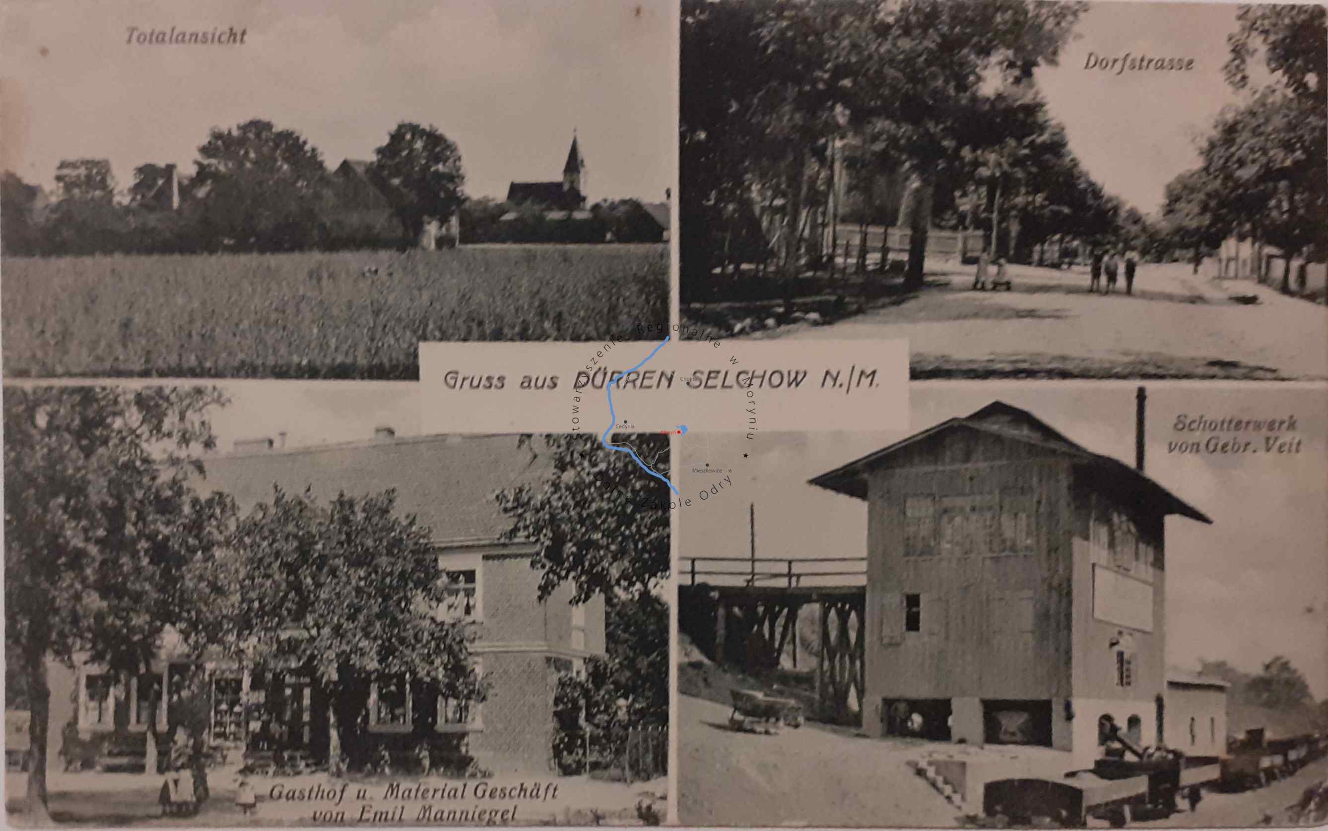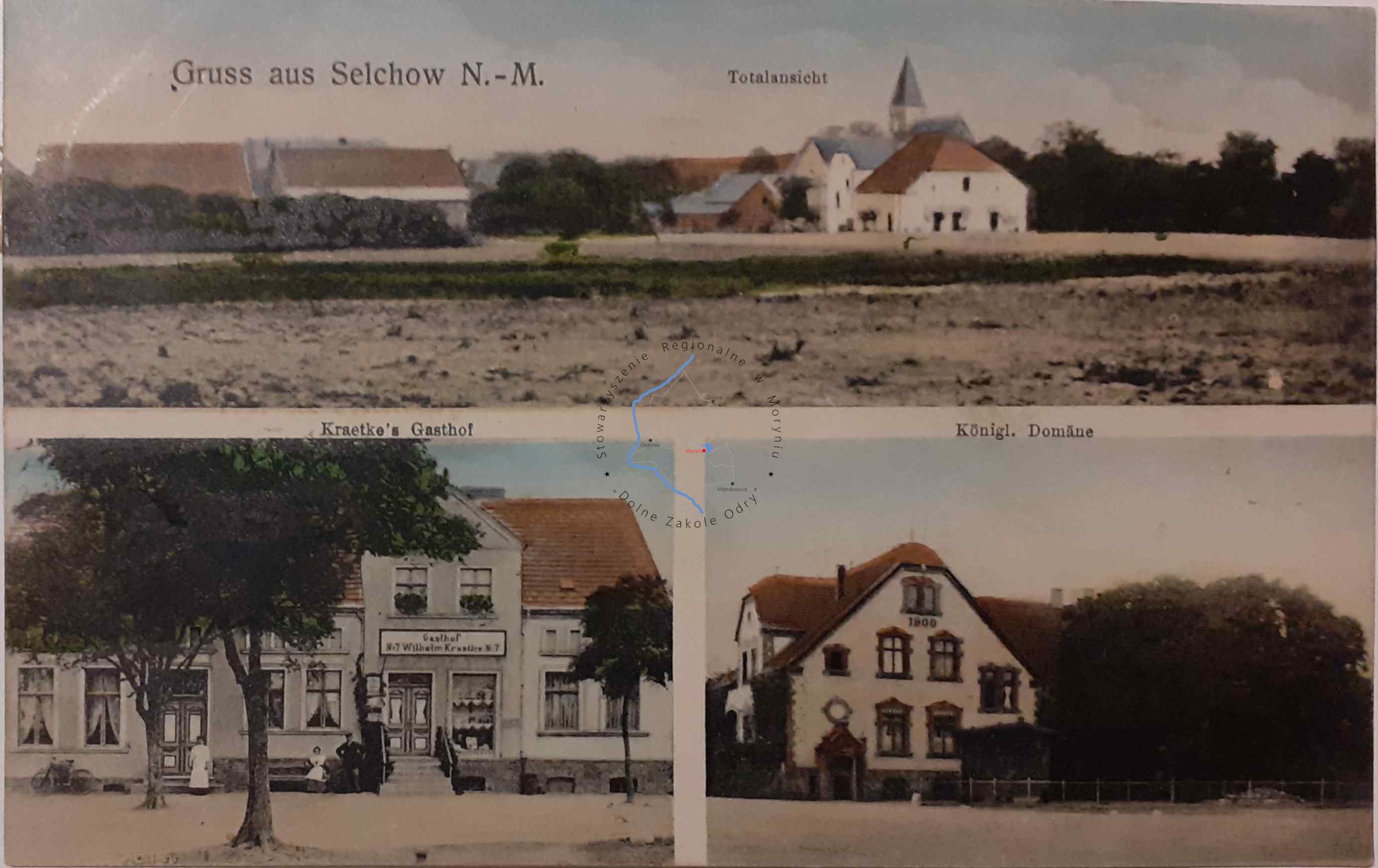 Pocztówka z obiegu, poczta Cedynia 24. 8. 1917Wydawca: E. Rammin Photogr. Zehden a/O. ( Cedynia )ŻELICHÓW Pocztówka wielowidokowa, - Wido...