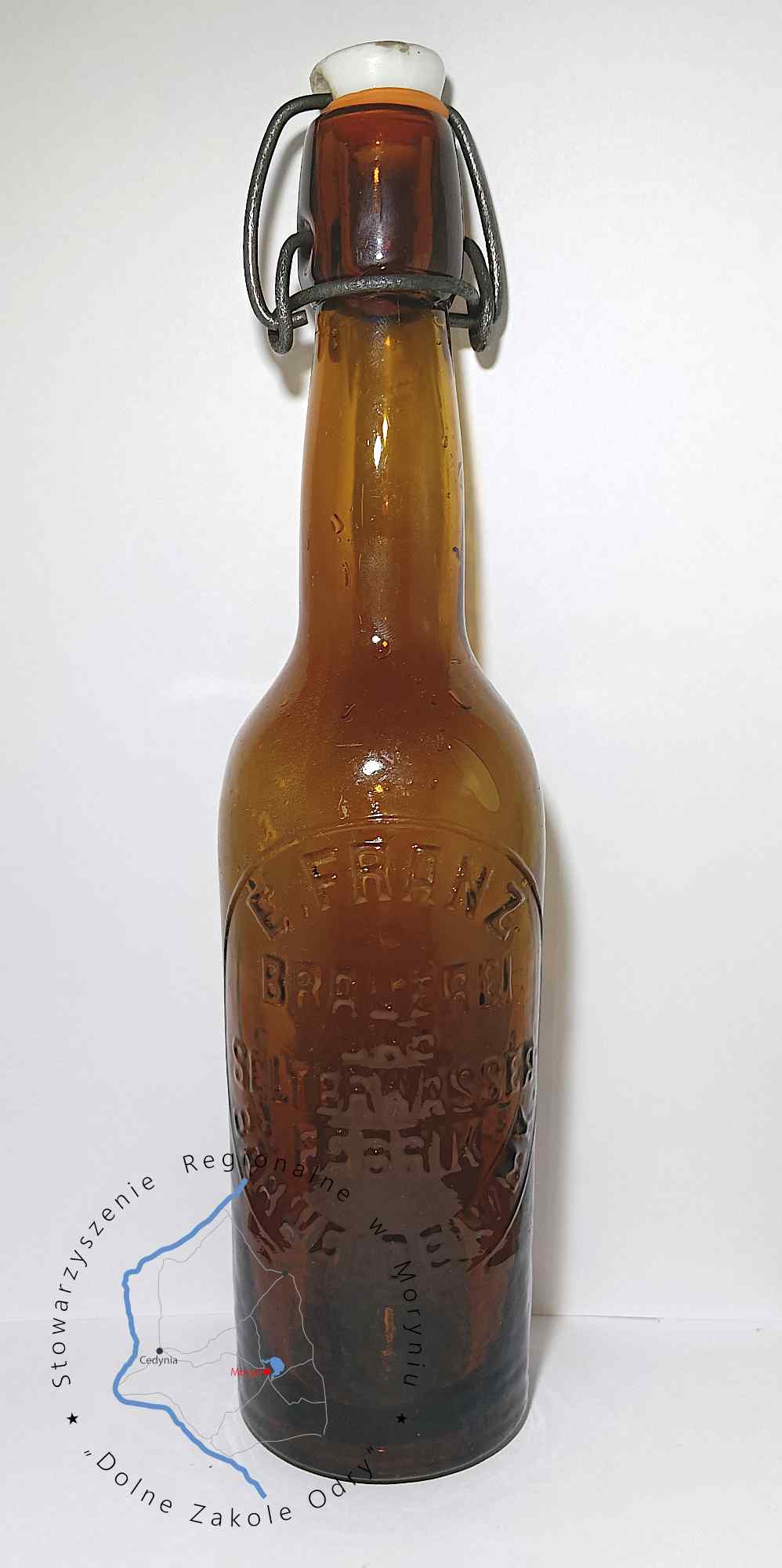 Butelka browaru i producenta wód mineralnych E. Franz z Mieszkowic ( przed 1945 )...