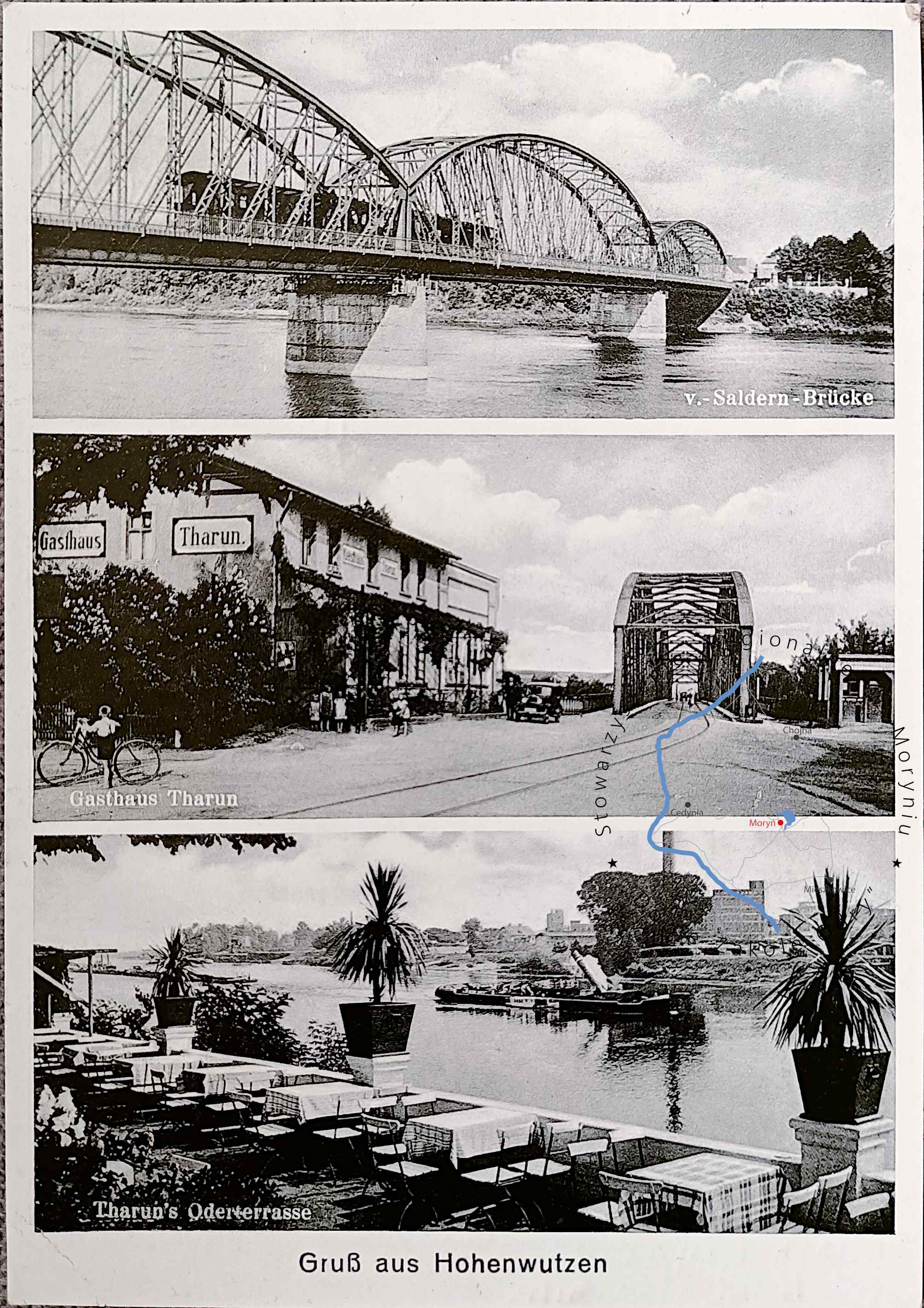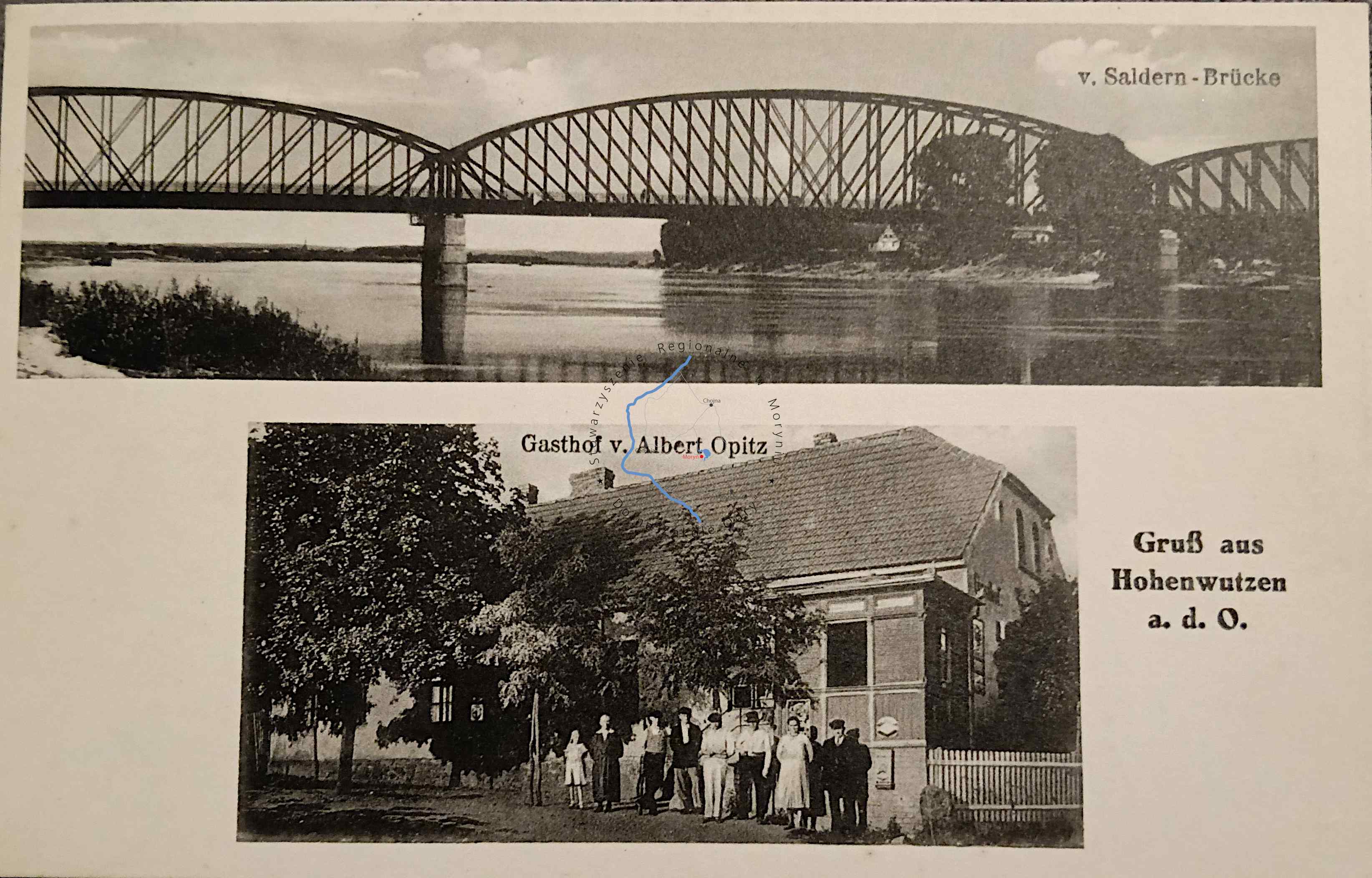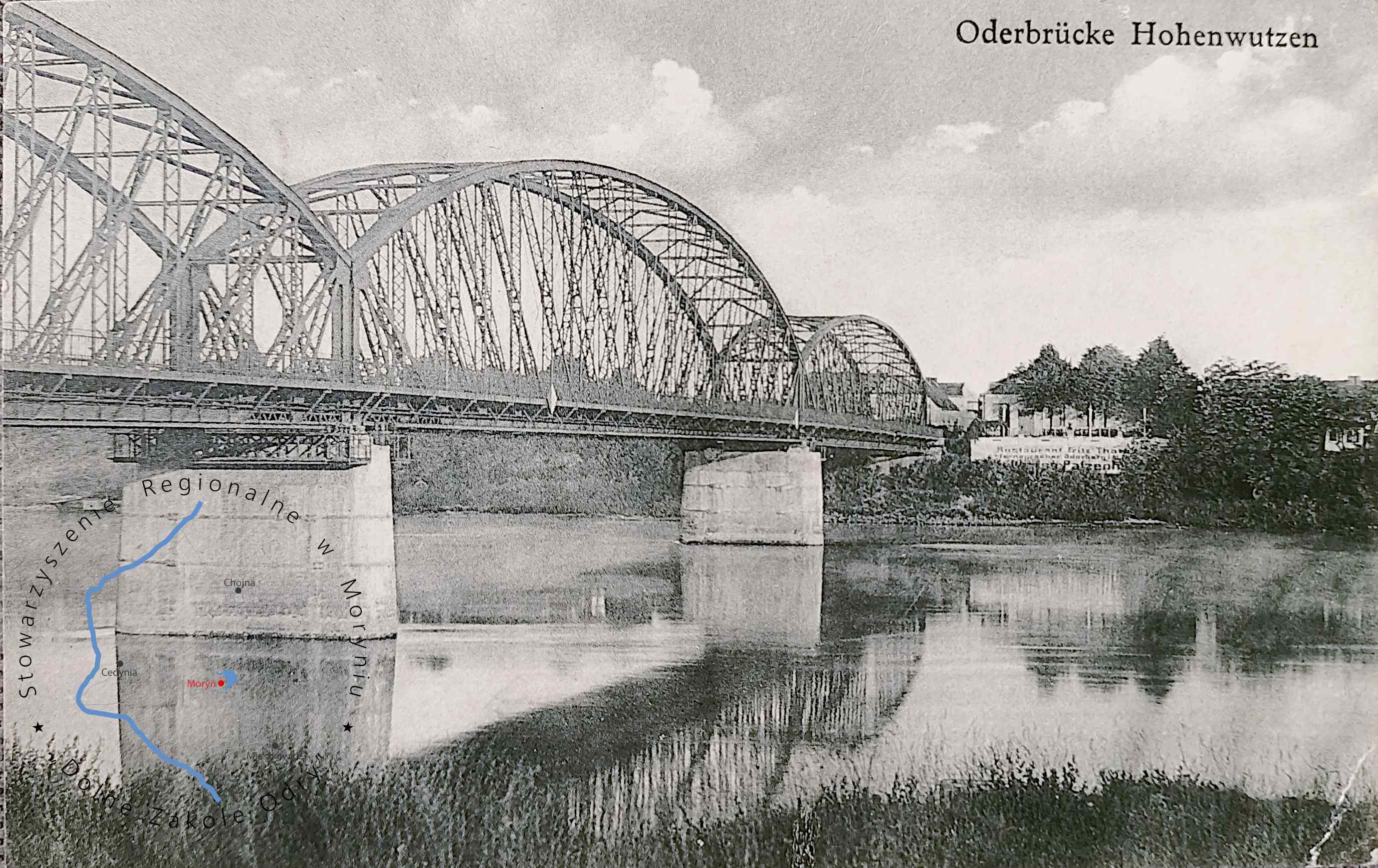 Pocztówka z Hohenwutzen z widokiem na most w Osinówie Dolnym Pocztówka z obiegu, poczta Bad Freienwalde 23. 05. 1931Wydawca: Foto M. Iwanski, Hoh...