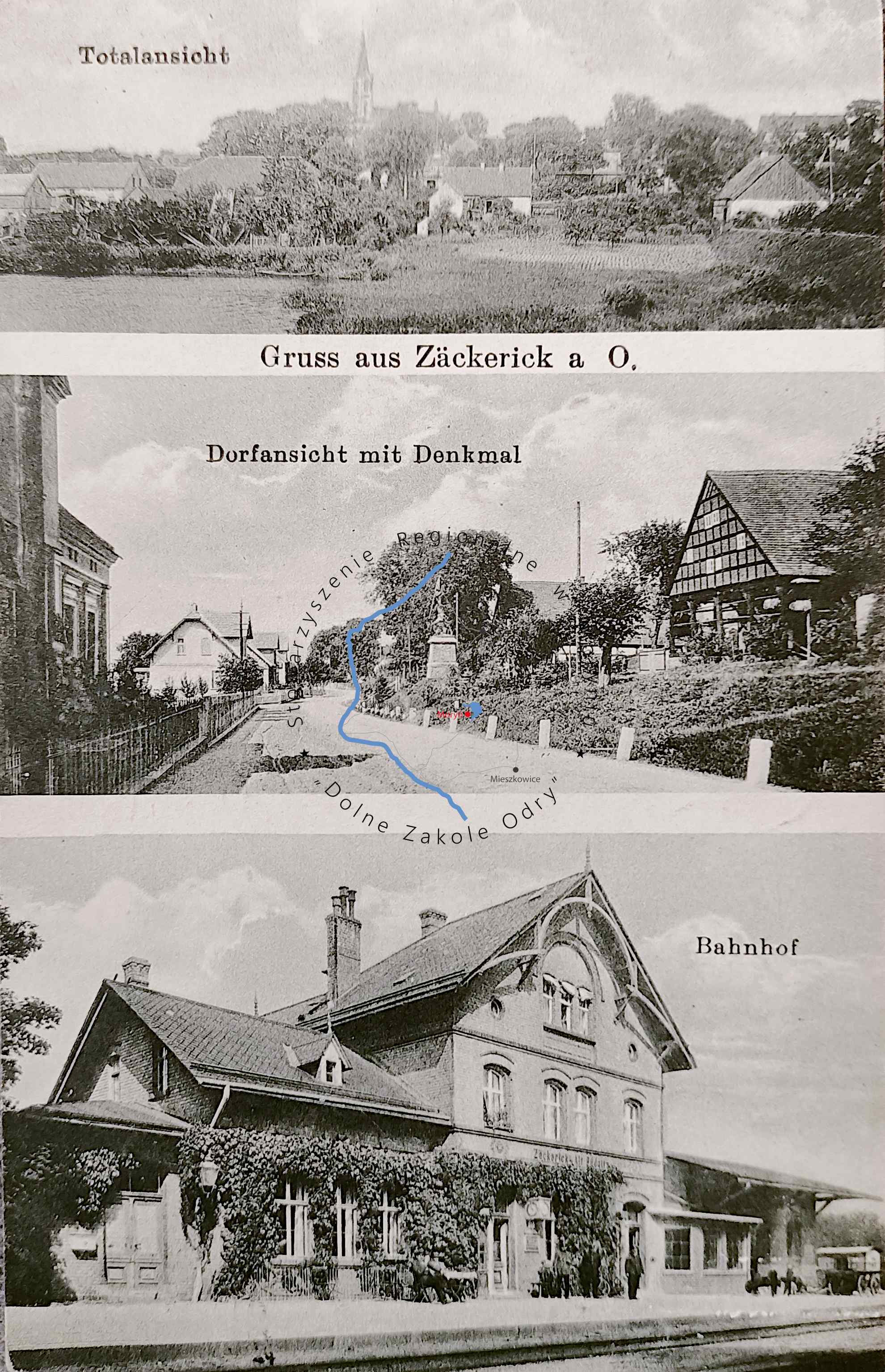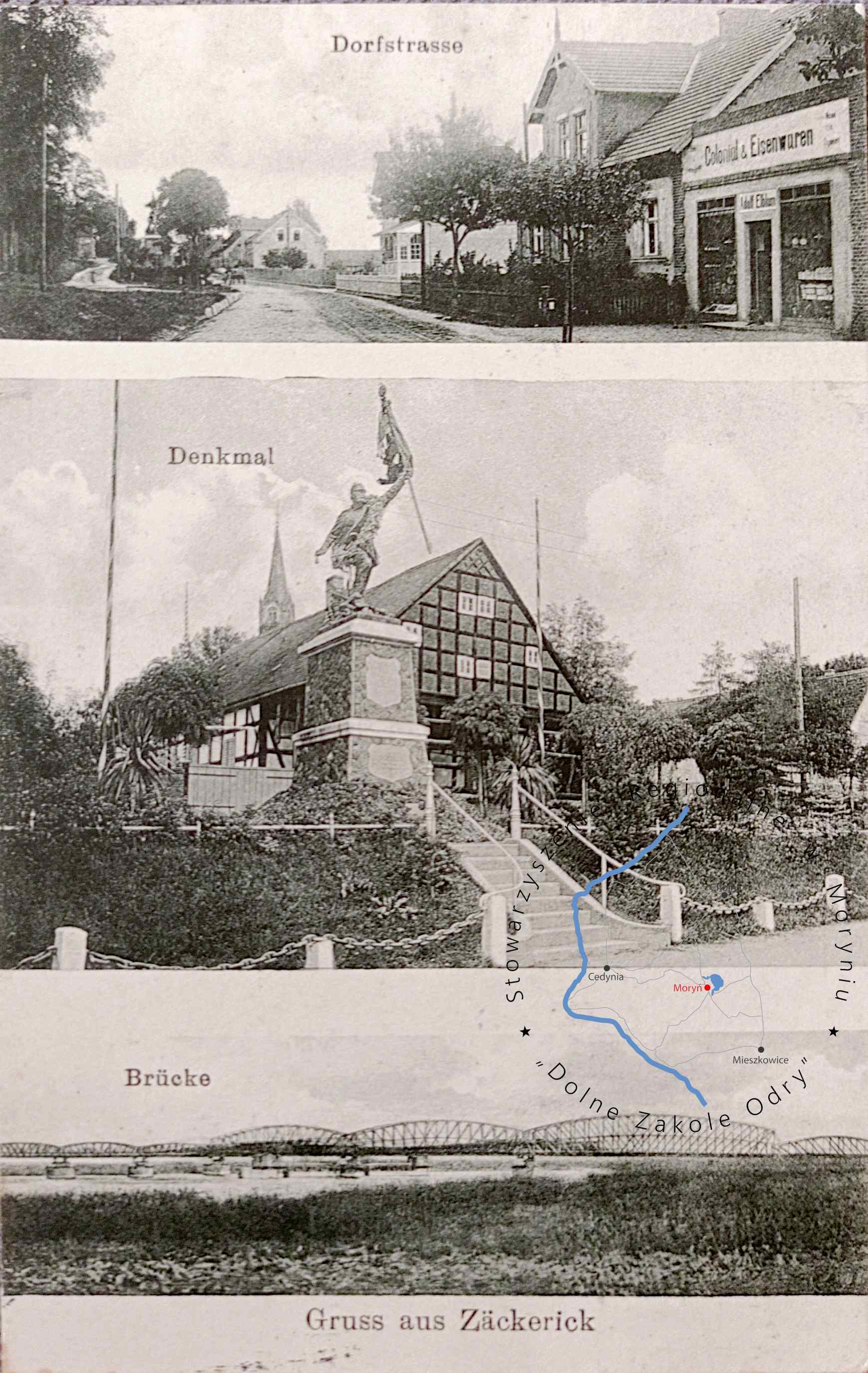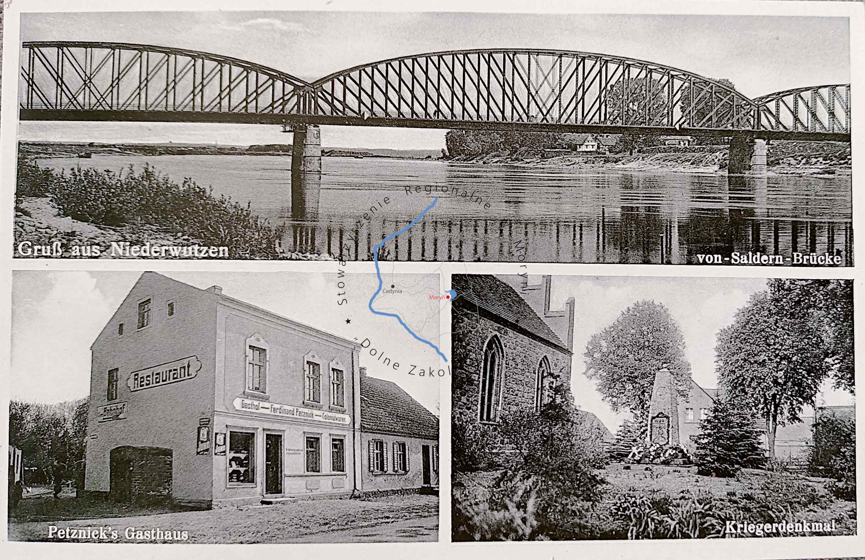 Pocztówka z Hohenwutzen z widokiem na Osinów DolnyPocztówka z obiegu, poczta Bad Freienwalde ?. 06. 1938Wydawca: Foto M. Iwanski, HohenwutzenOSINÓW DO...