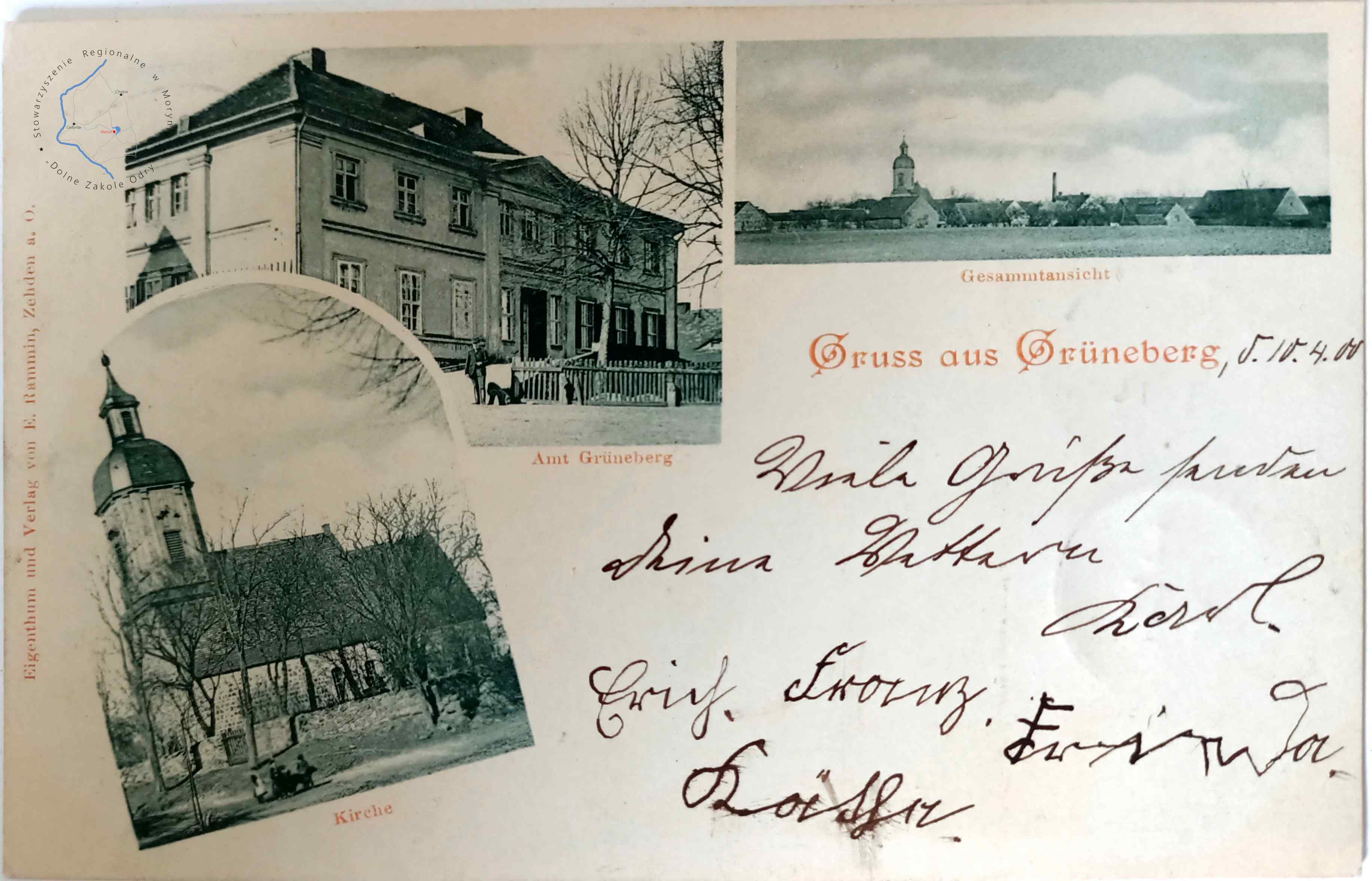 Pocztówka z obiegu, poczta Cedynia Wydawca: E. Rammin Photogr. Zehden a. O. ( Cedynia )GOLICE Pocztówka wielowidokowa, - Dom gościnn...