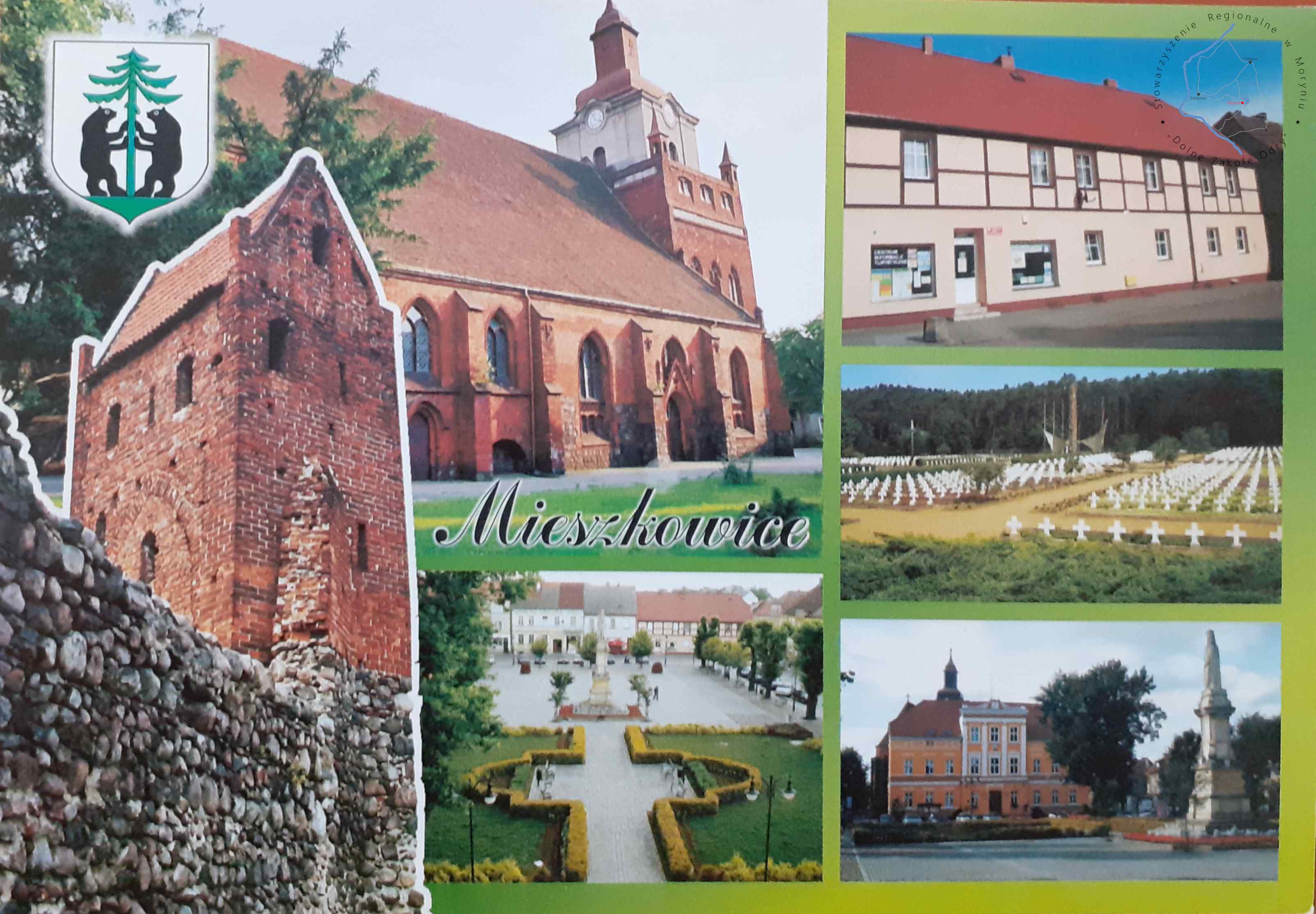 Pocztówka wielowidokowaGmina MieszkowicePocztówka bez obieguGmina Mieszkowice Cmentarz Wojenny w Starych Łysogórkach Kościół w Mieszkowicach...