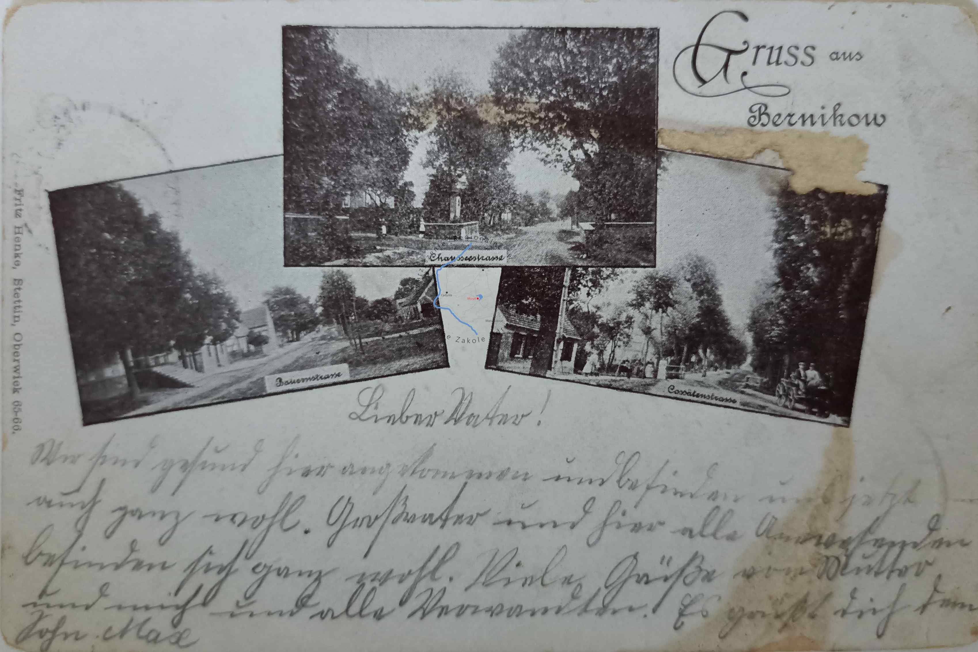 Pocztówka z obiegu, poczta Chojna 30. 10. 1902Wydawca: Fritz Henke, Stettin, Oberwiek 66-65 (Szczecin) BARNKOWO (...