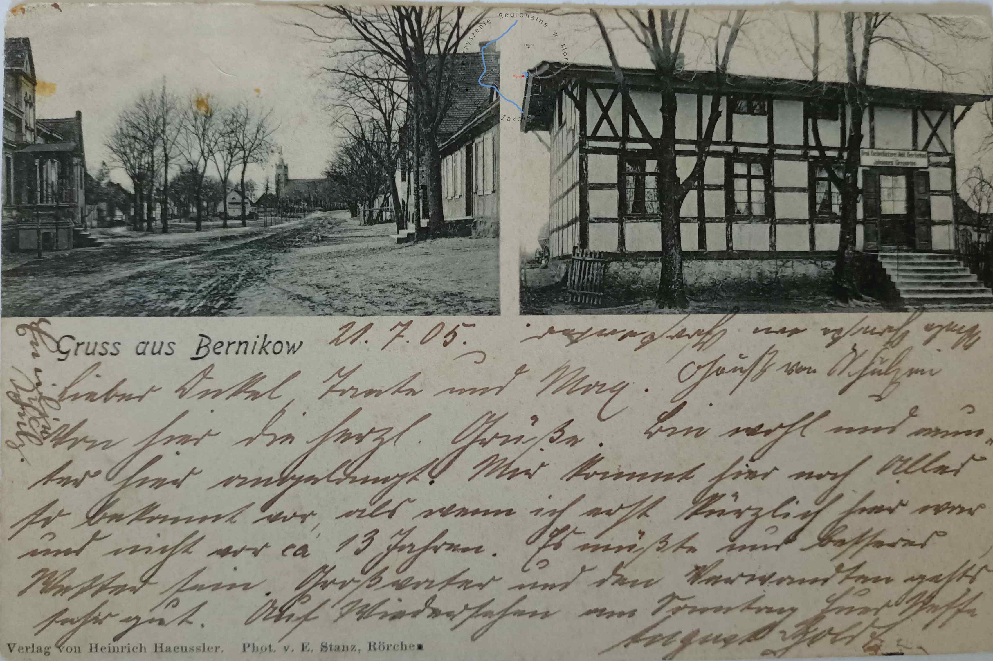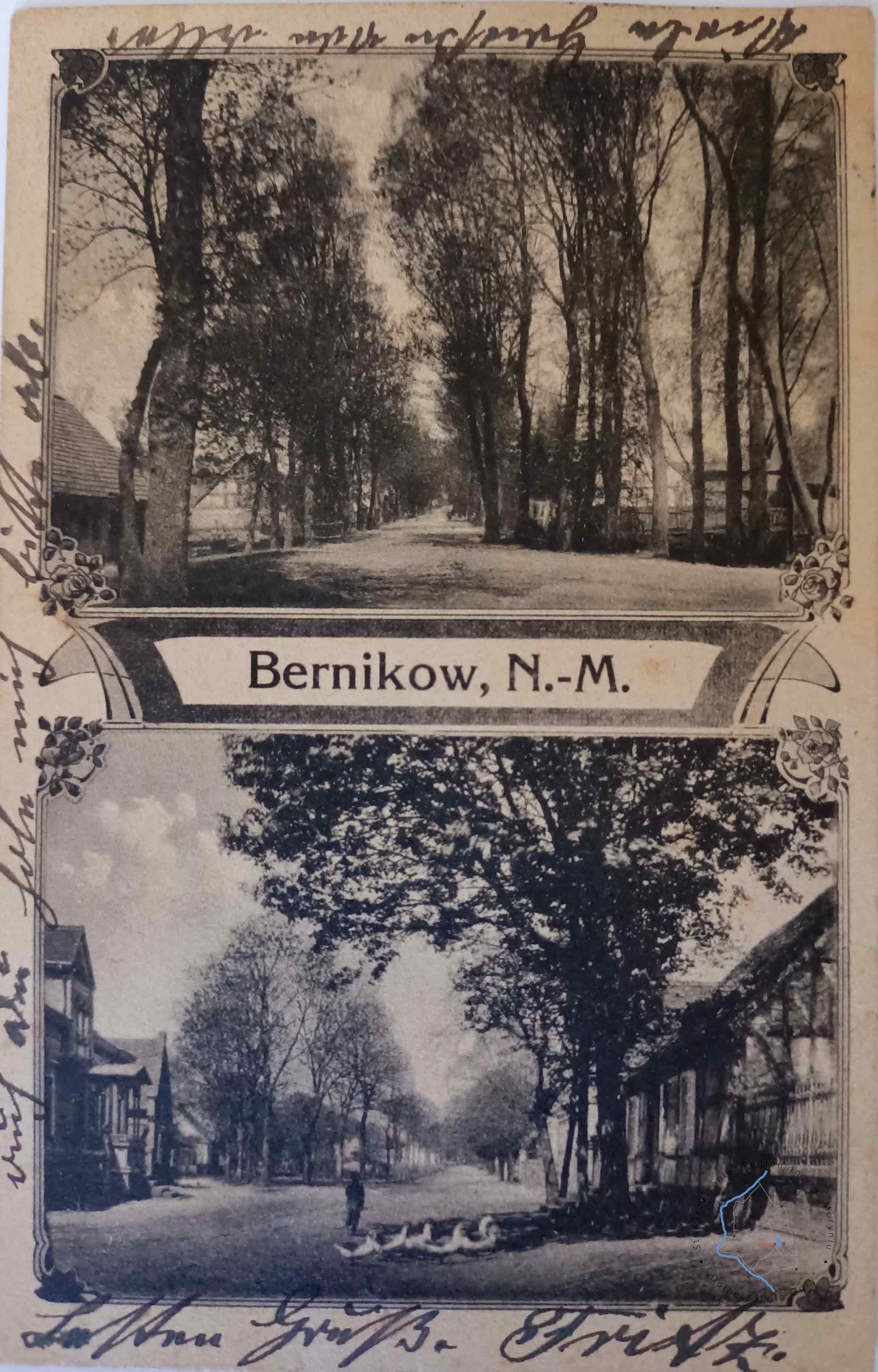 Pocztówka z obiegu, 5. 8. 1920Wydawca: Karl Kliem, Bernikow, N.-M. ( Barnkowo )BARNKOWO (CHOJNA) dwa fragm...