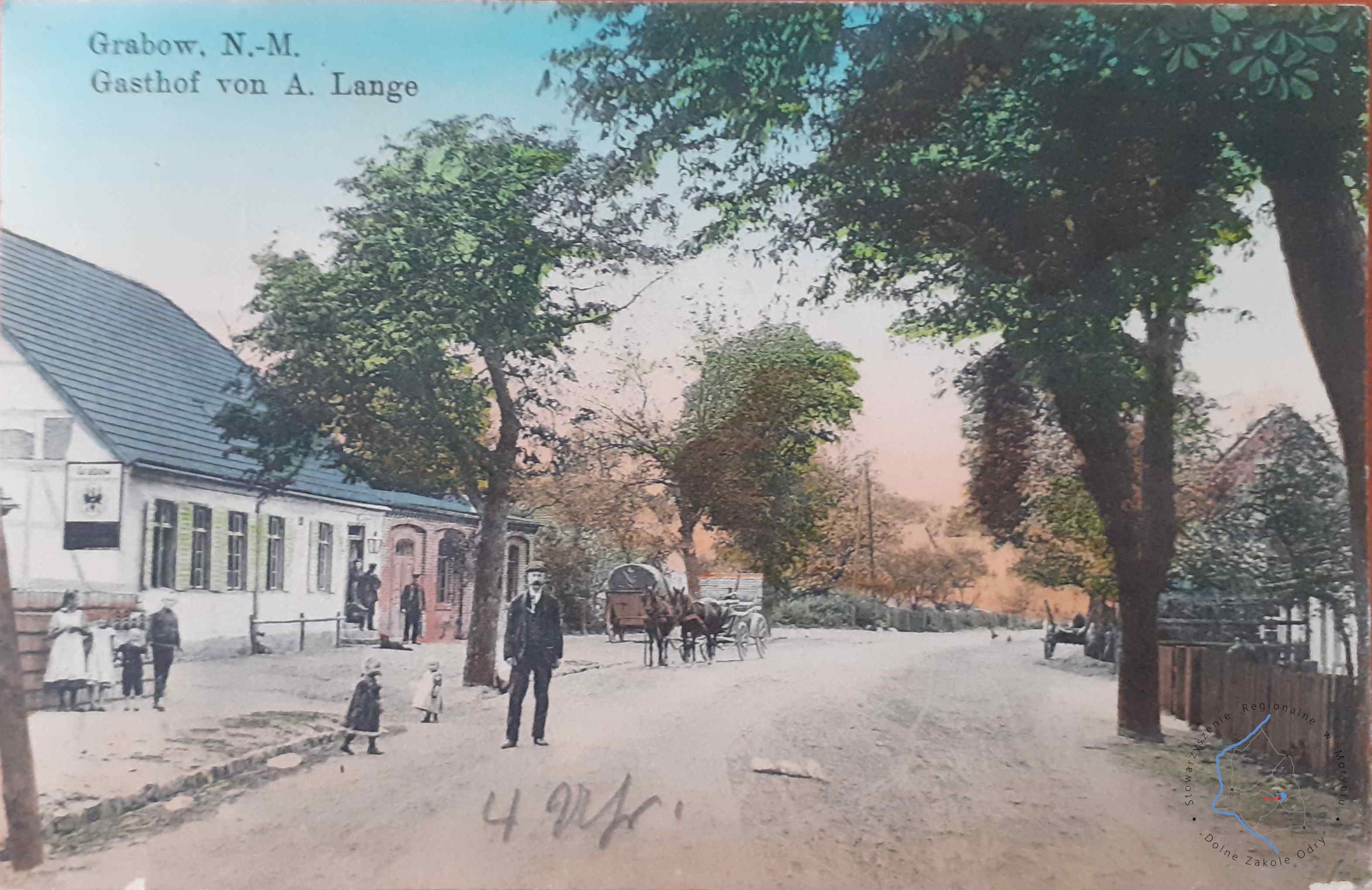 Pocztówka z obiegu 12. 7. 1913Wydawca: Alfred Schwintzer, Schwedt a. O.GRABOWO Gospoda A. Lange