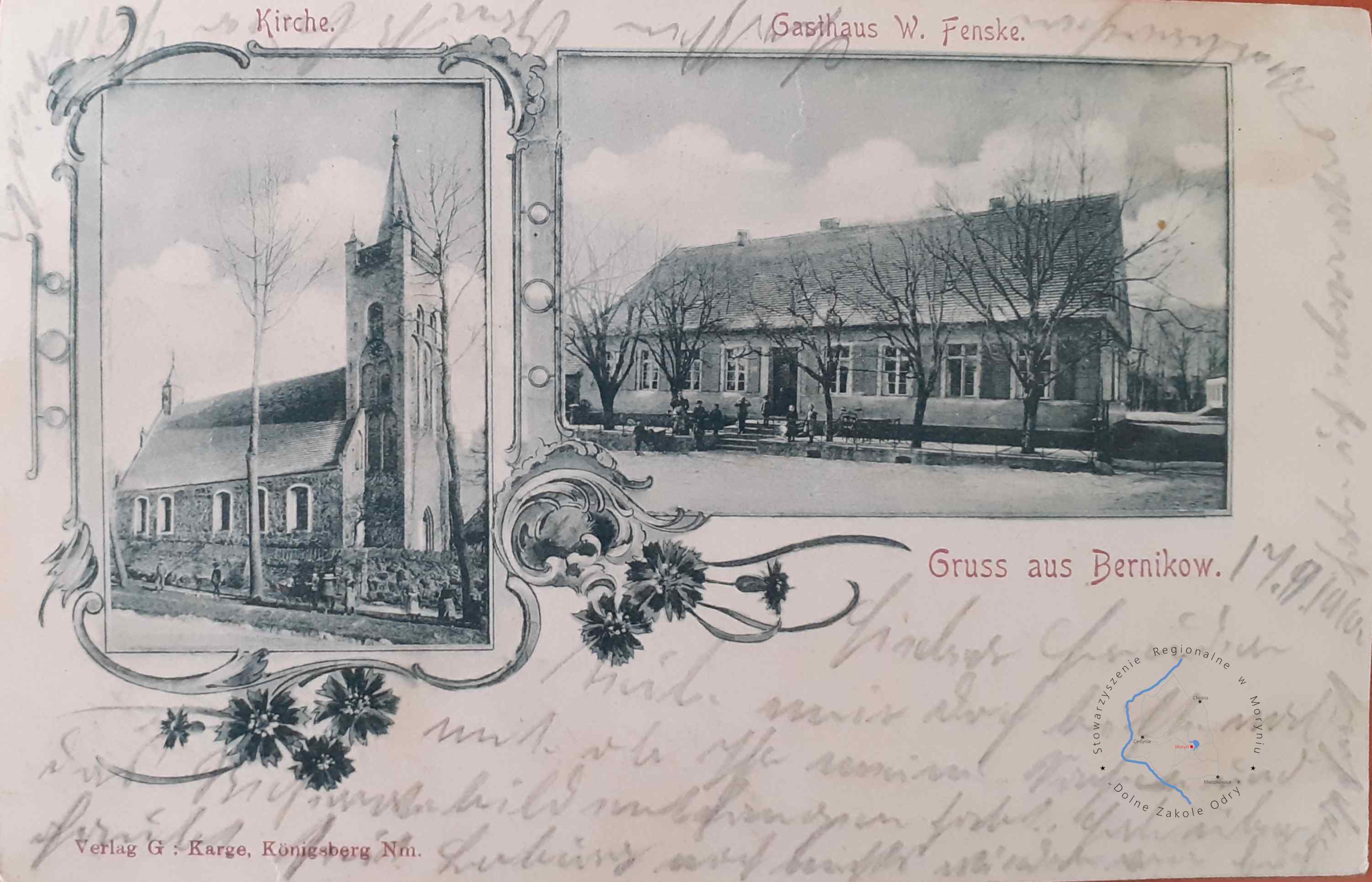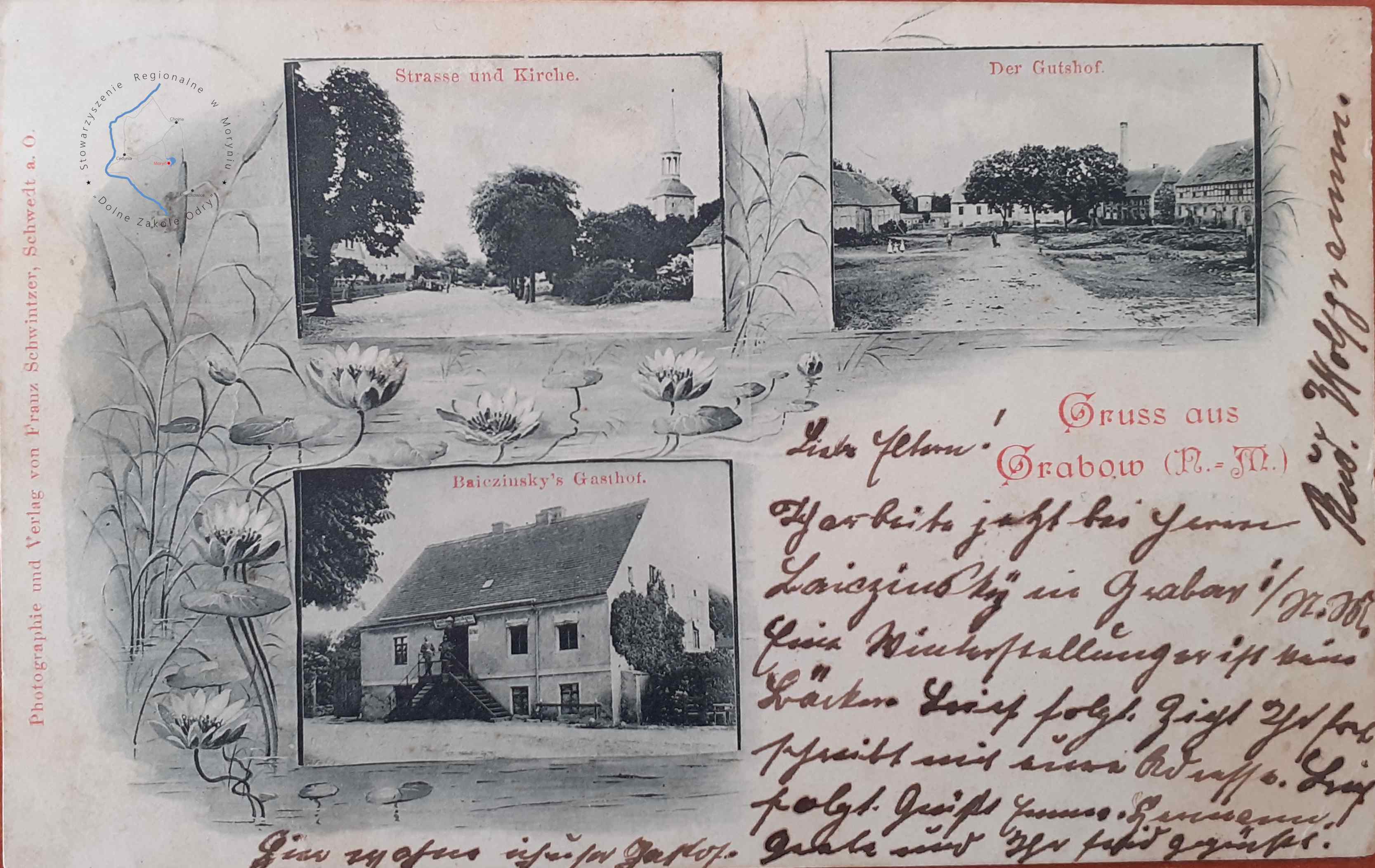 Pocztówka z obiegu, poczta Schwedt 17. 4. 1911Wydawca: H. Kaiser, Photogr. Konigsberg Nm. ( Chojna )GRABOWO Dom ...
