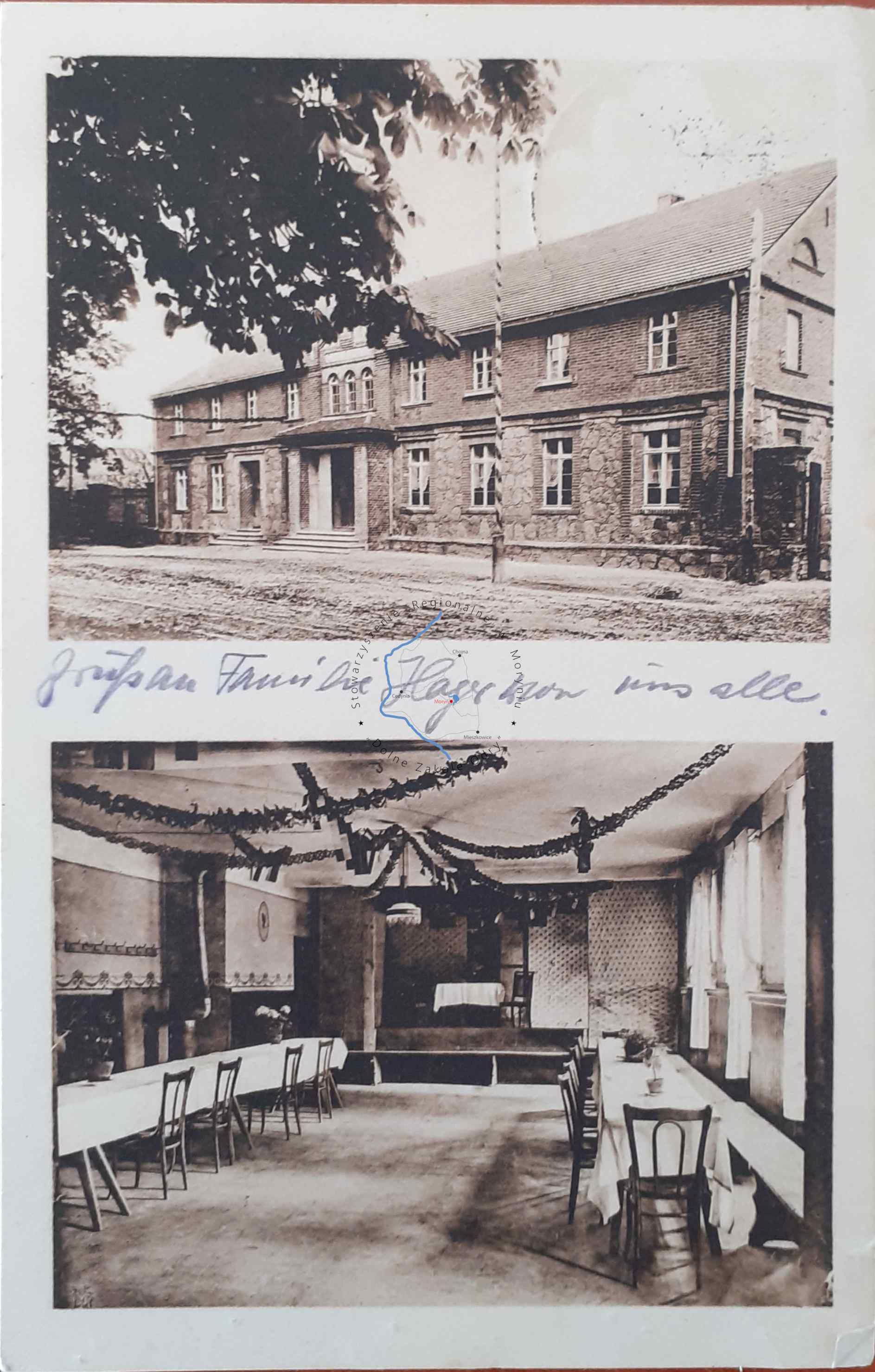 Pocztówka z obiegu, poczta Krzymów 5. 8. 1930Wydawca: Melcher & Weber, Dresden A. 16KRZYMÓW Dom gościnny “Zur...