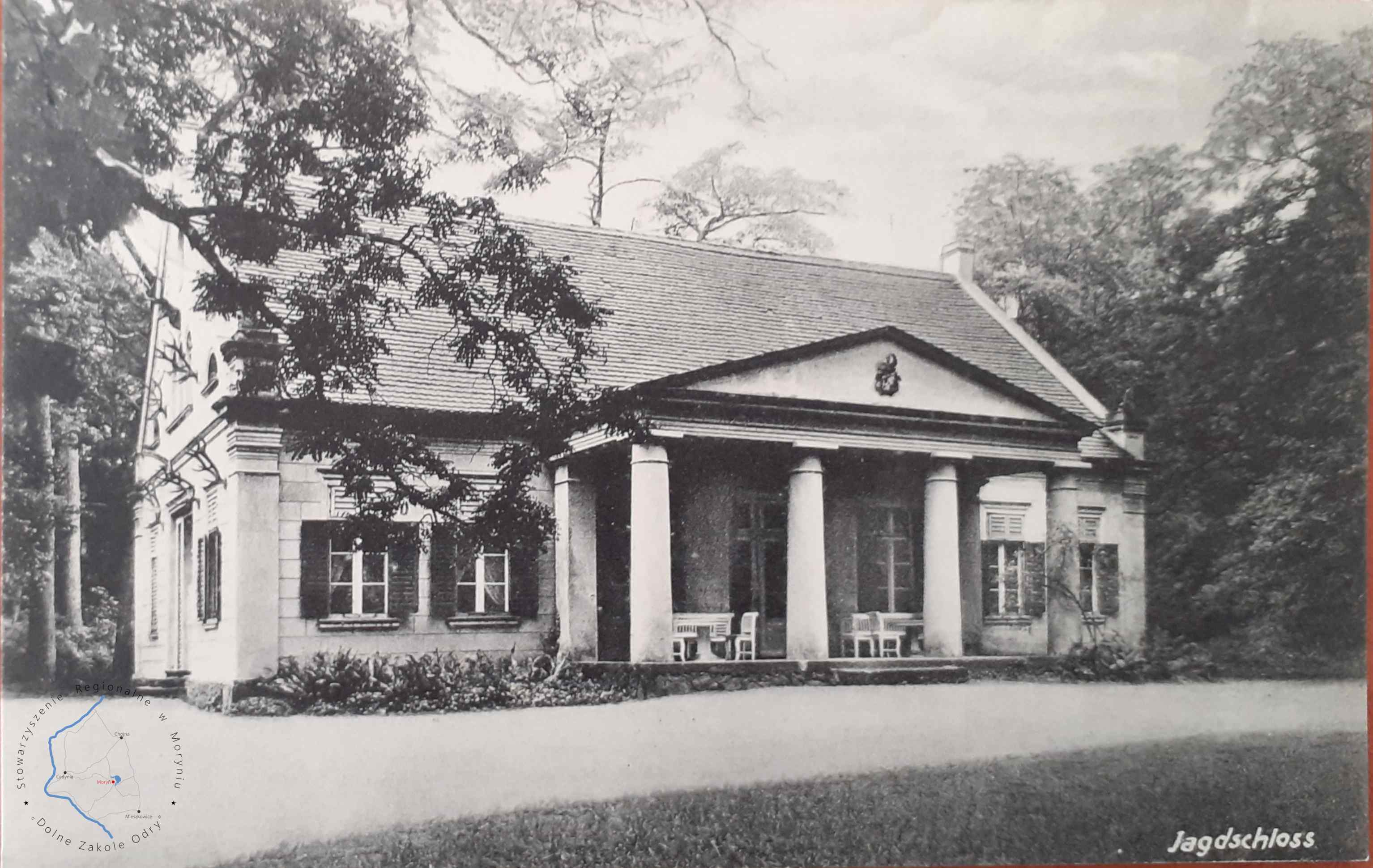 Pocztówka z obiegu, poczta Dechsel 12. 8. 1929Wydawca: Paul Dumroese, Stettin ( Szczecin )KRZYMÓW Leśniczówka...