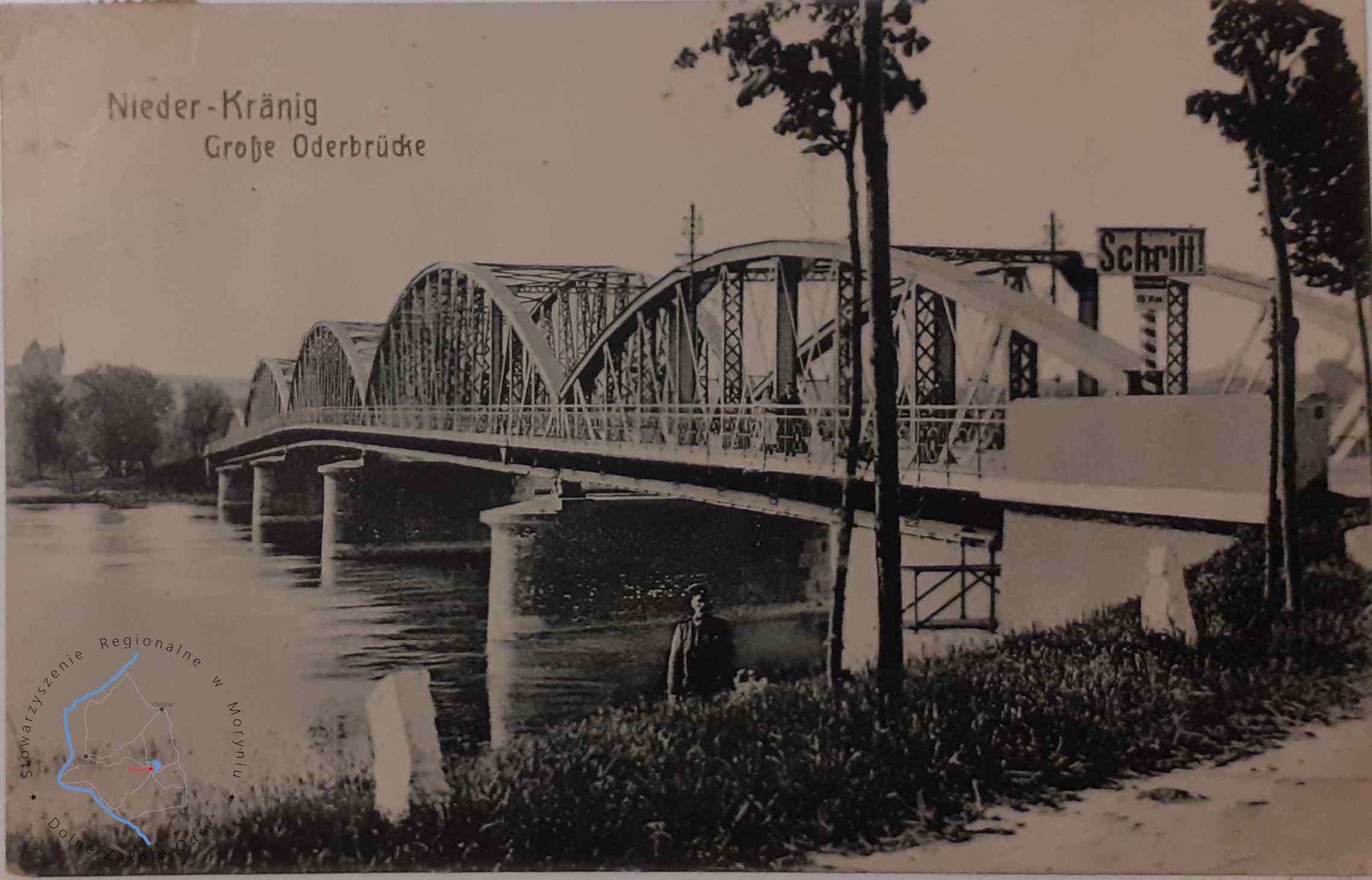 Pocztówka z obiegu, poczta Schwedt 14. 9. 1920Wydawca: Ernst Tierze, Schwedt=Oder.KRAJNIK DOLNY Most na Odrze