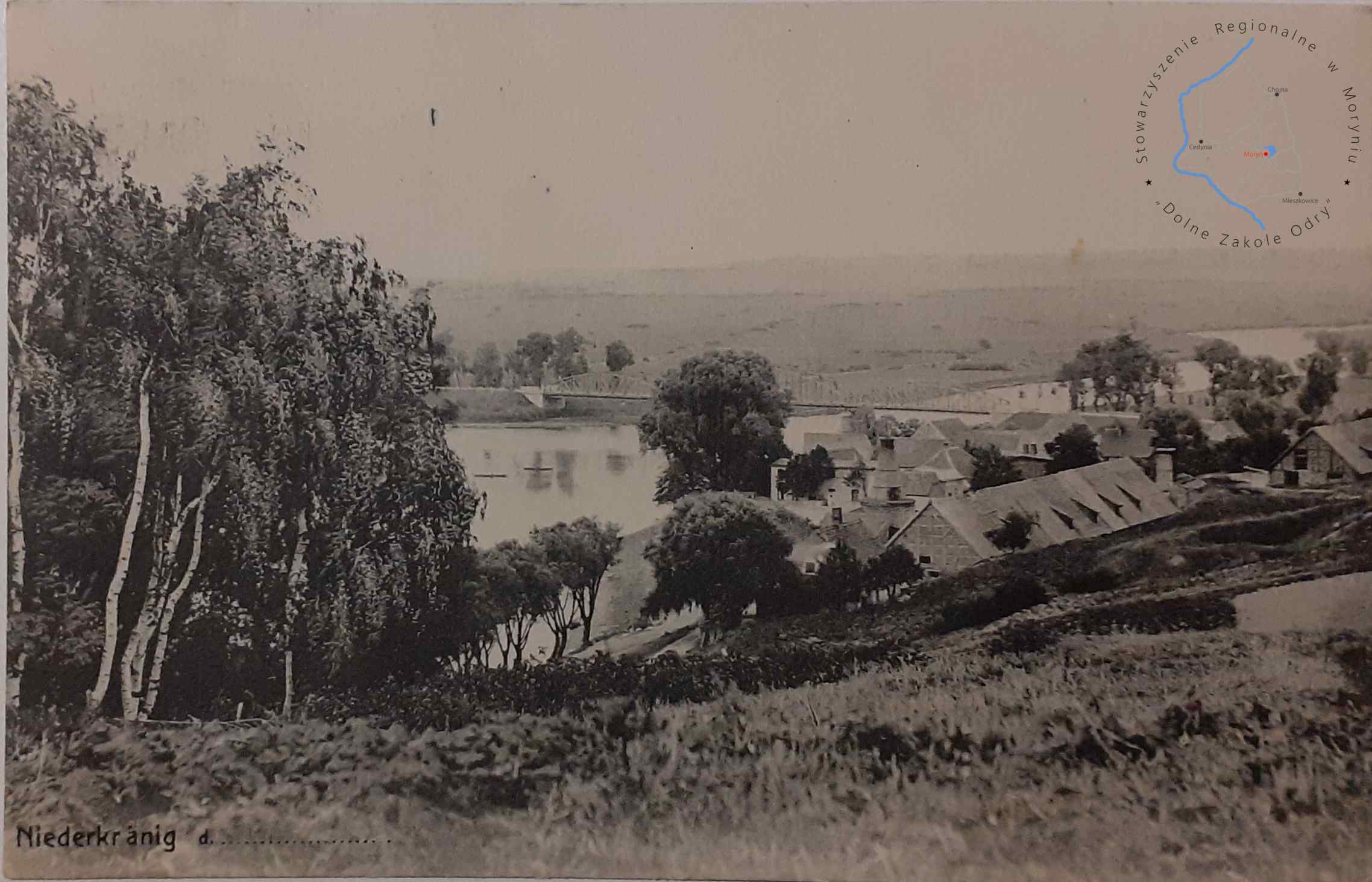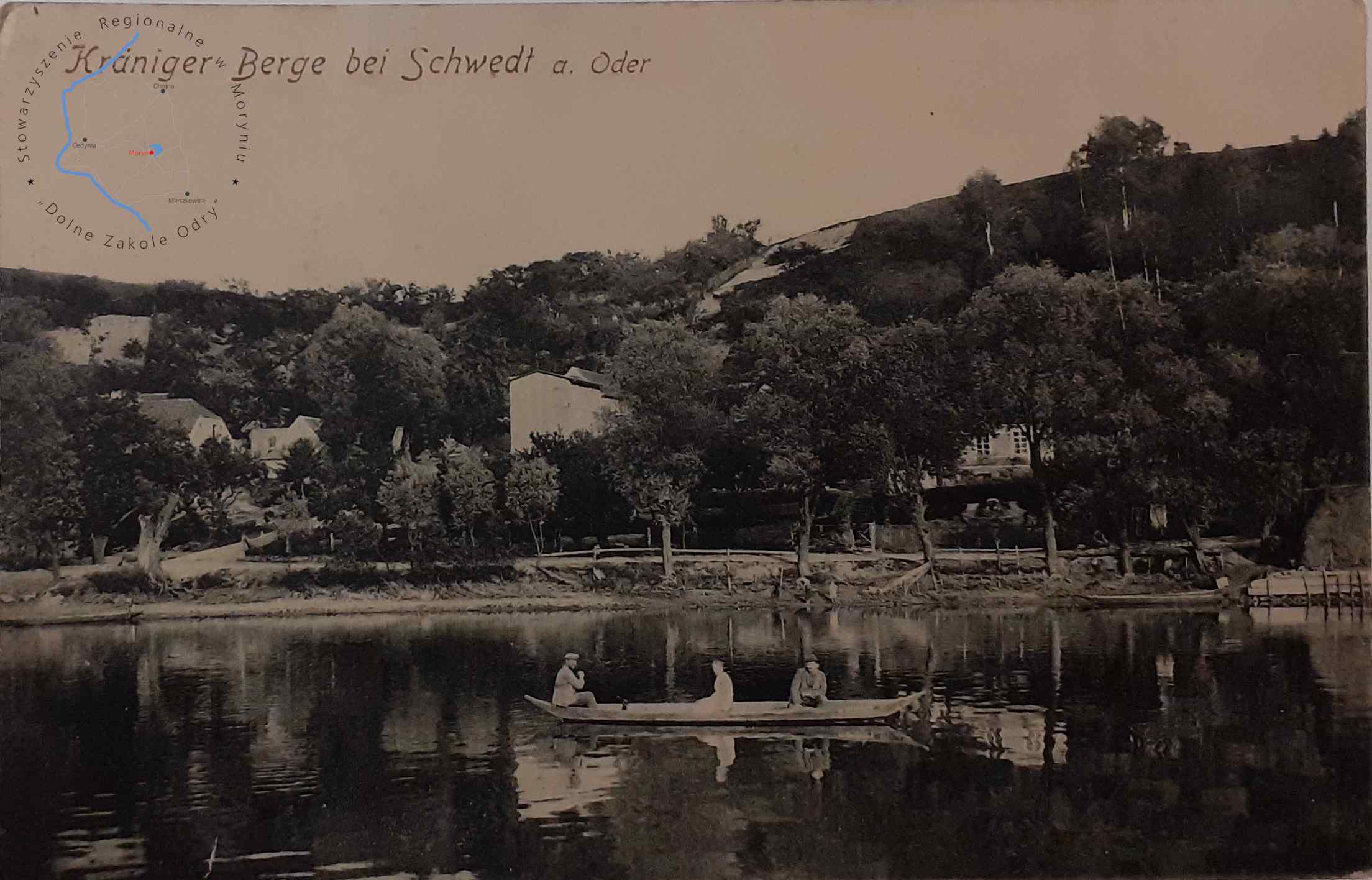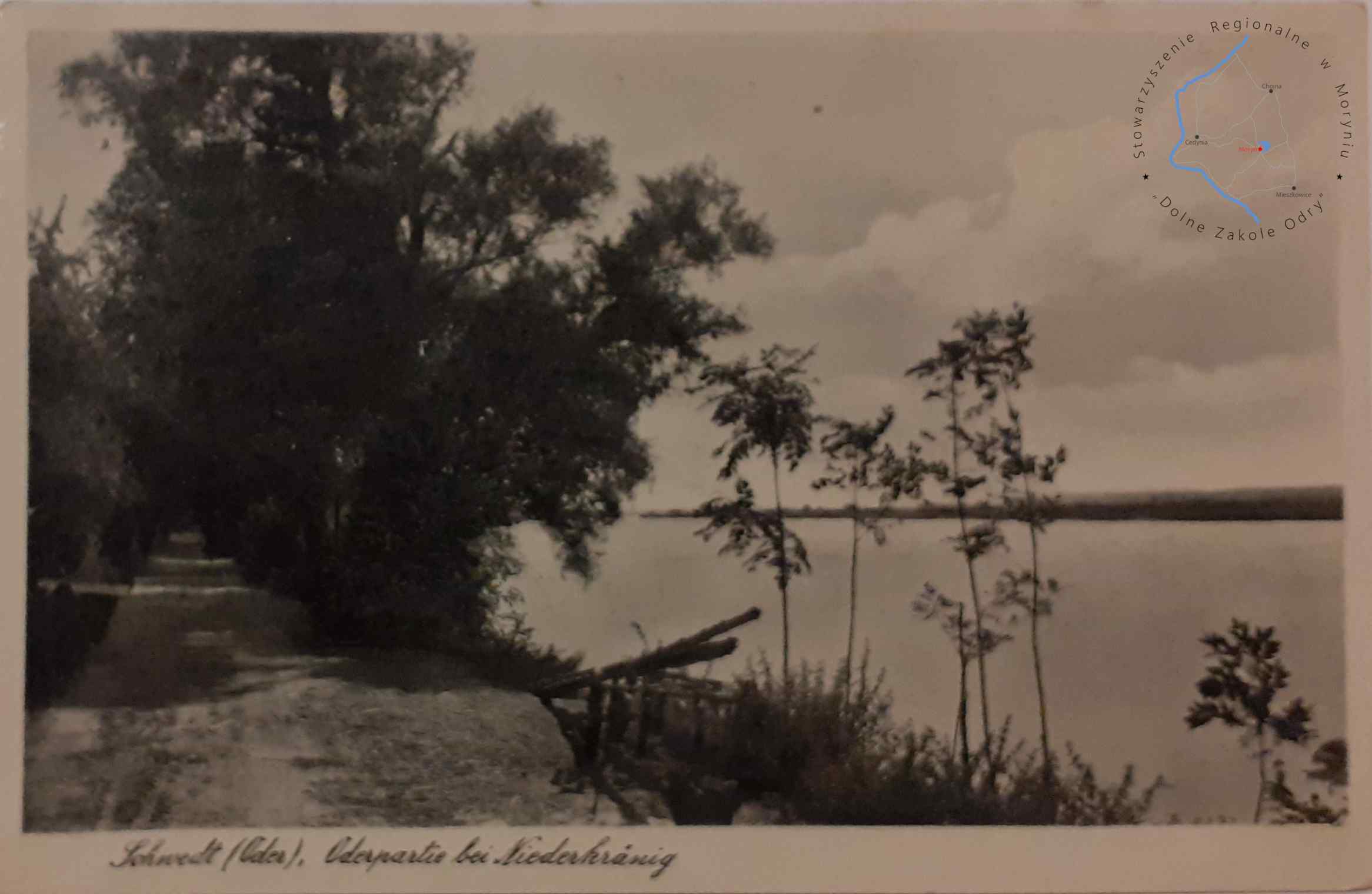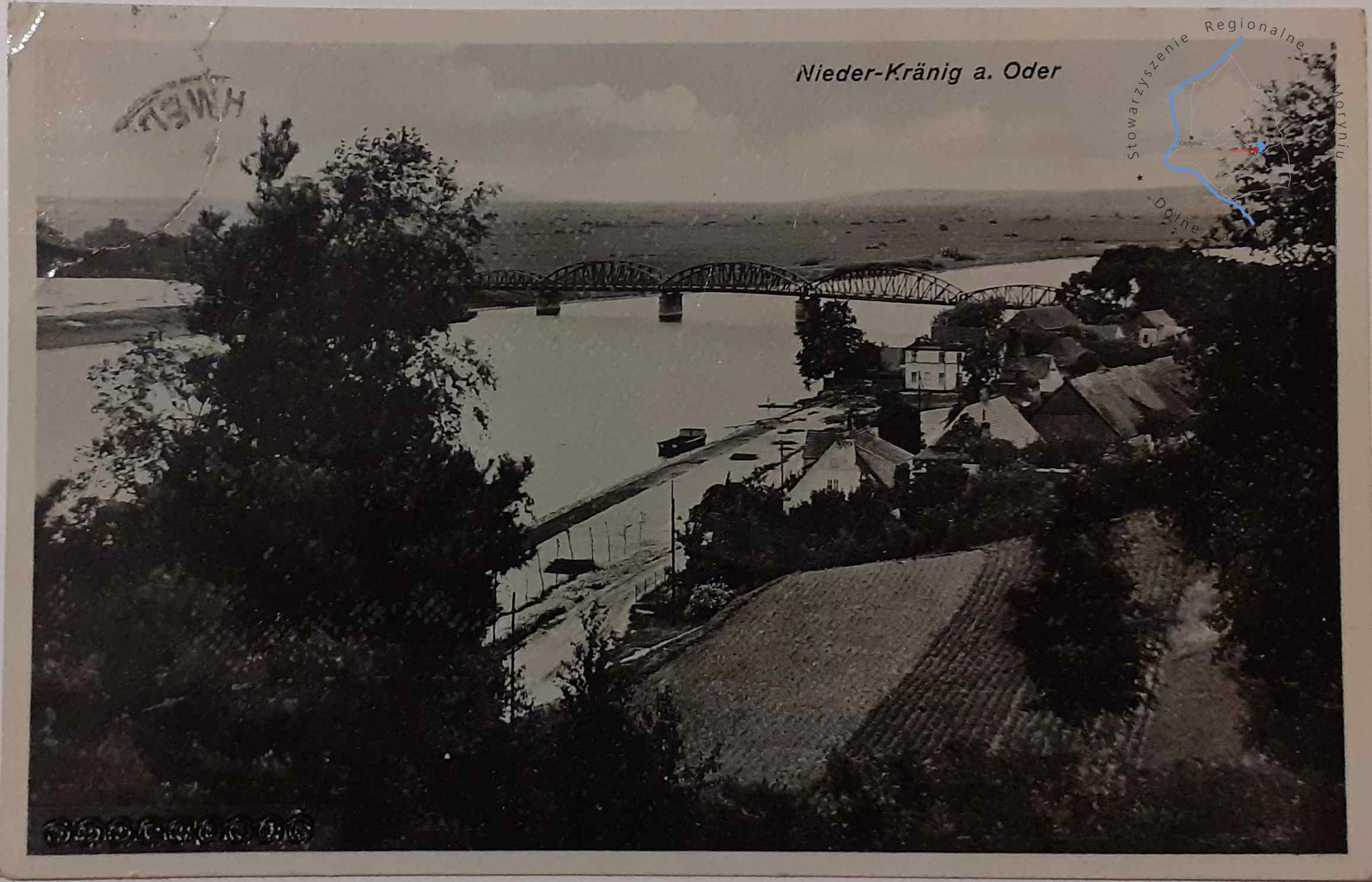 Pocztówka bez obiegu Wydawca: Alfred Schwintzer, Schwedt KRAJNIK DOLNY Widok panoramiczny od strony Odry