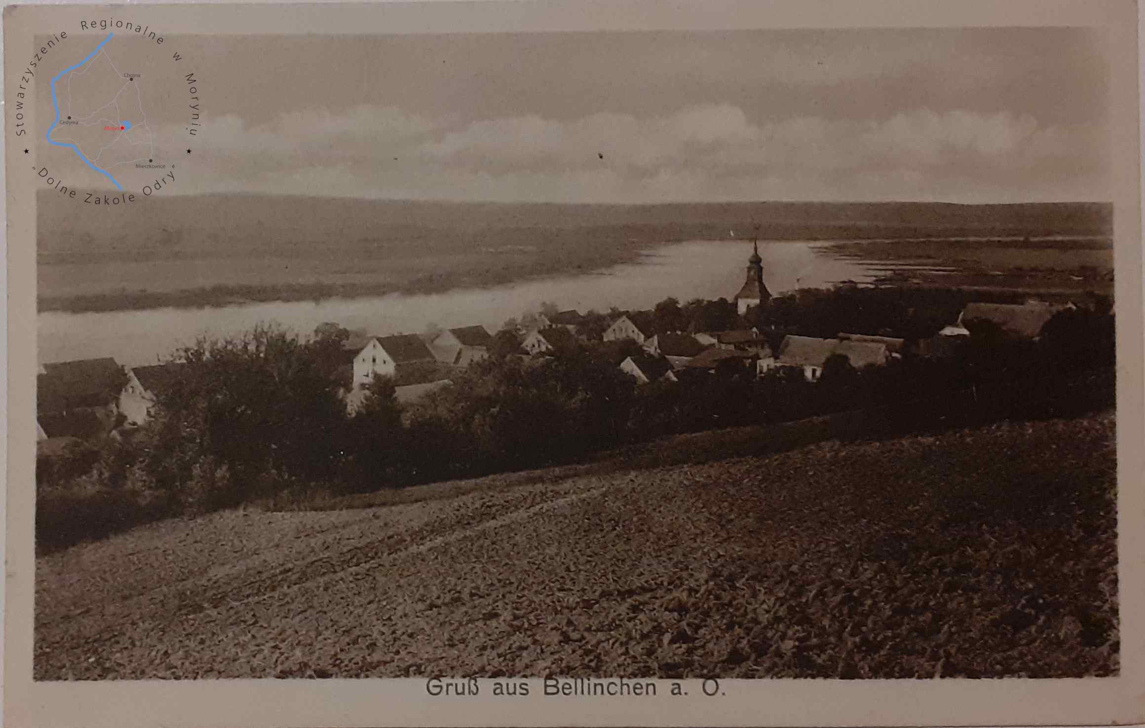 Pocztówka z obiegu, poczta Cedynia 3. 5. 1914Wydawca: v. G. Stern, Berlin N., Stolpischestr. 7BIELINEK Widok panoramic...