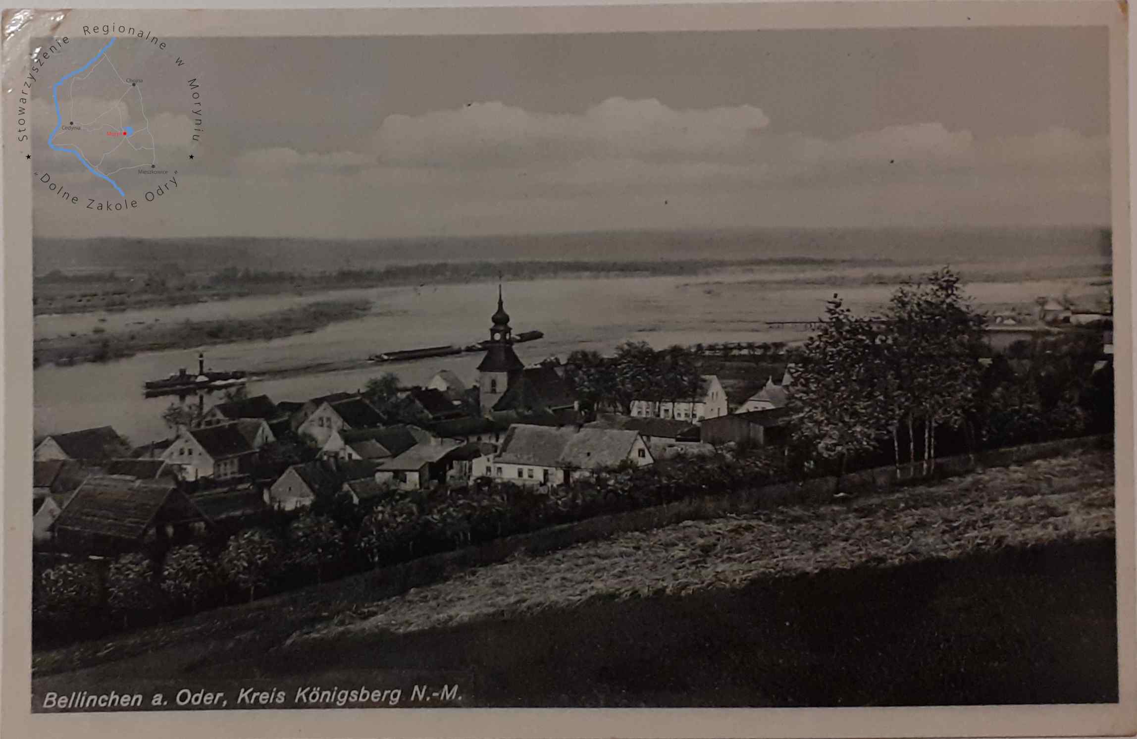 Pocztówka z obiegu, poczta Bielinek 8. 4. 1929Wydawca: M. Koock, Fotograf, Mohrin, N. -M. ( Moryń )BIELINEK Widok pan...