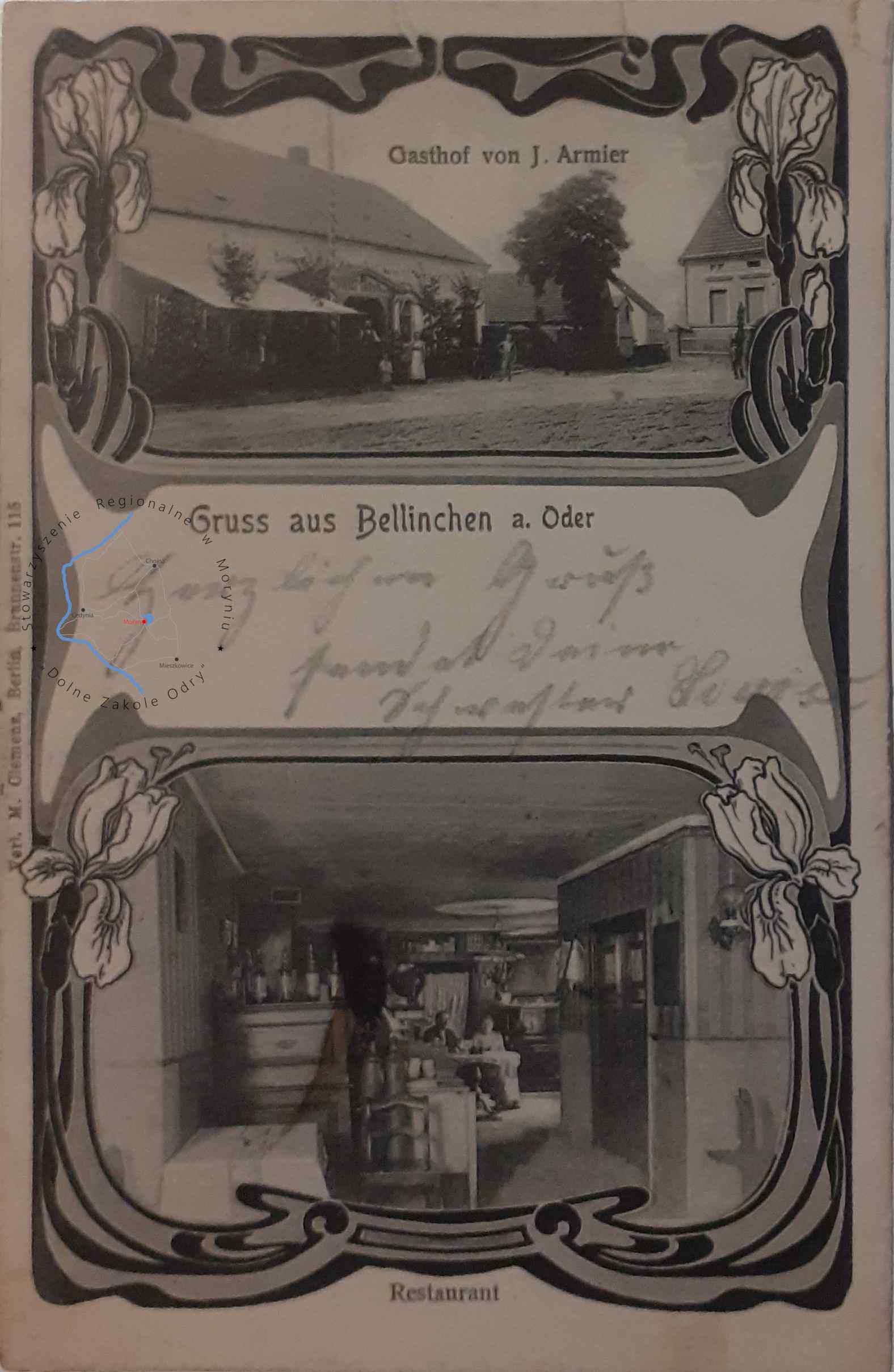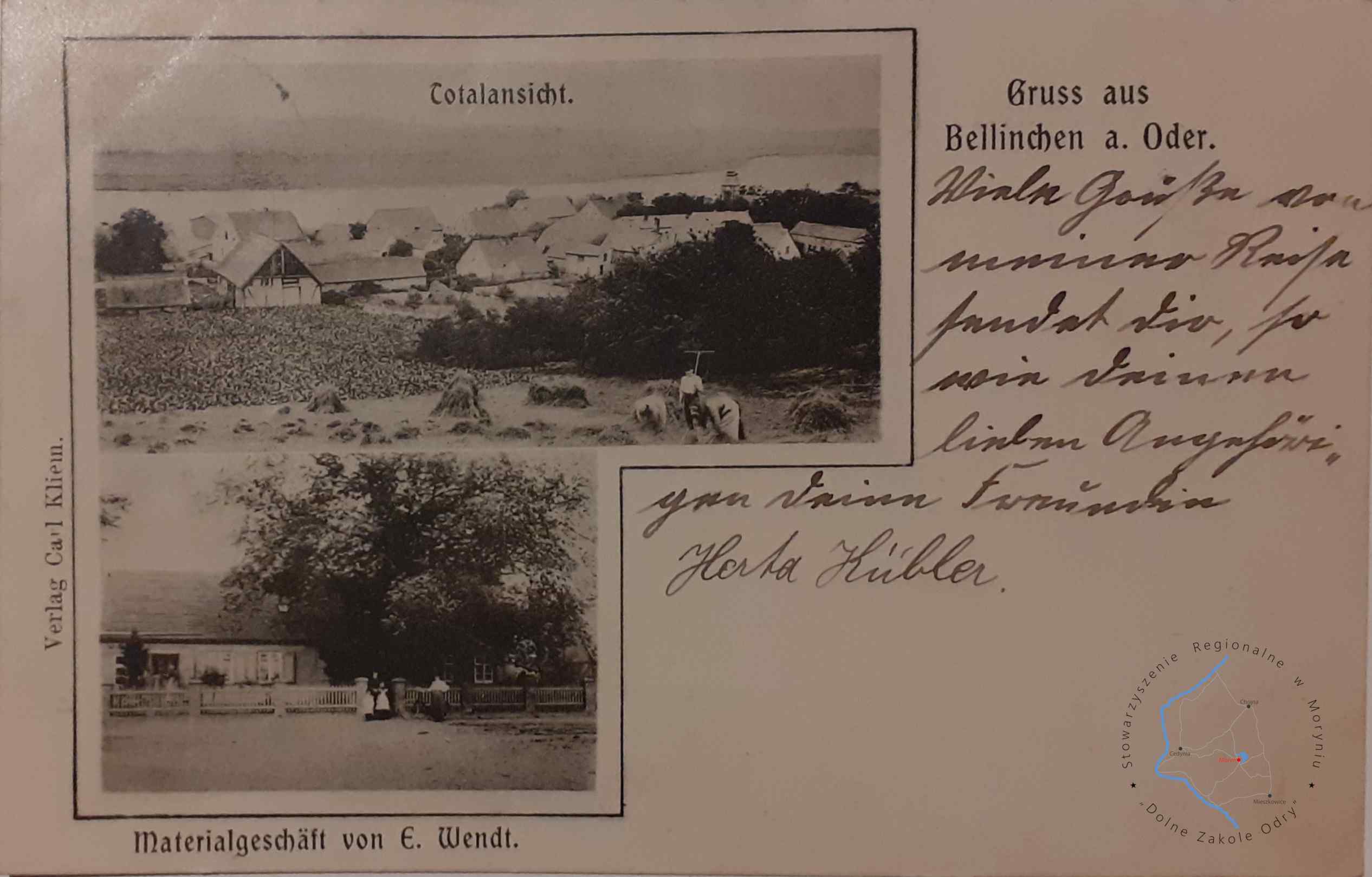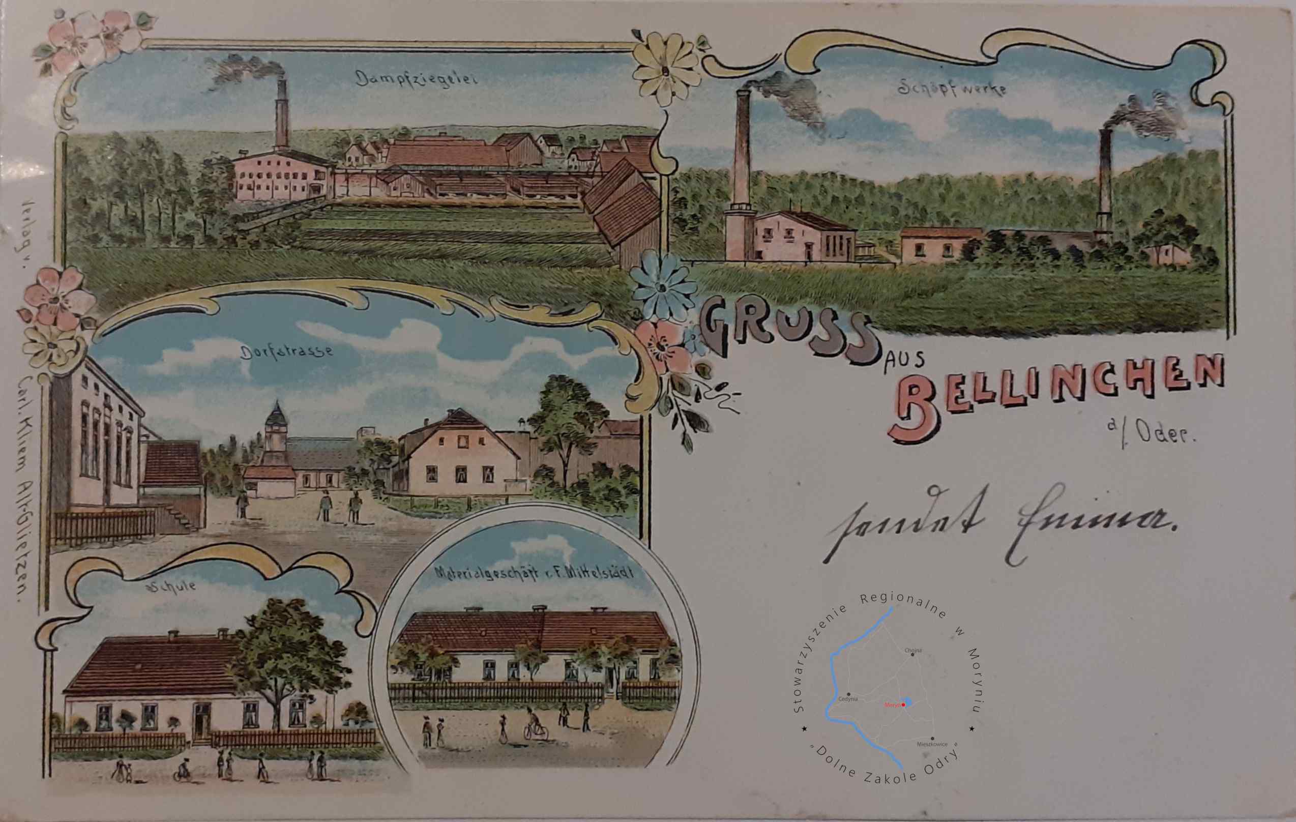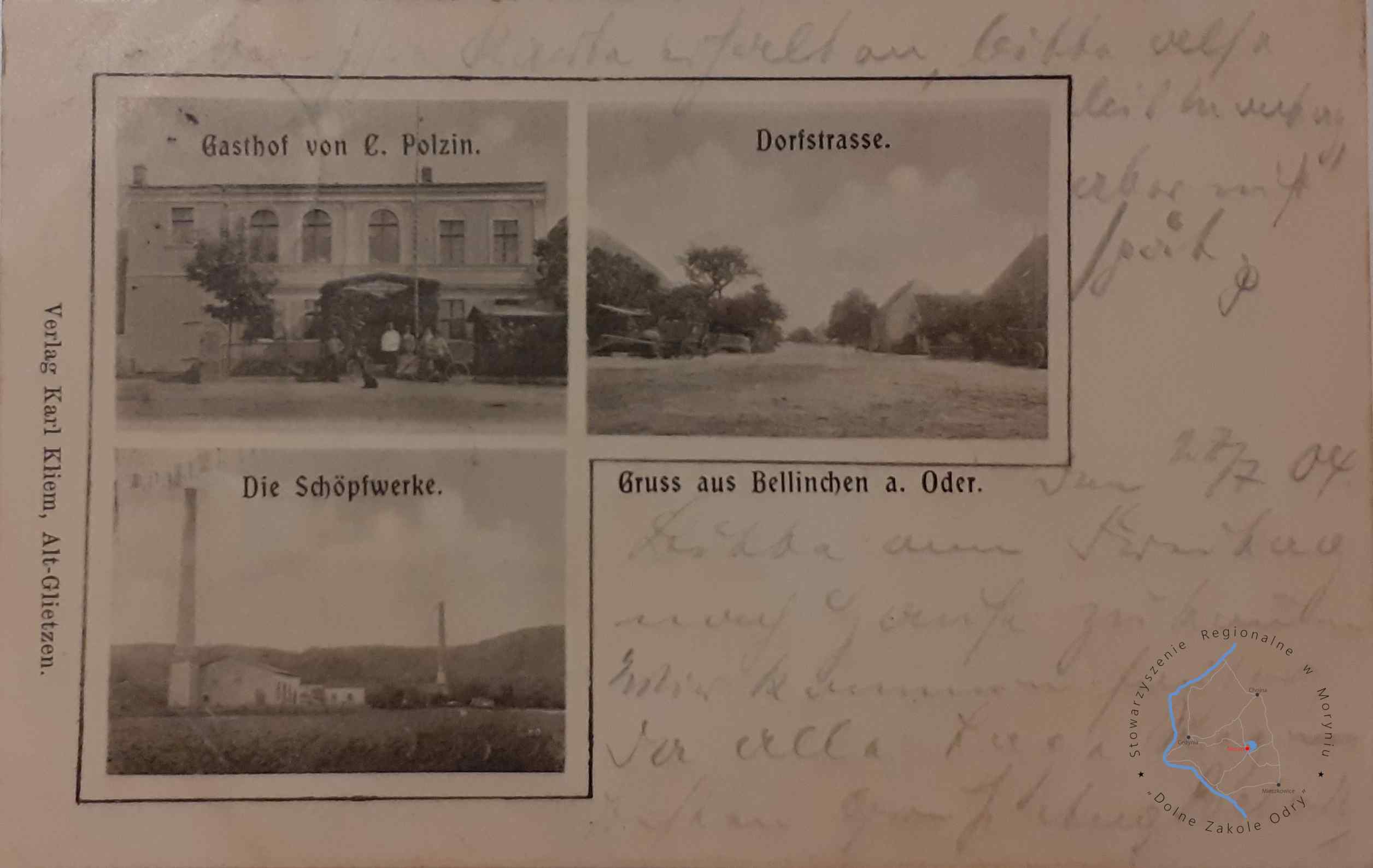 Pocztówka z obiegu, poczta Bielinek 9. 4. 1927Wydawca: E. Remmin, Photogr. Zehden a. O. 1. 12. 24 ( Cedyni...