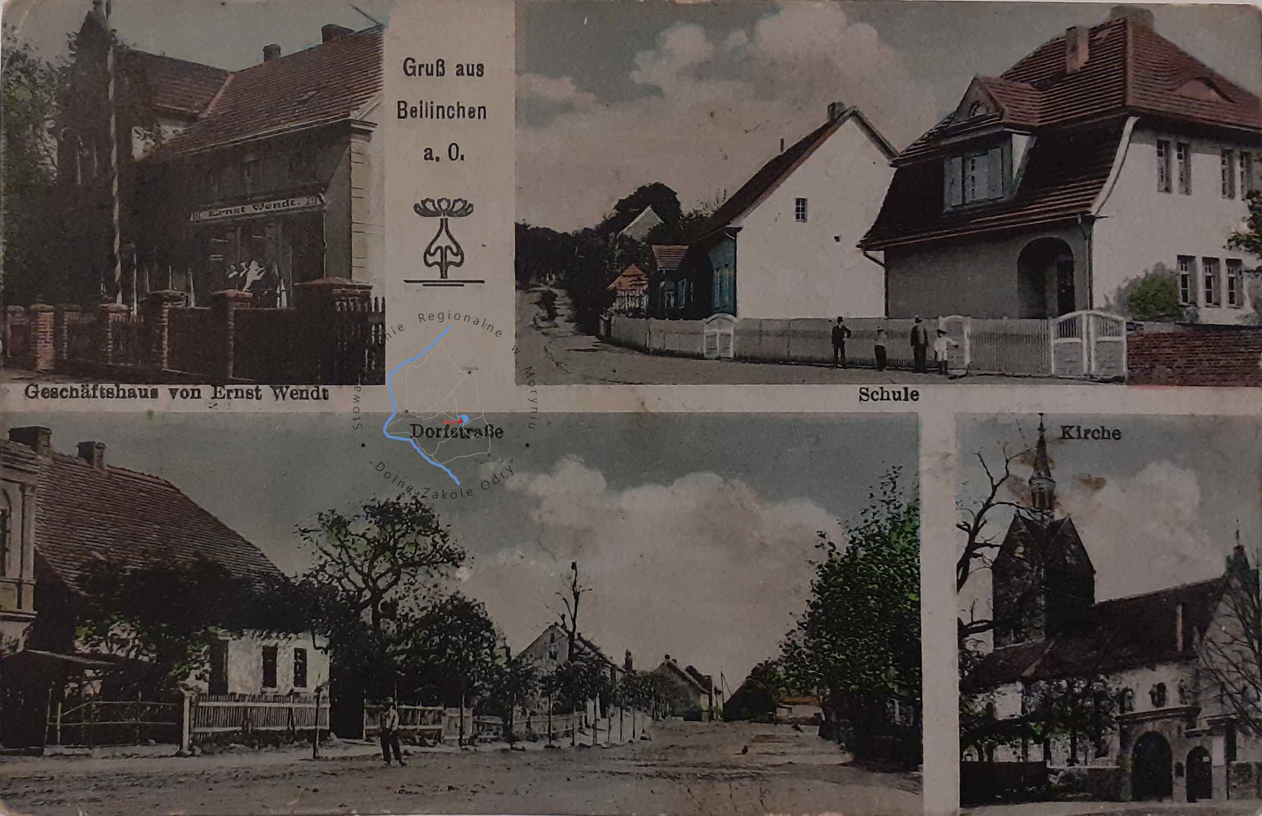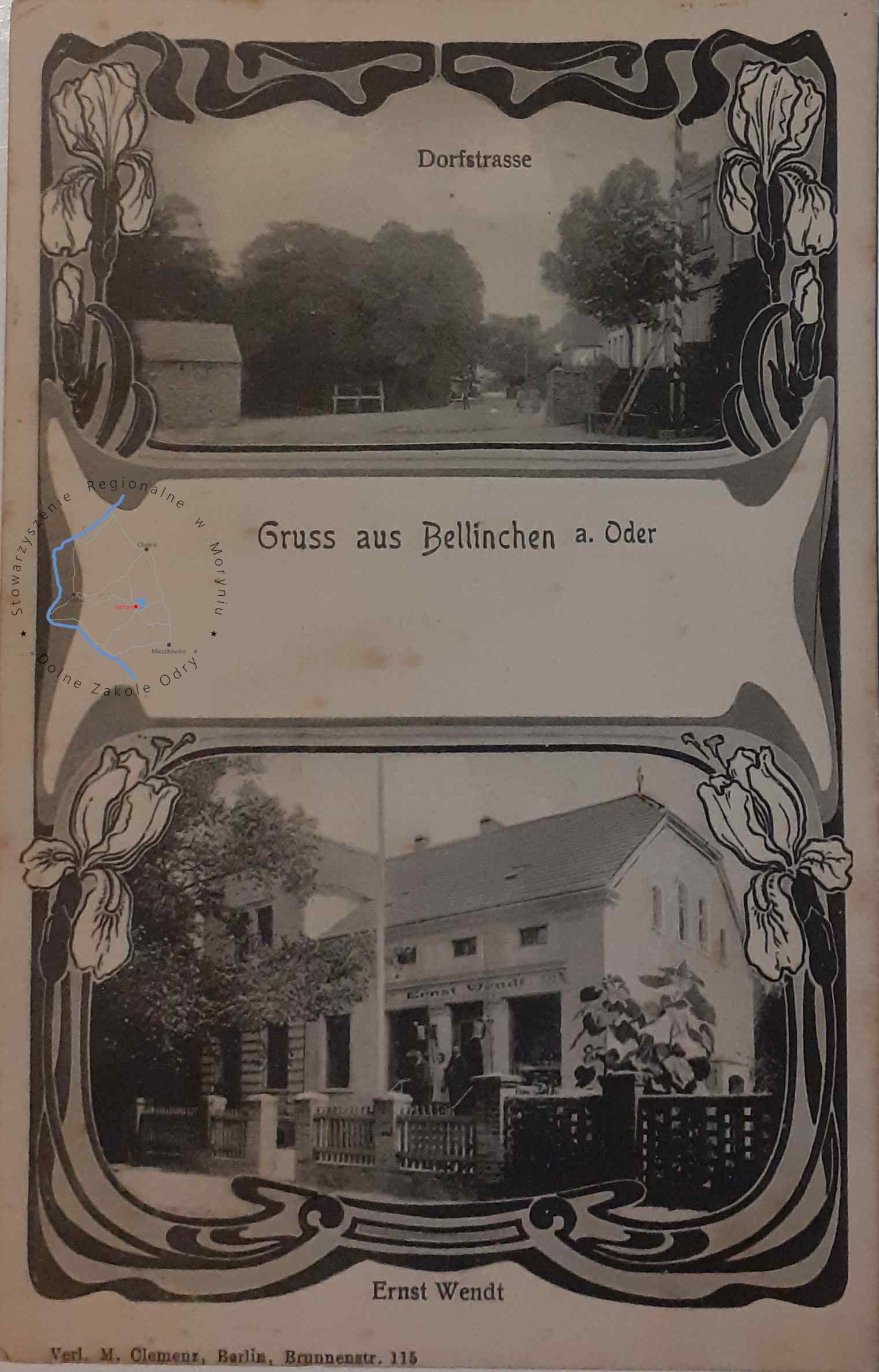 Pocztówka bez obieguWydawca: M. Clemenz, Berlin, Brunnenstr. 115BIELINEK Dawna ulica Wiejska i budynek Ernst Wendt