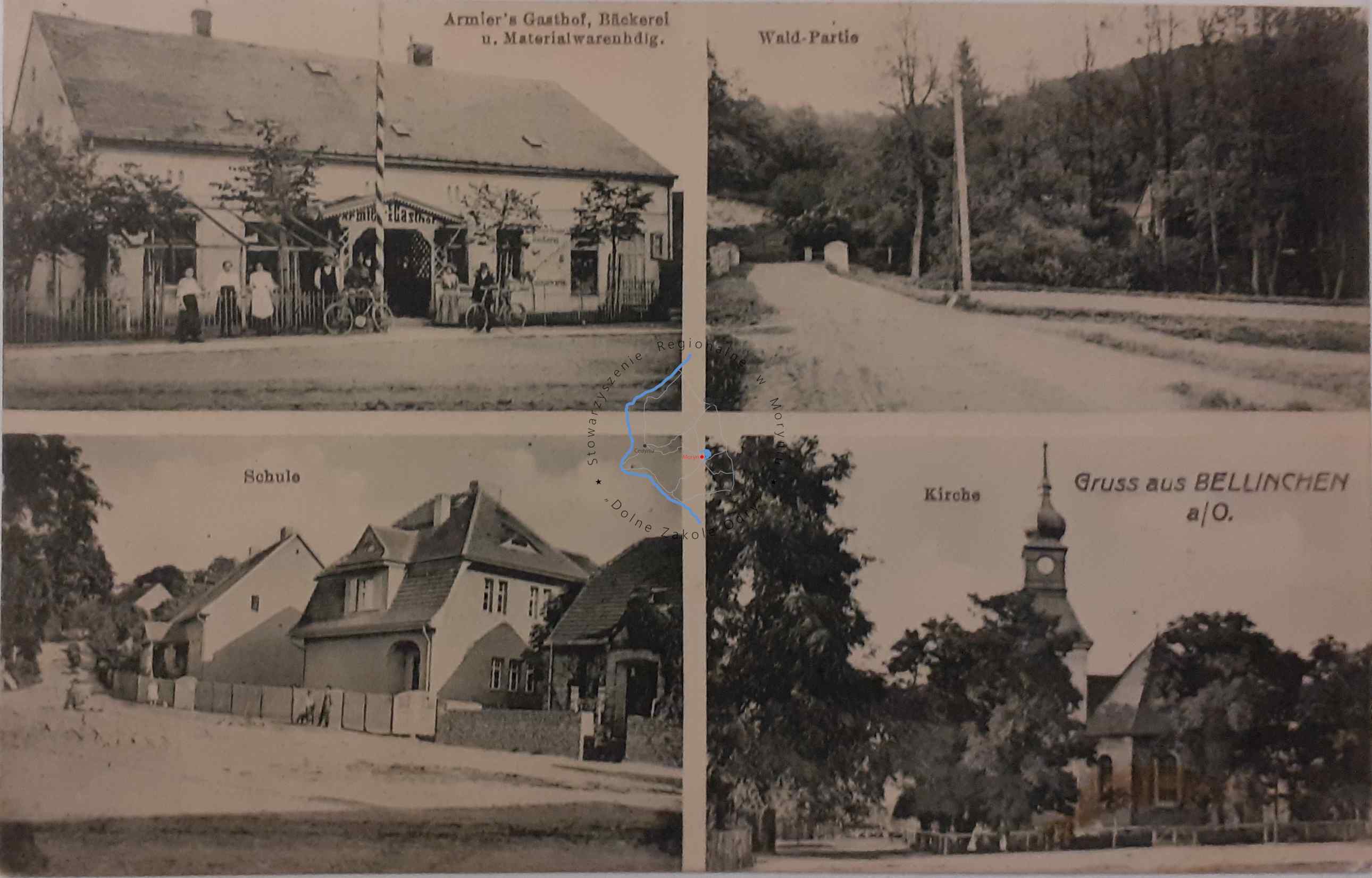 Pocztówka zapiosana bez obieguWydawca: M. Koock, Fotograf, Mohrin, N. -M. ( Moryń )BIELINEK Pocztówka wielowidokowa,...