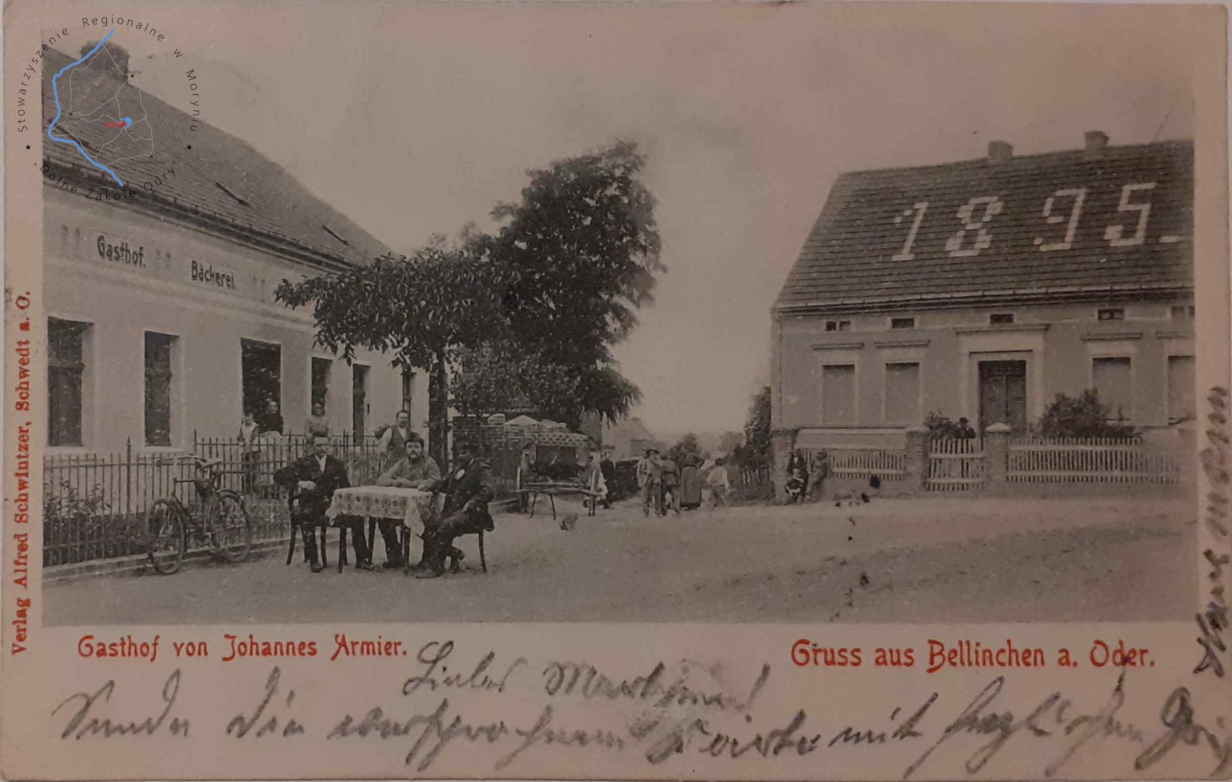 Pocztówka z obiegu, poczta Bielinek 23. 5. 1904Wydawca: Alfred Schwintzer, Schwedt a. O. BIELINEK Dom goś...