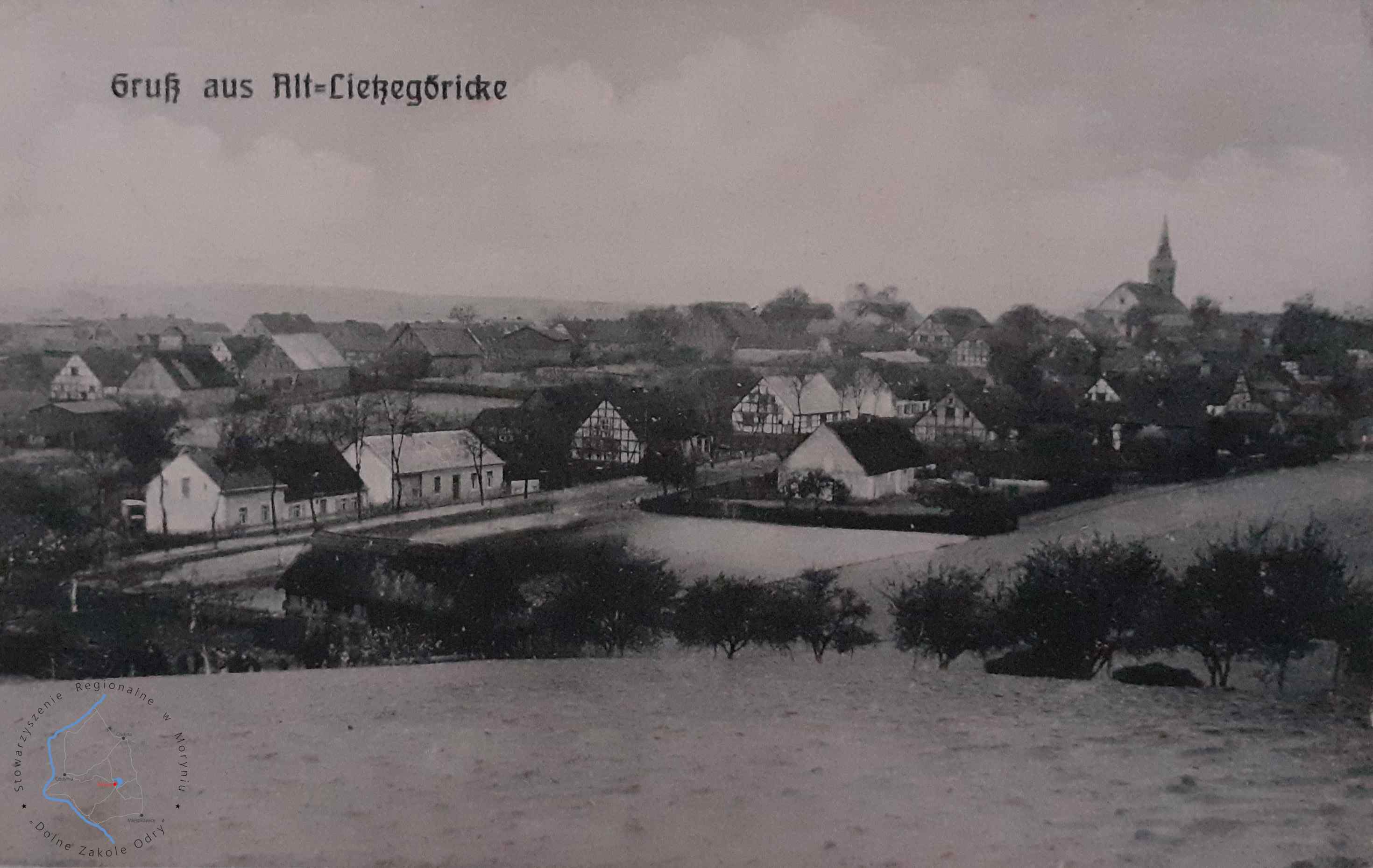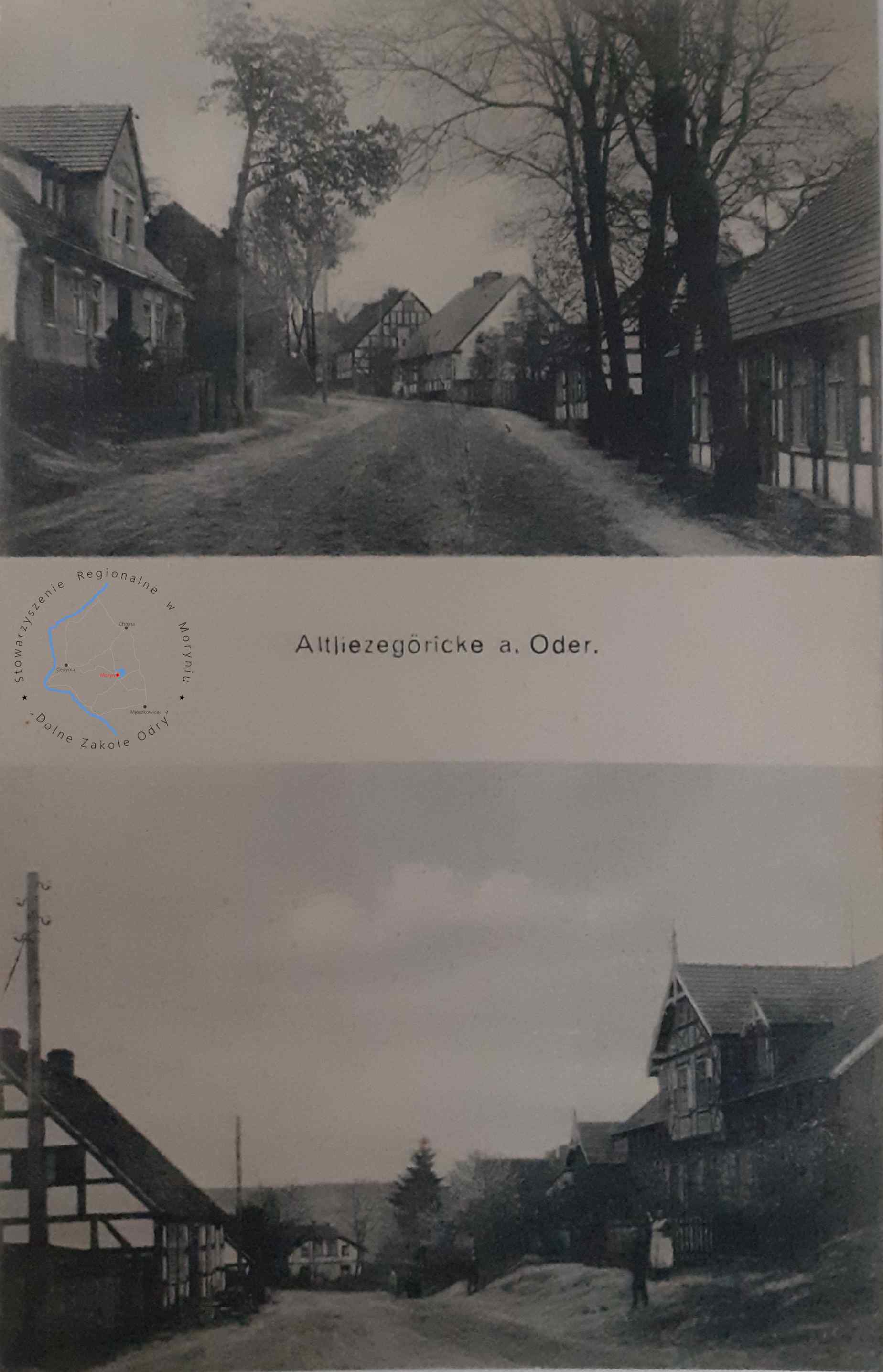 Pocztówka zapisana 21. 6. 1937 bez obieguWydawca: Kaufhaus H. BergemannSTARE ŁYSOGÓRKI Dawna ulica Wiejska (Dorfstra...