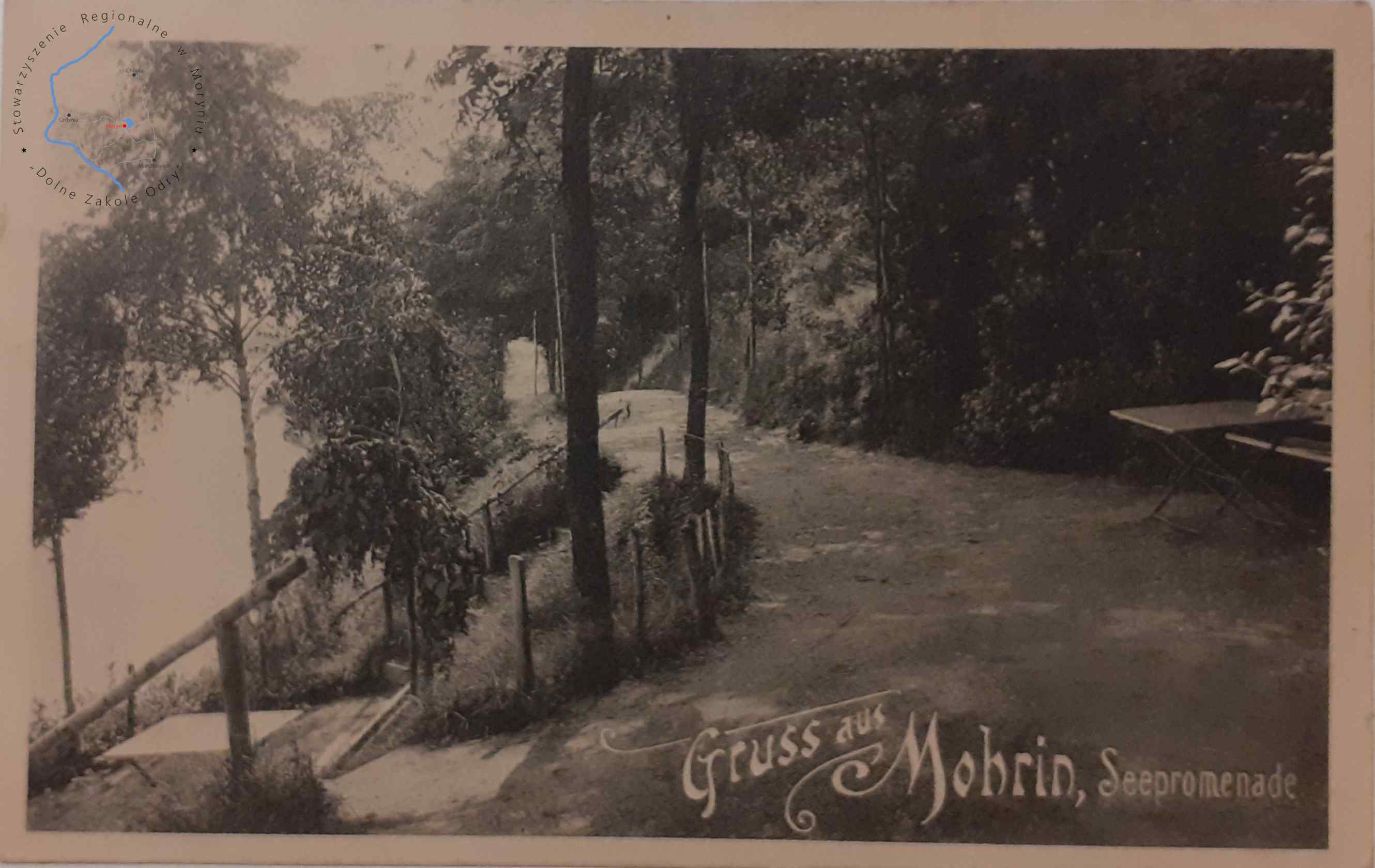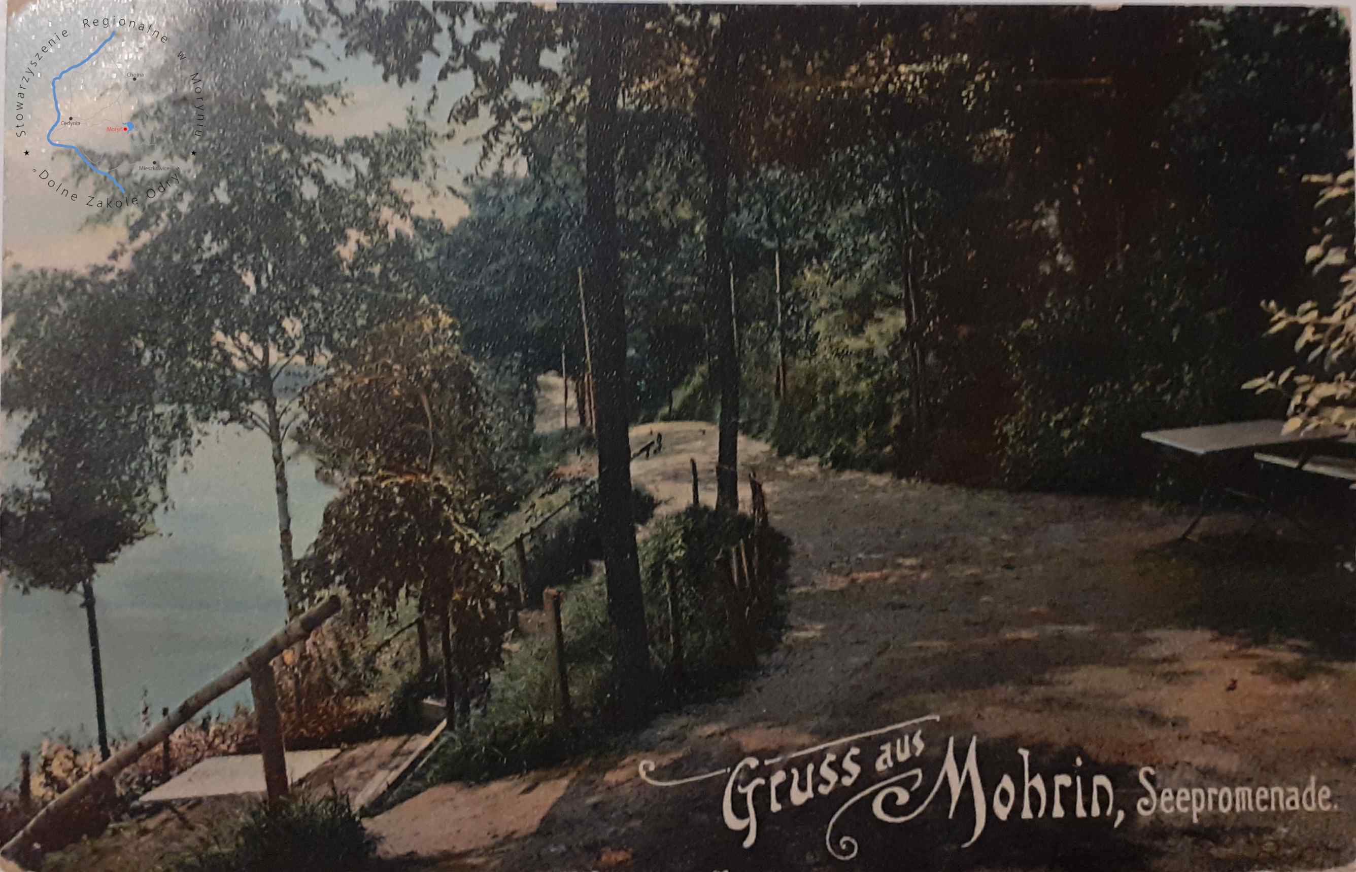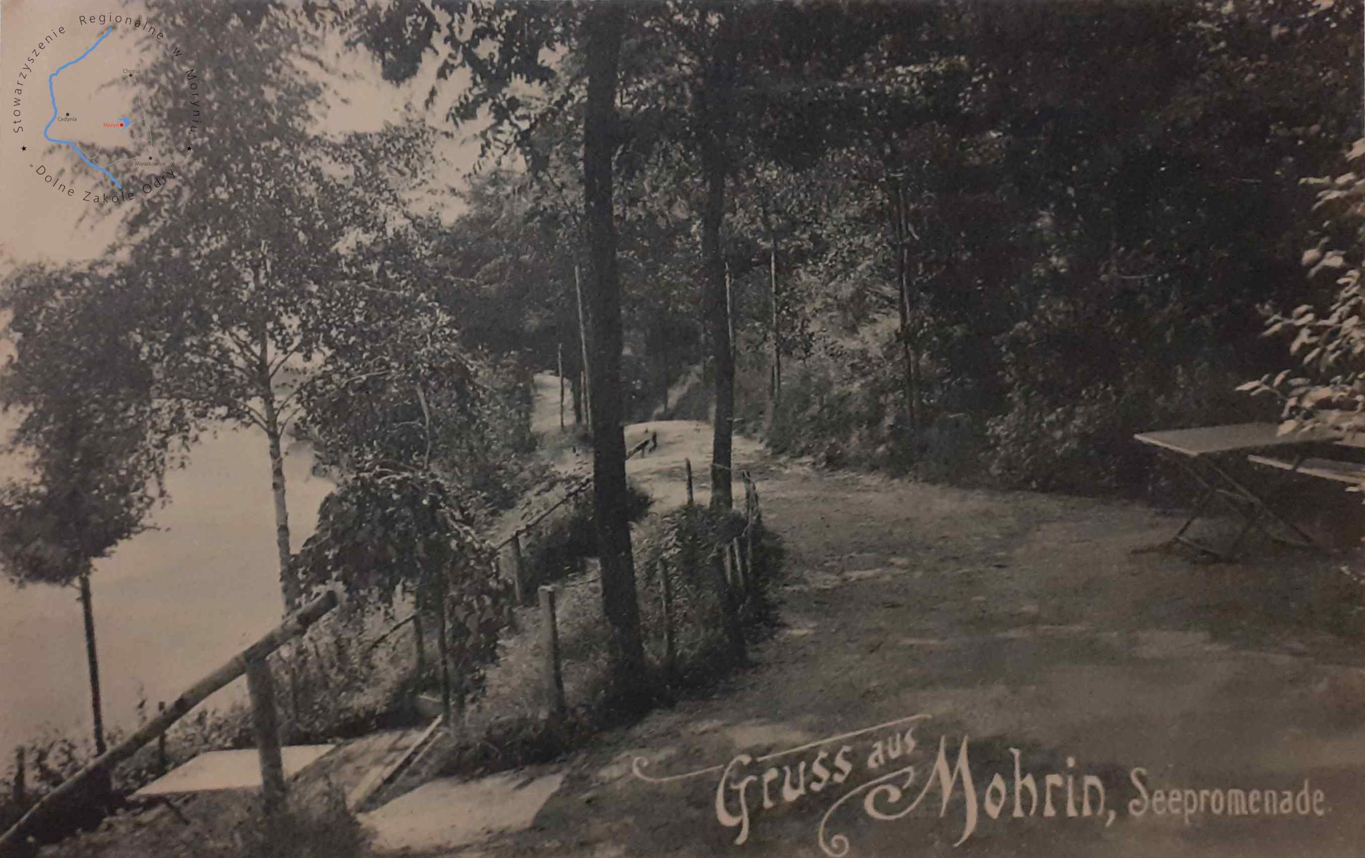Pocztówka bez obieguWydawca: Gust. Kruger Mohrin ( Moryń )MORYŃ Fragment promenady nad jeziorem Morzycko