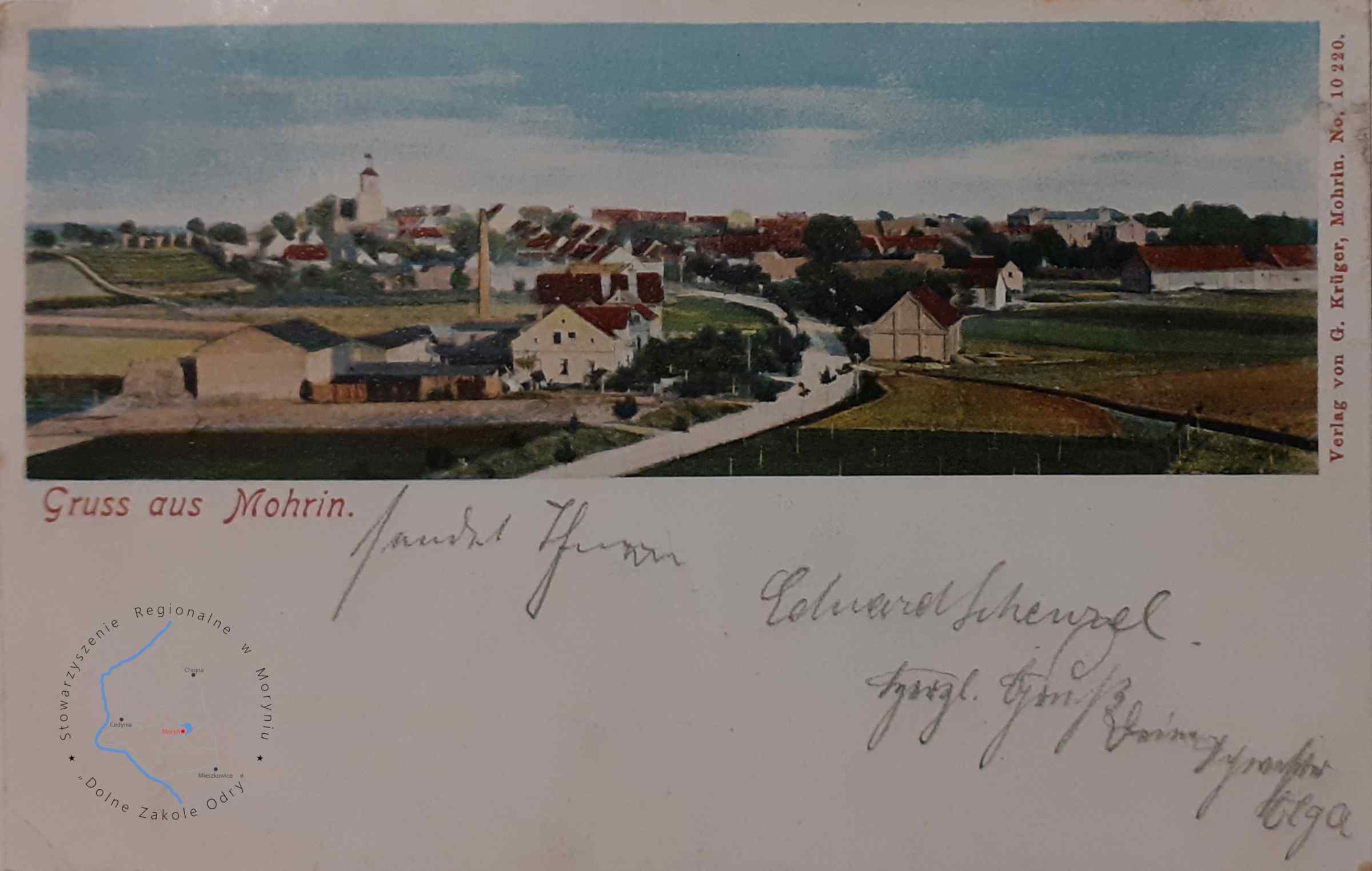 Pocztówka z obiegu, poczta polowa Moryń 20. 7. 1917 Wydawca: Gustav Kruger Mohrin ( Moryń )MORYŃ Fragment prom...
