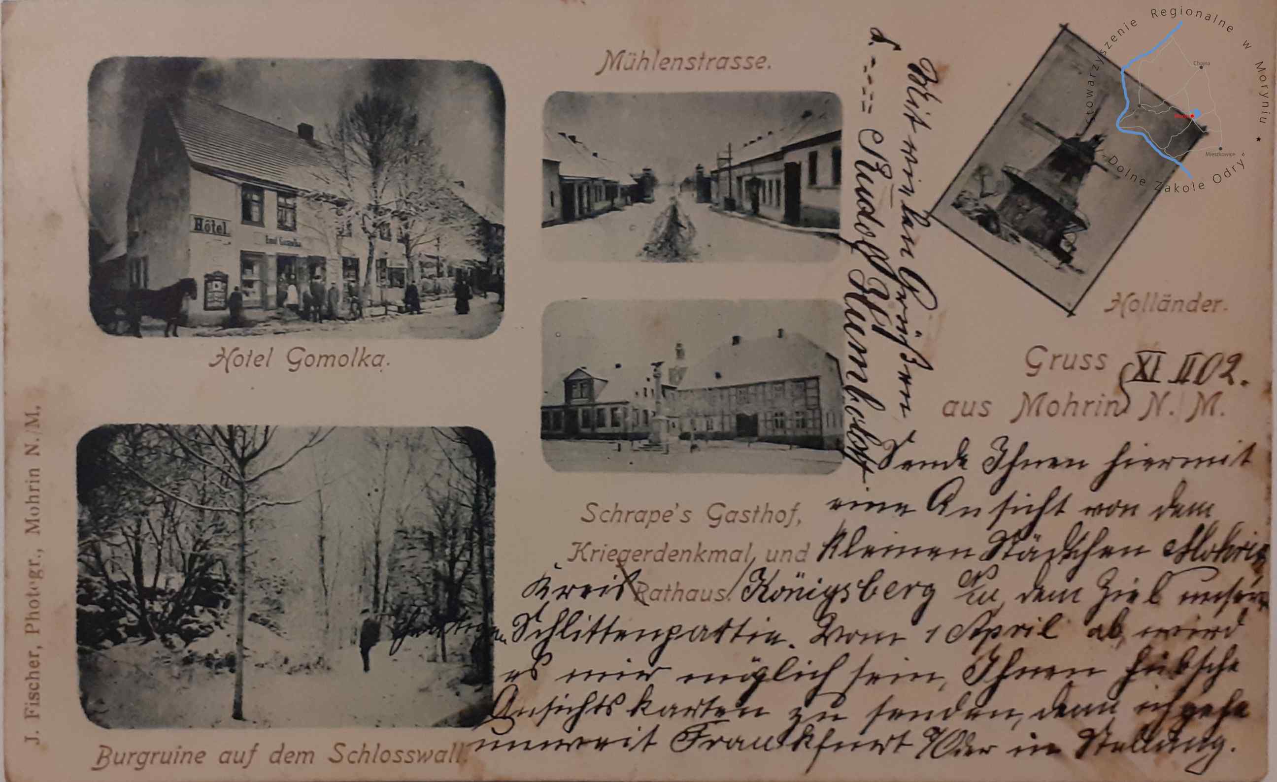 Pocztówka z obiegu, poczta Chojna 11. 2. 1902Wydawca: J. Fischer, Photogr. Mohrin N./M. ( Moryń )MORYŃ Pocztówka wi...