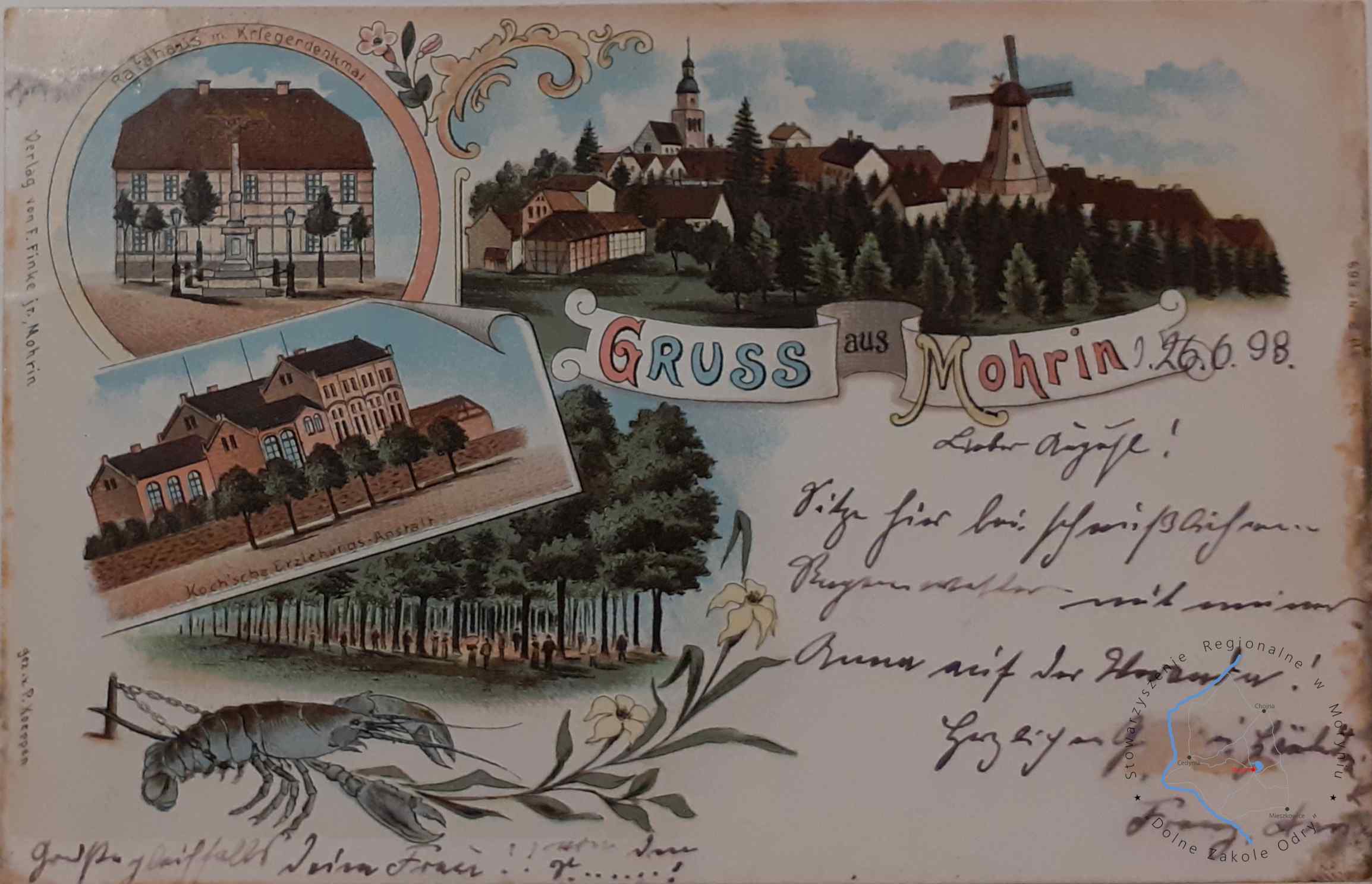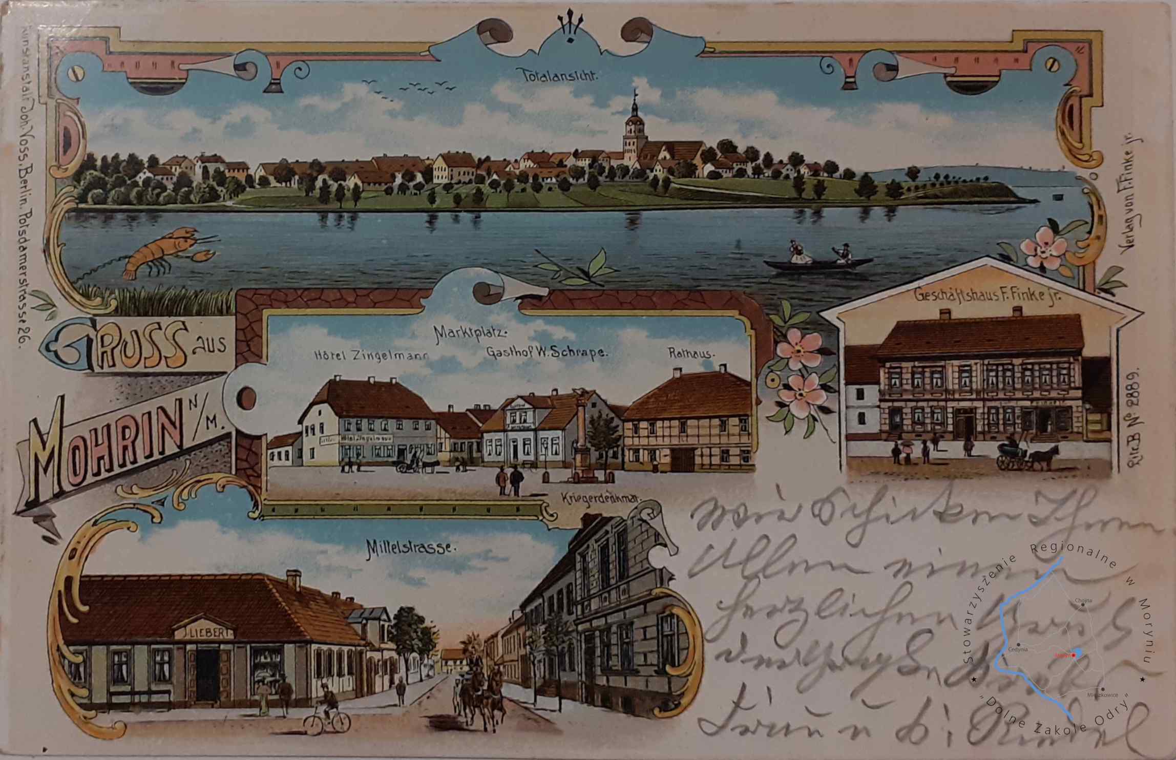 Pocztówka z obiegu, poczta Moryń 26. 6. 1898Wydawca: F. Finker jr., Mohrin ( Moryń )Rysunek: P. KoeppenM...