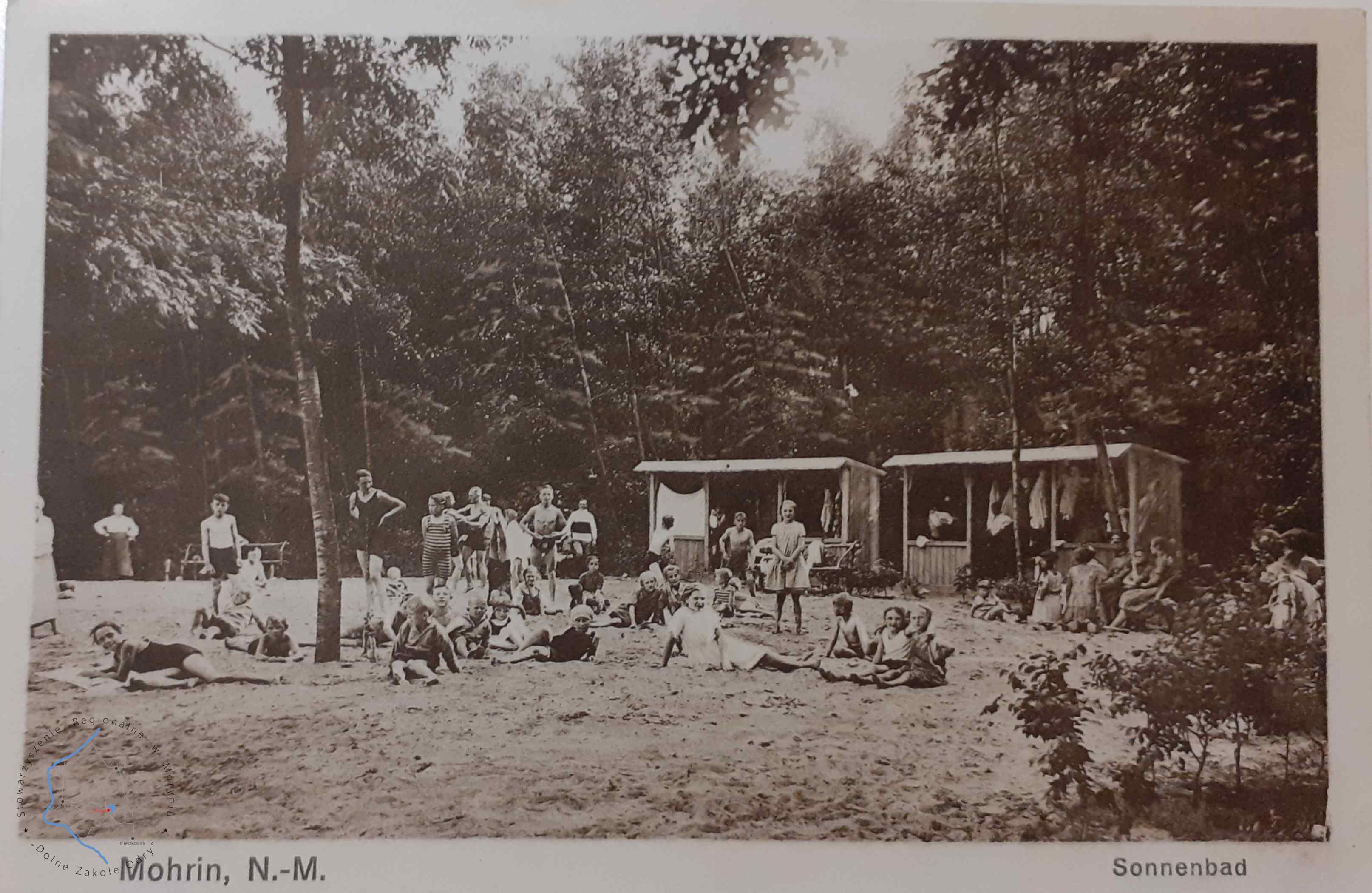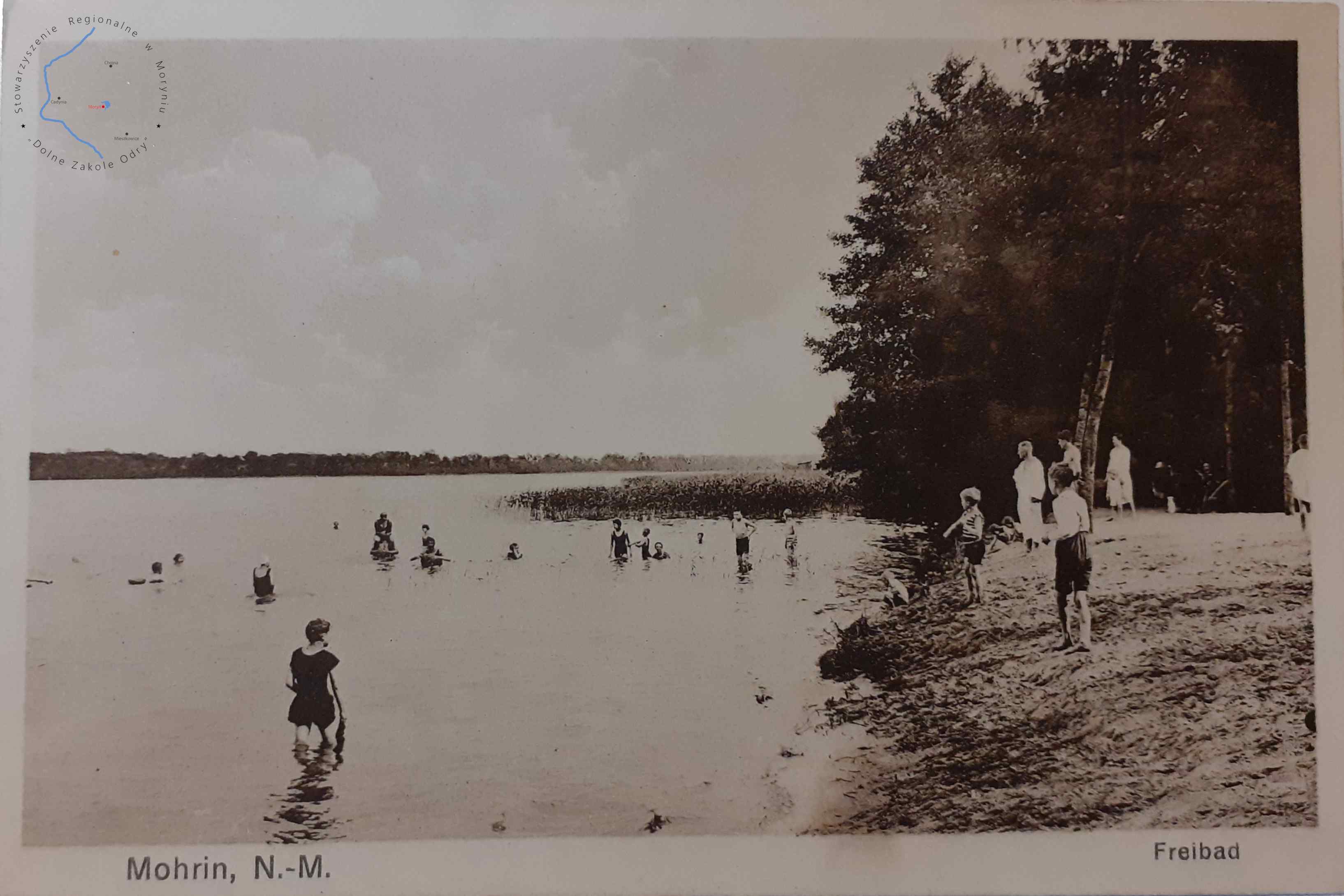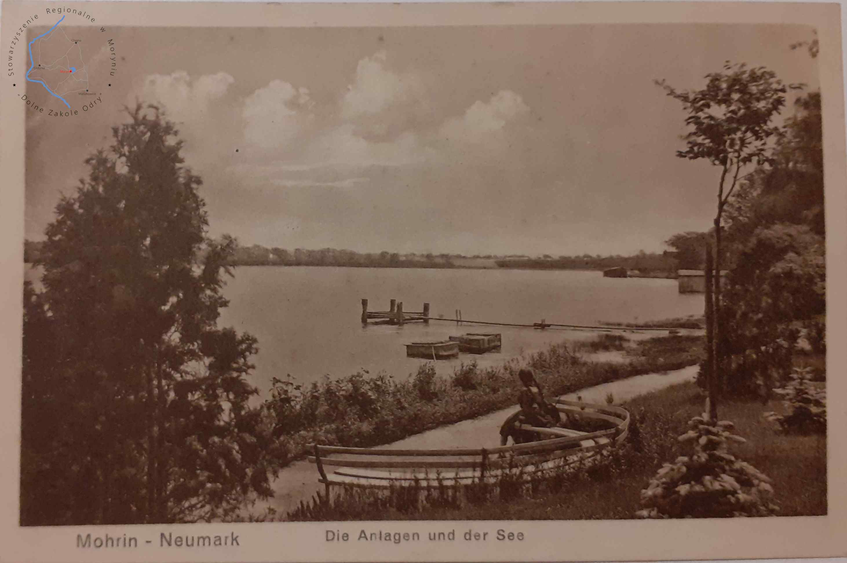 Pocztówka z obiegu, poczta Moryń 4. 8. 1930Wydawca: J. L. R.MORYŃ Fragment promenady nad jeziorem Morzycko