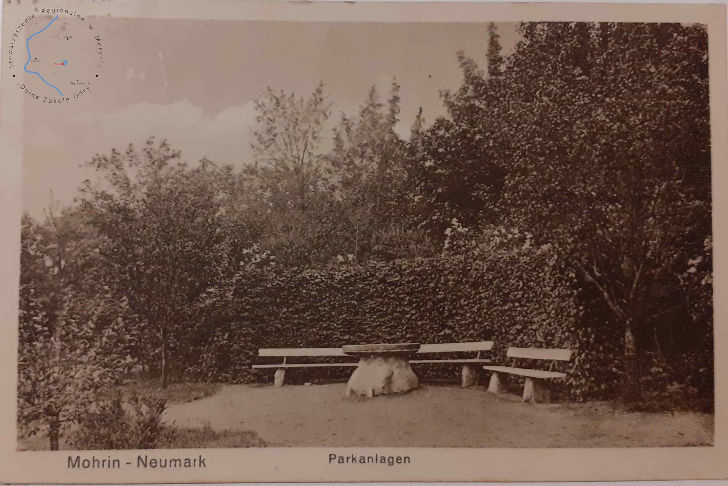 Pocztówka z obiegu, poczta Moryń 23. 8. 1935Wydawca: J. L. R. Fragment parku w Moryniu