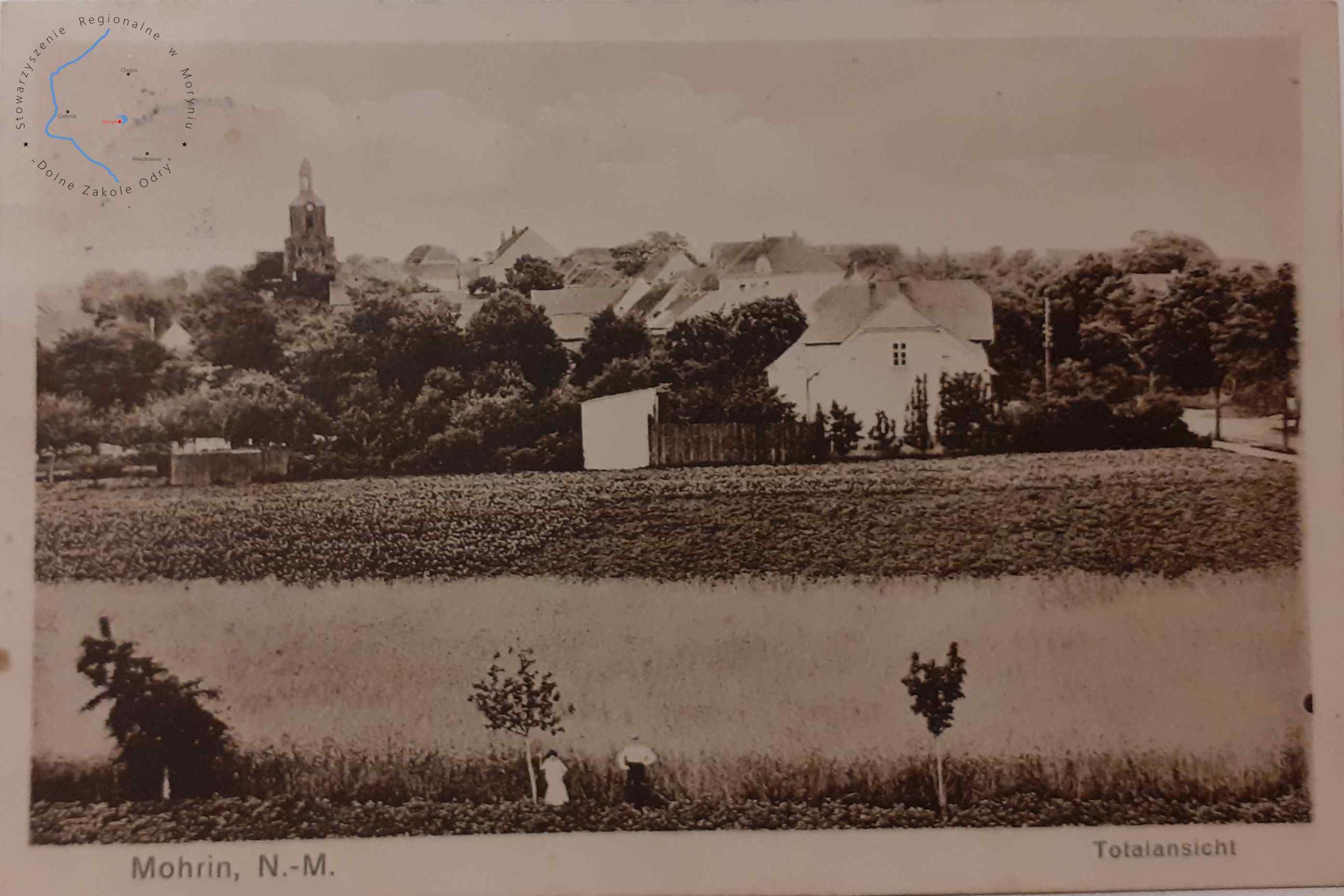 Pocztówka z obiegu, poczta Moryń 10. 6. 1929Wydawca: J. L. R.MORYŃ Widok panoramiczny