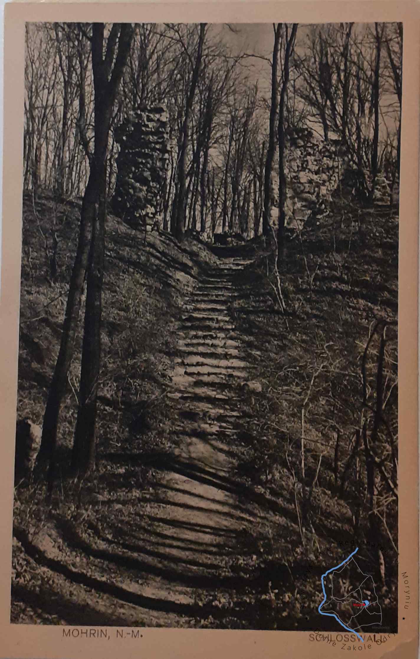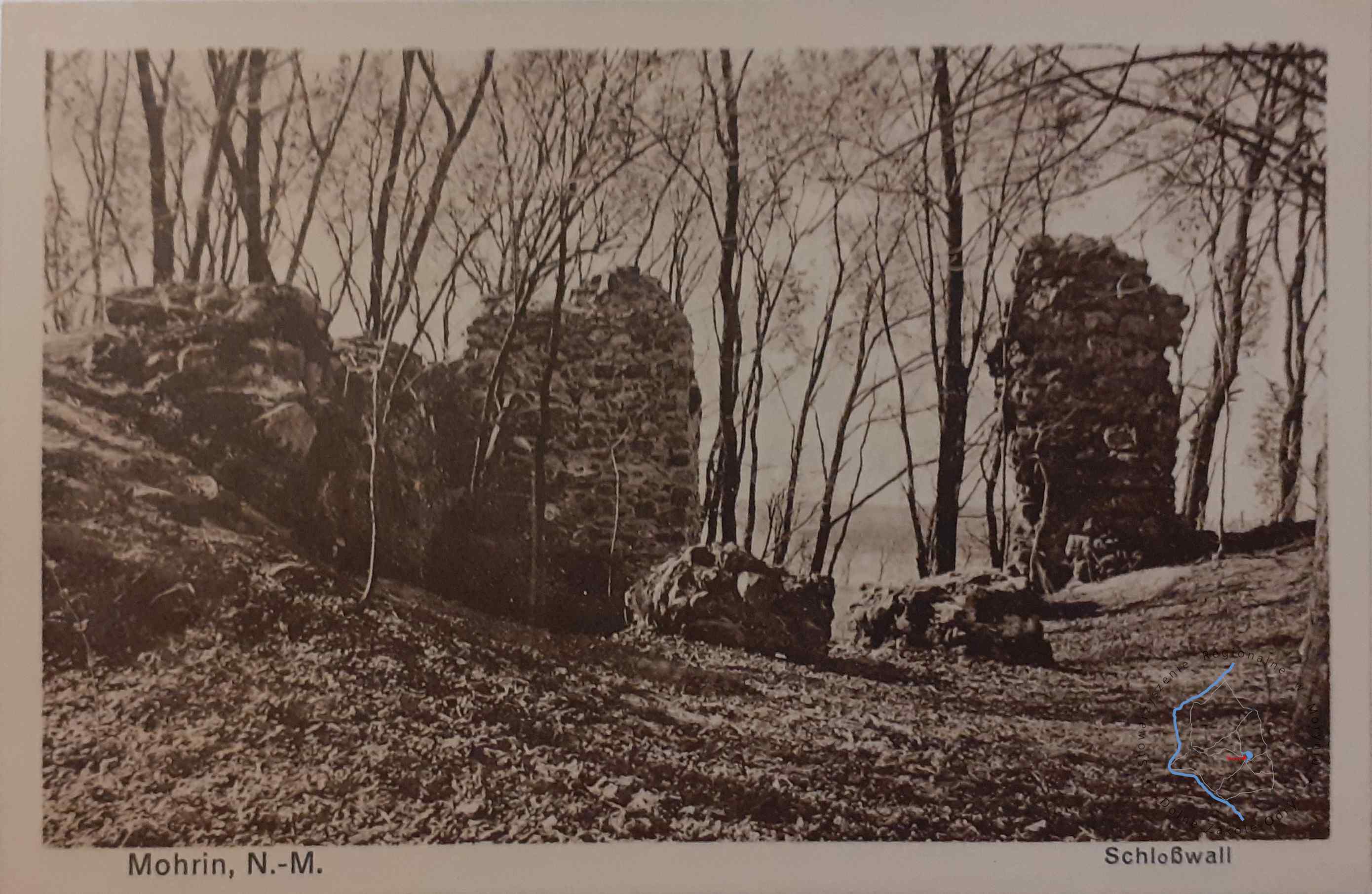 Pocztówka bez obieguWydawca: J. L. R.MORYŃ Ruiny zamku nad jeziorem Morzycko, zamek zbudowany w pierwszej połowie XIV w. w...