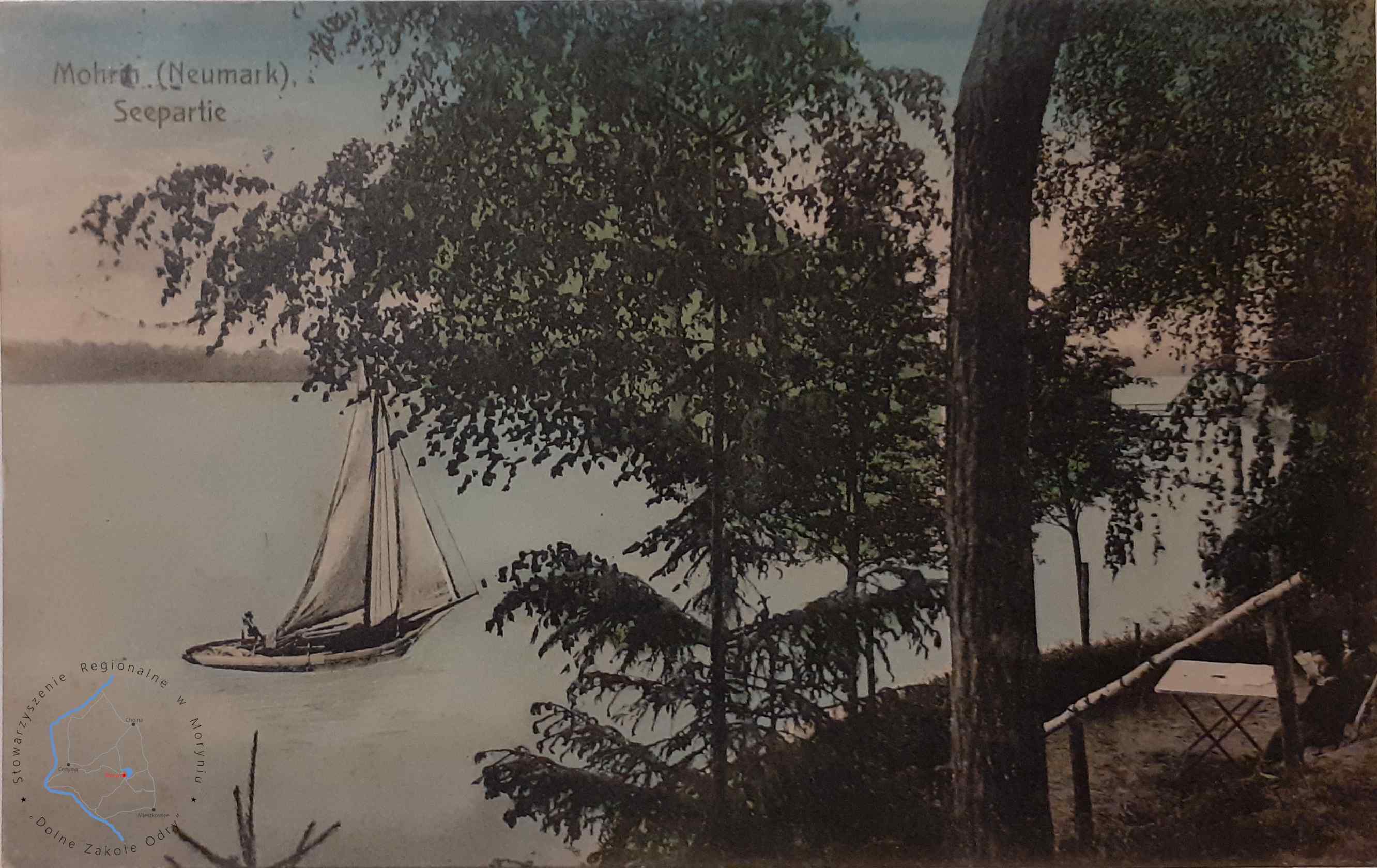 Pocztówka z obiegu, poczta Moryń 20. 7. 1913Wydawca: Johann Lindenberg, RathenowMORYŃ Fragment Jeziora Morzycko ...