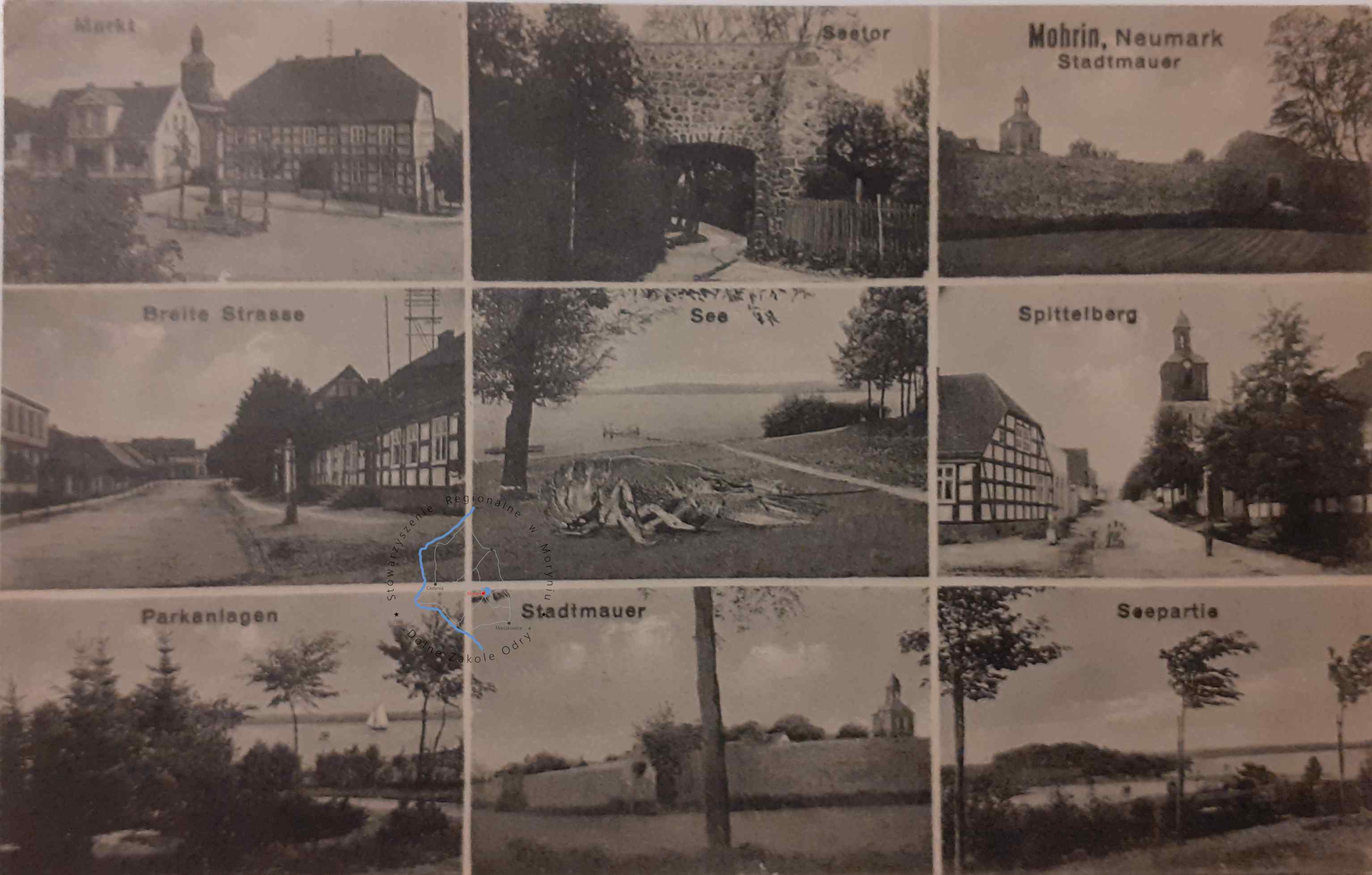 Pocztówka z obiegu, poczta Moryń 16. 8. 1926Wydawca: J. L. R.MORYŃ Pocztówka wielowidokowa