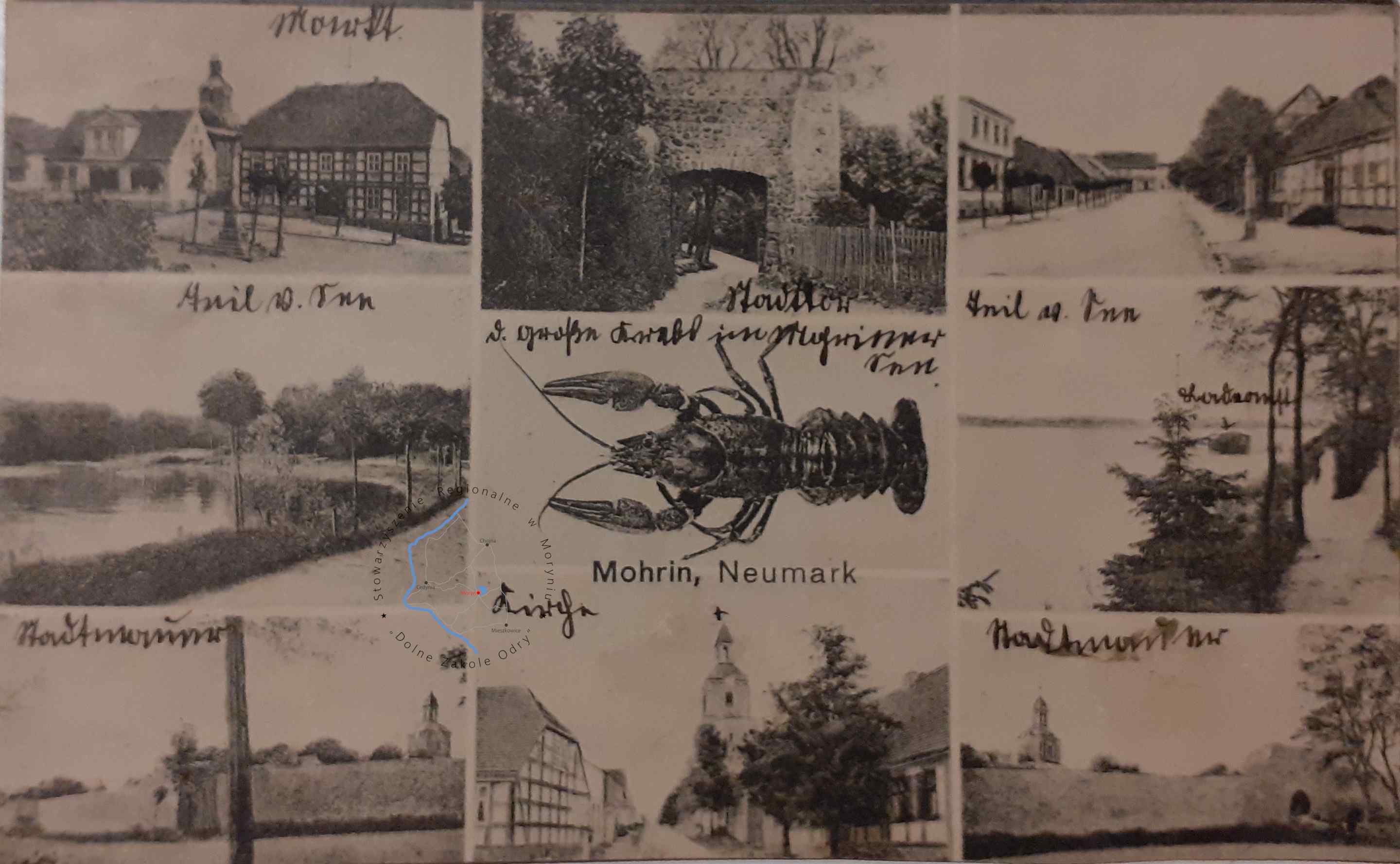 Pocztówka z obiegu, poczta Moryń 6. 10. 1916 Wydawca: J. L. R.MORYŃ Pocztówka wielowidokowa