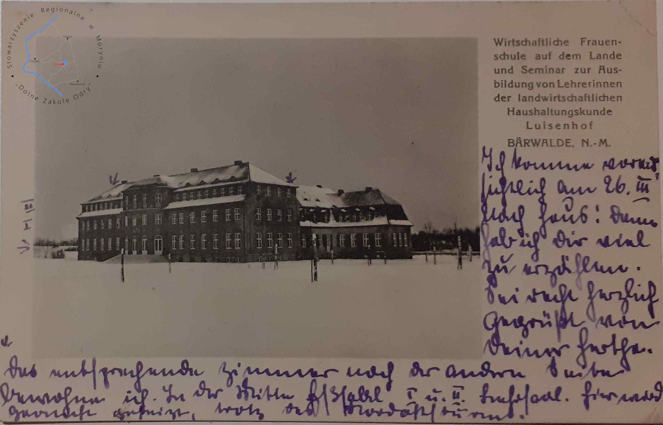 Pocztówka z obiegu, poczta Mieszkowice 8. 3. 1917MIESZKOWICE “ Luisenhof ” dzisiejszy Zespół Szkół Centrum Ksz...