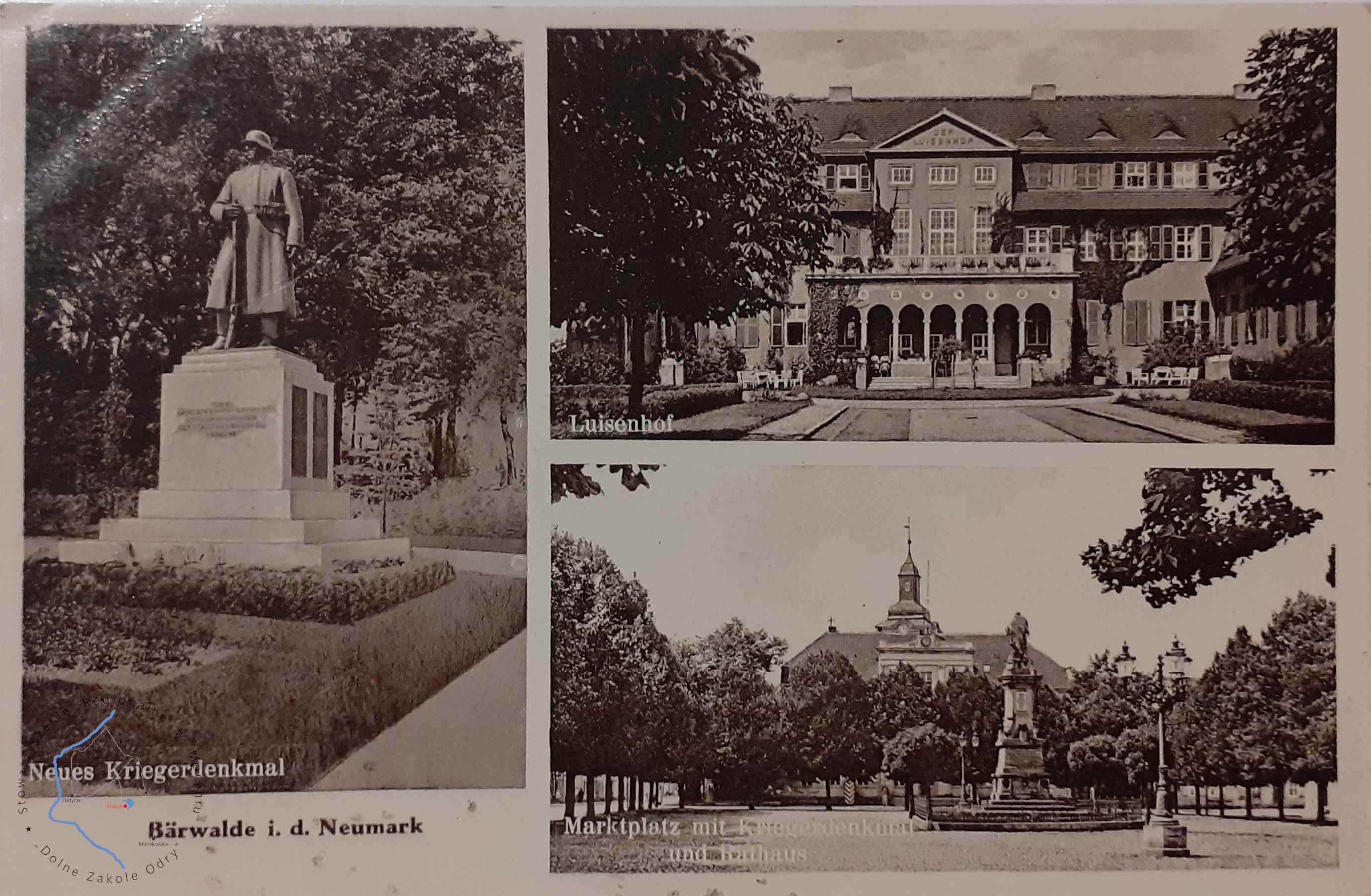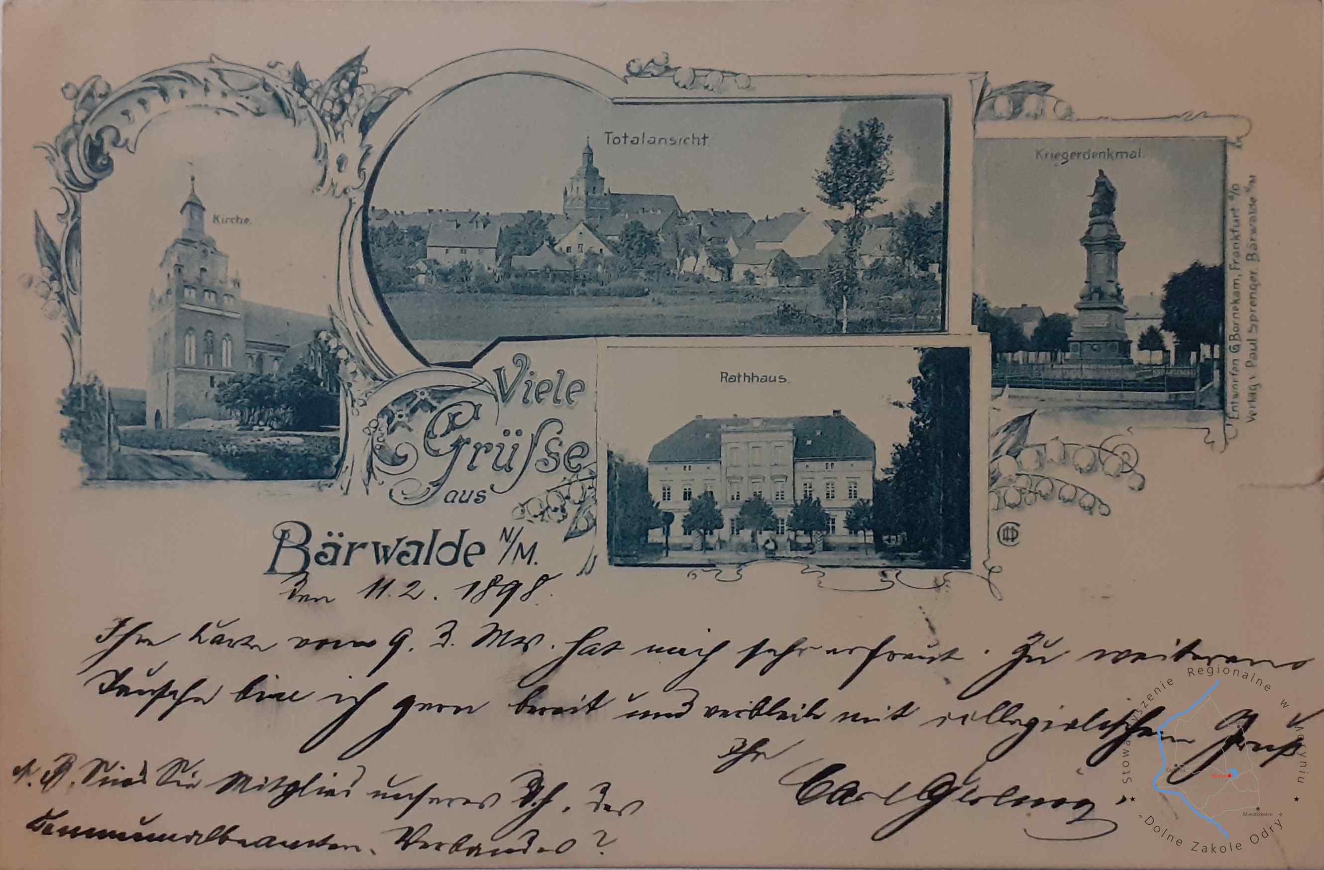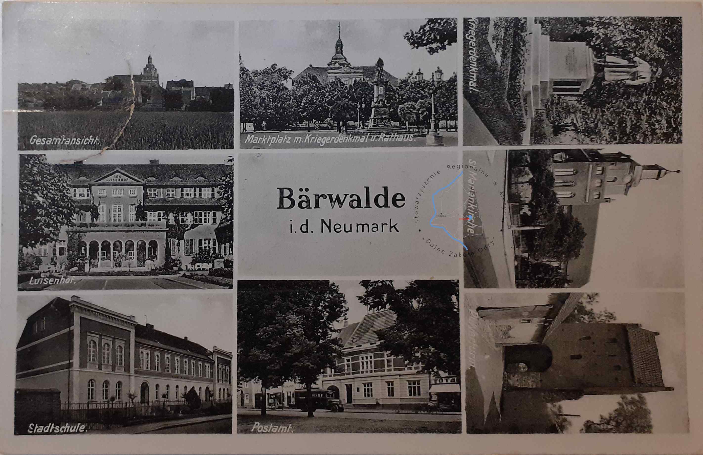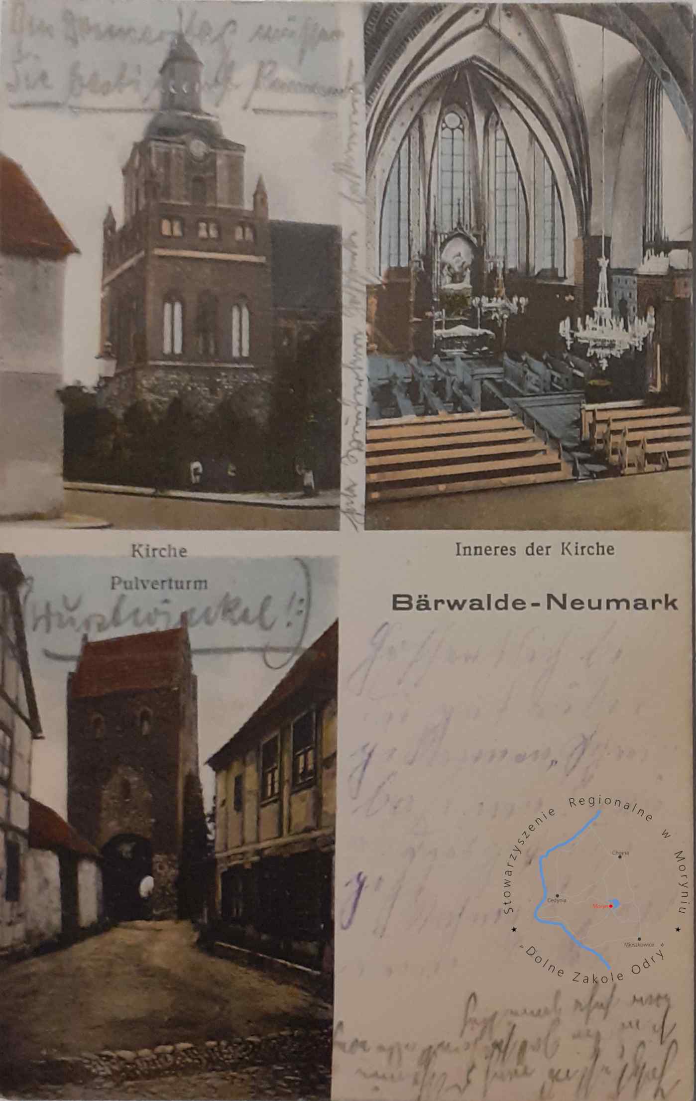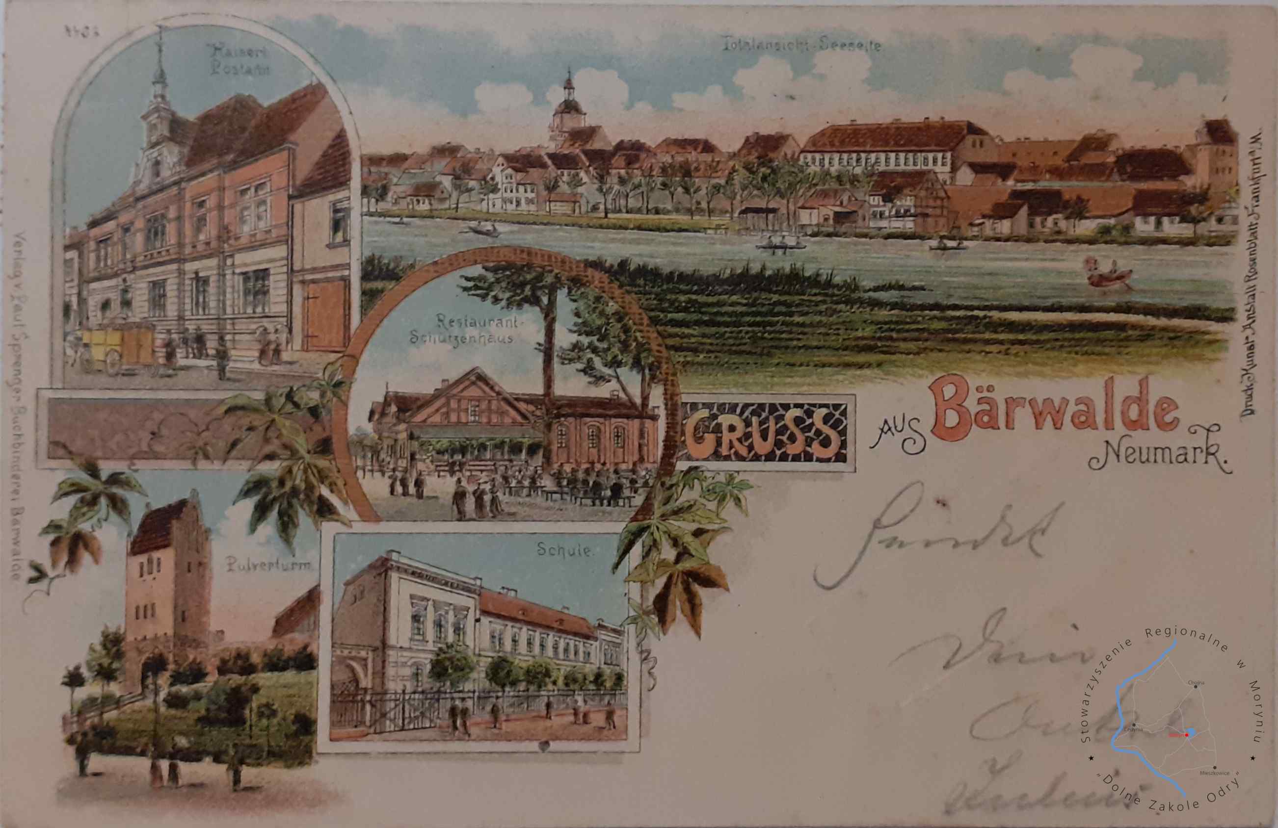 Pocztówka bez obieguWydawca: Paul Sprenger, Buchhandlung, Barwalde N.-M. ( Mieszkowice )MIESZKOWICE Pocztówka wielowidokowa...
